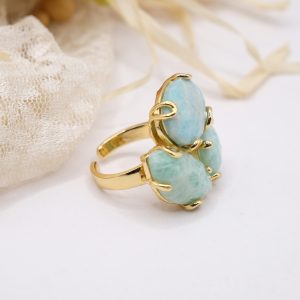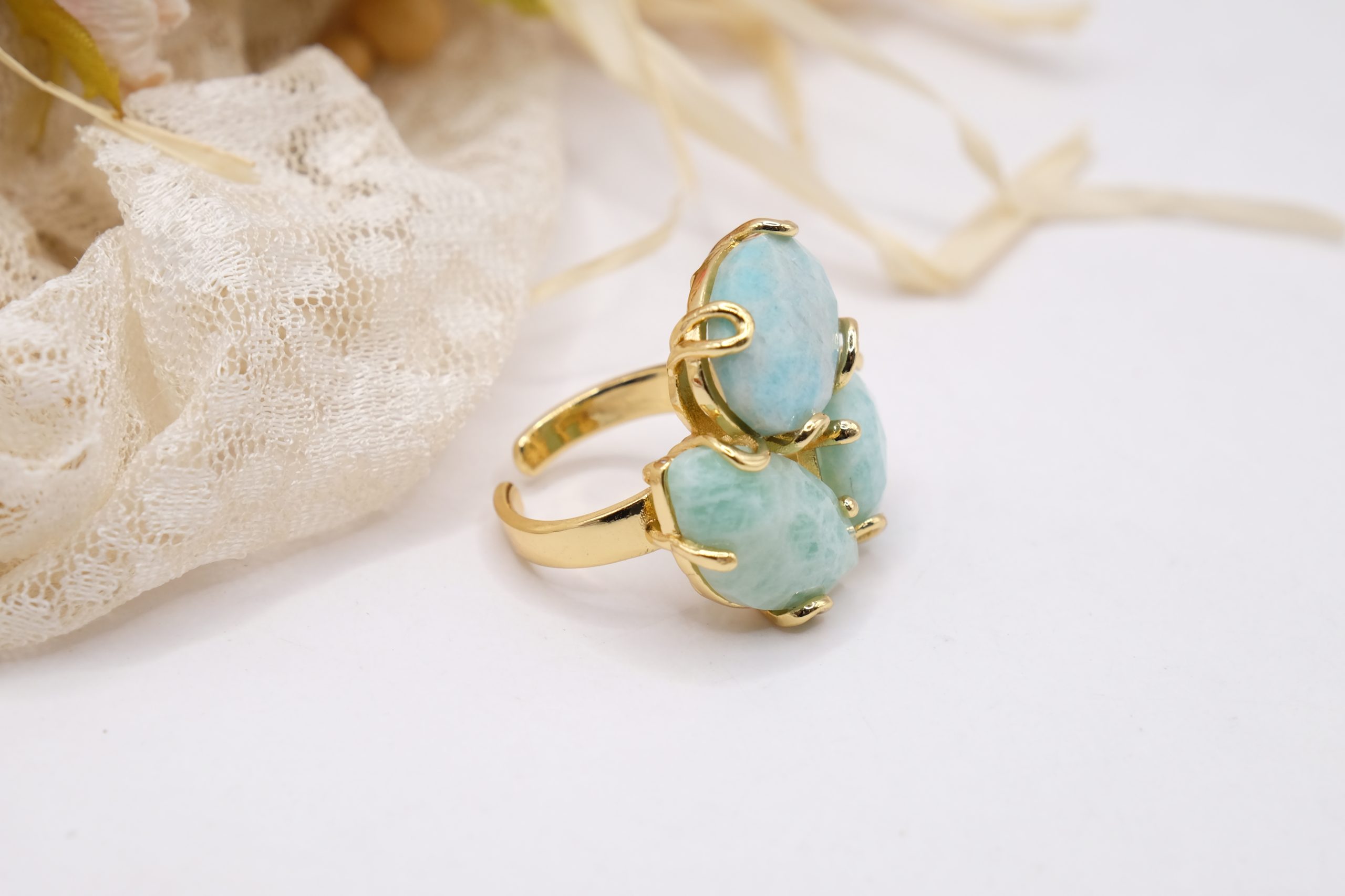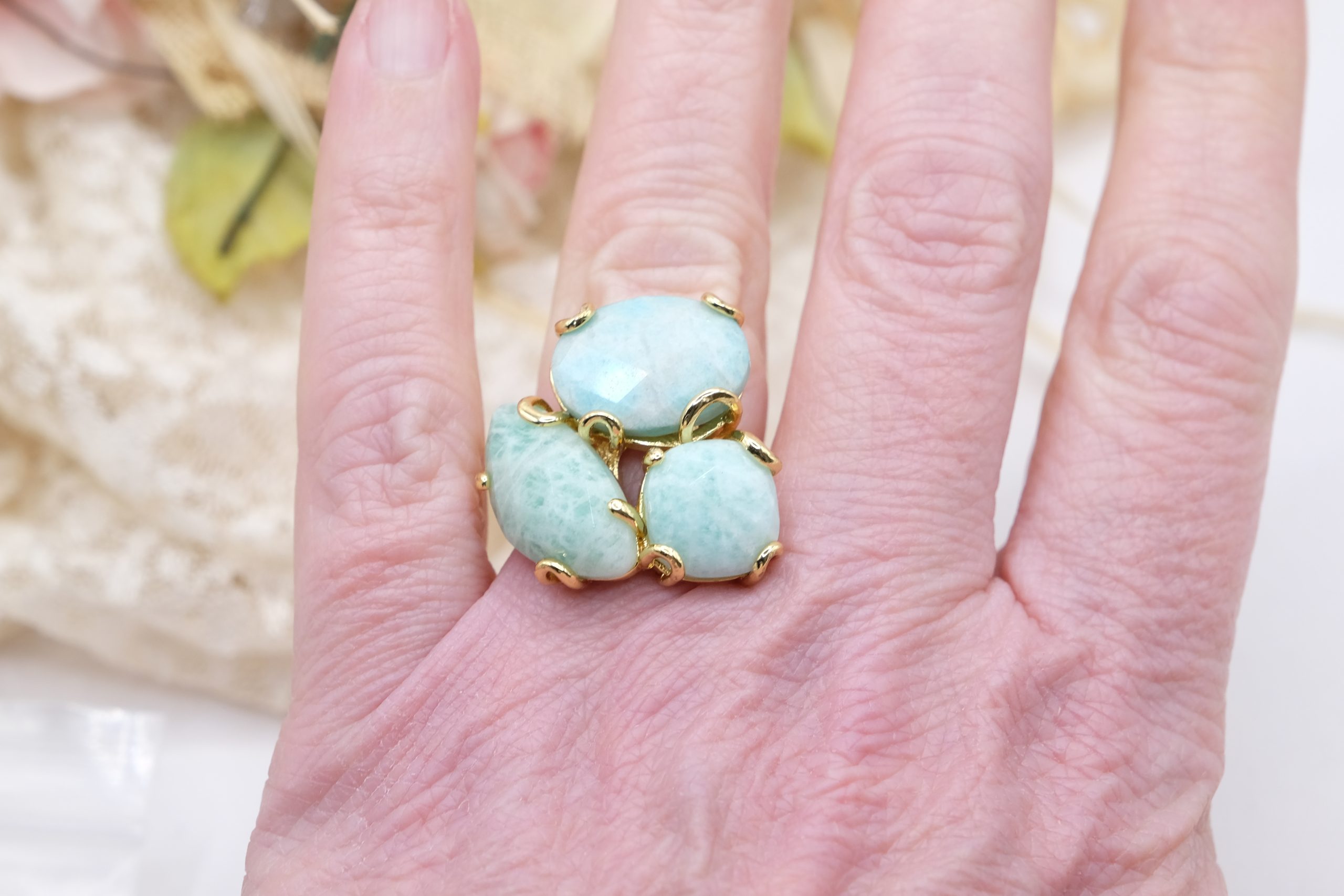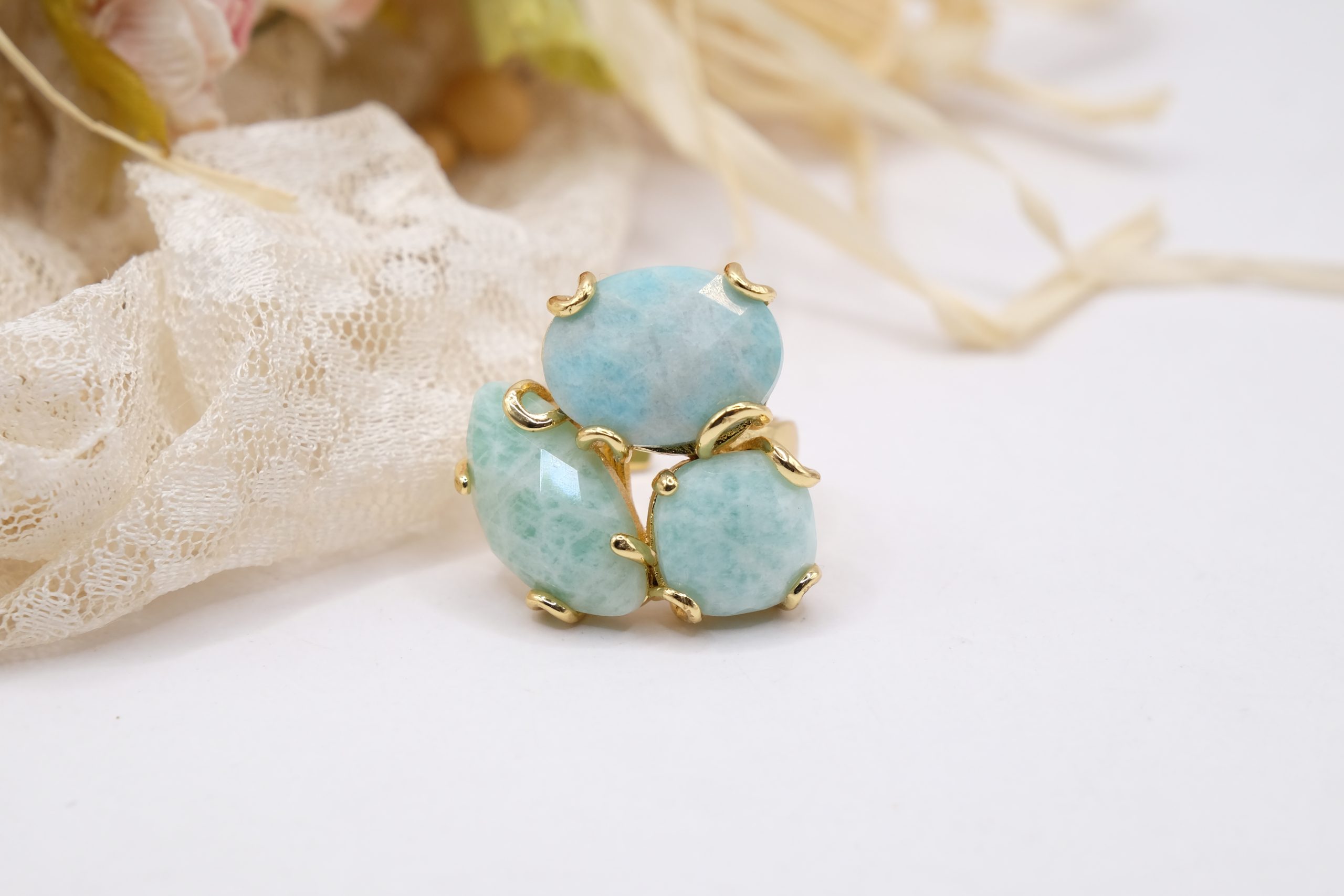 Elegant ring with 3 faceted amazonite stones on a brass setting