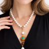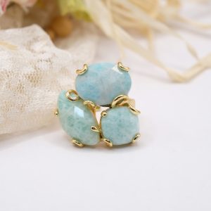 Handcrafted in brass, it is embellished with three faceted amazonite stones, with an enchanting color 💚