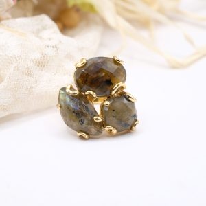 Adjustable Brass 3 Stone LABRADORITE Ring