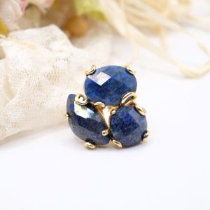 Handcrafted in brass, it is embellished with three faceted lapis lazuli stones, with a deep color and full of iridescence💚