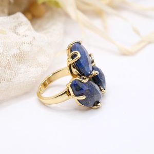 Adjustable Brass 3 Stone Lapis Lazuli Ring
