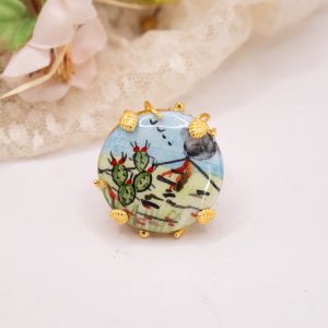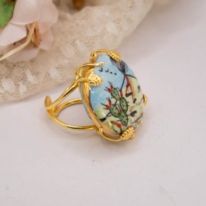 Handmade ring with Caltagirone Etna and Fico ceramic tile