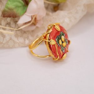 Handmade ring with Caltagirone red lemon ceramic tile