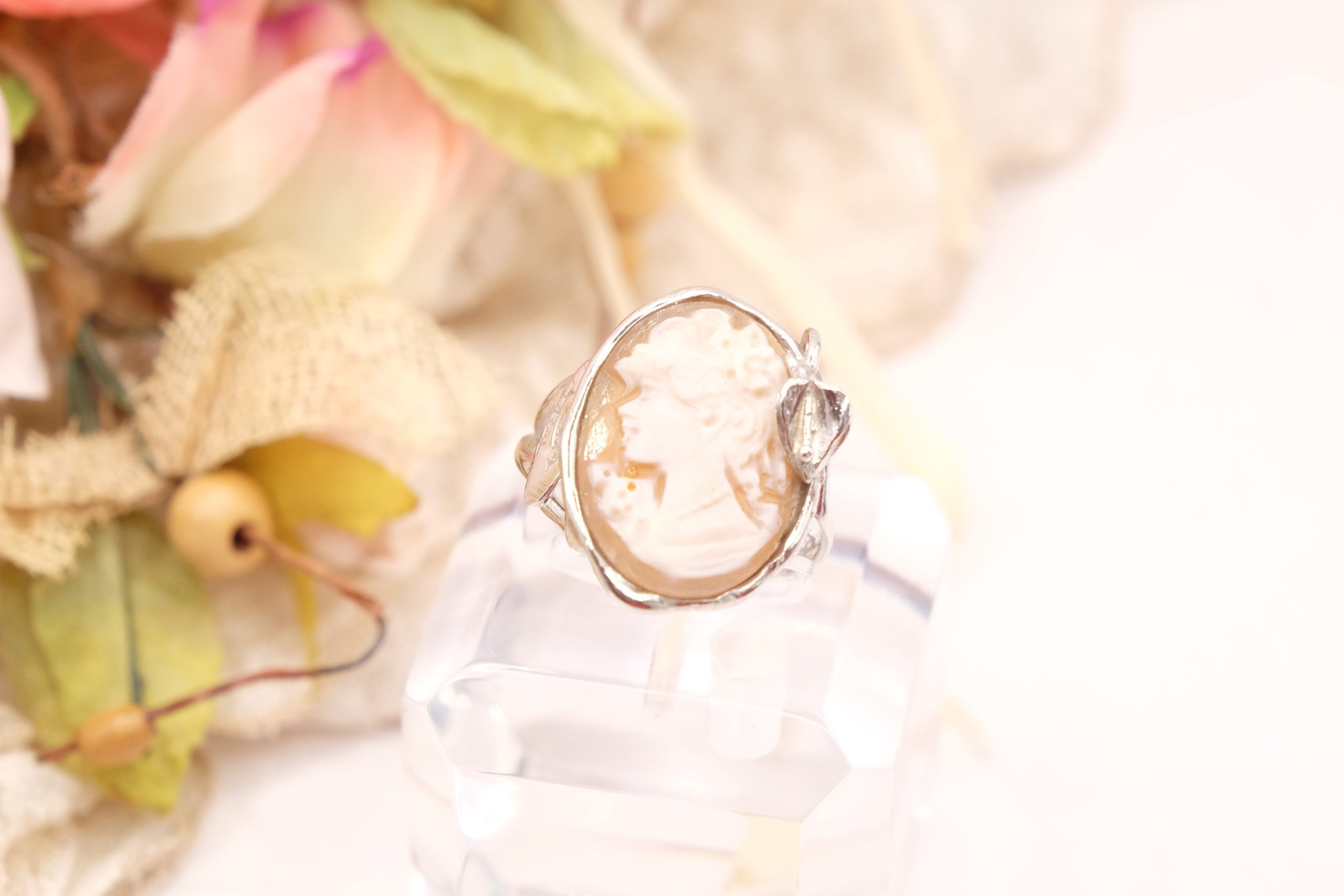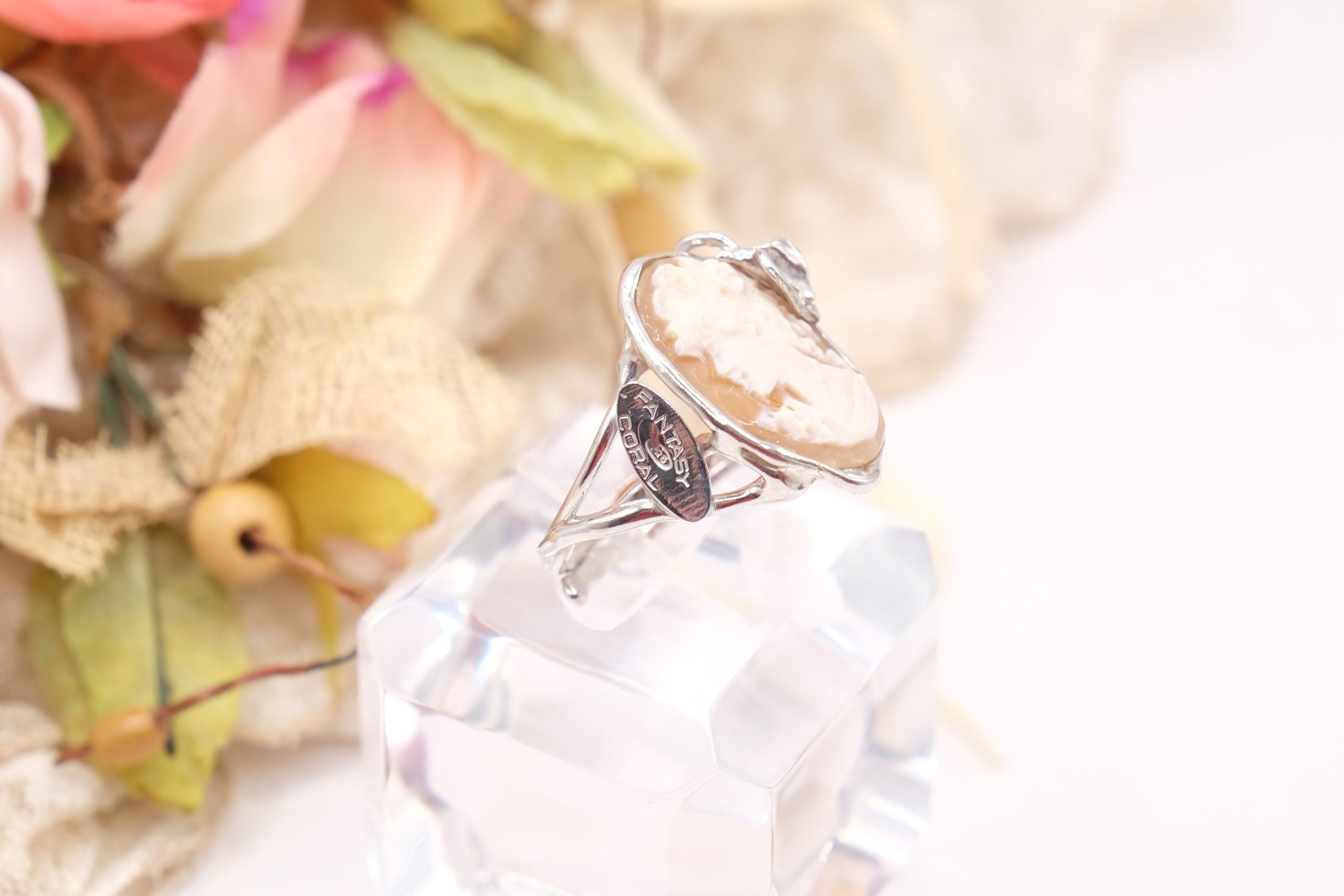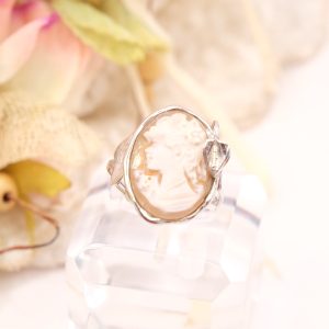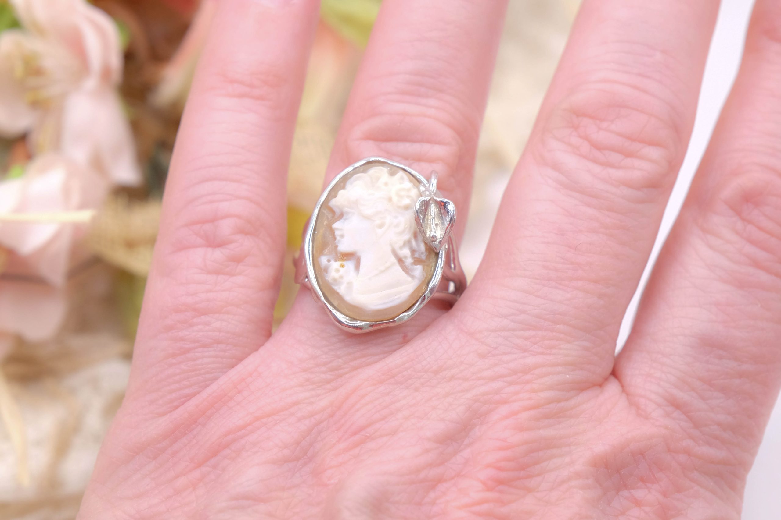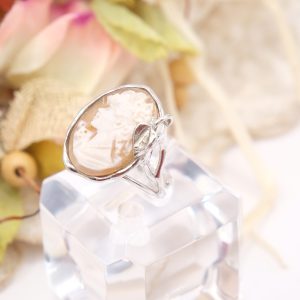 Torre del Greco Cameo Ring in Rhodium-Plated Silver, Handcrafted