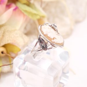 Antique style ring, with real sardonyx shell cameo, handmade by the master craftsmen of Torre del Greco