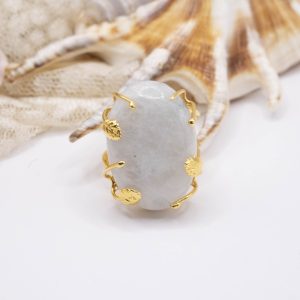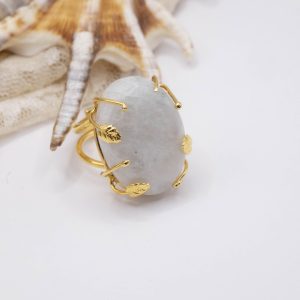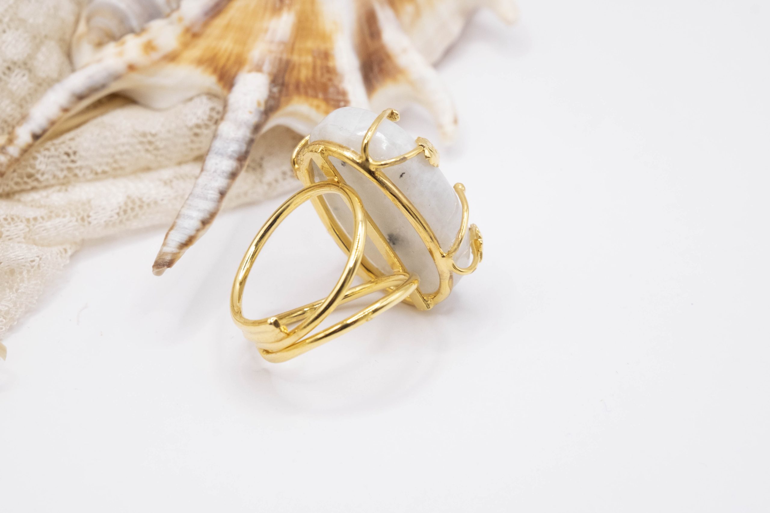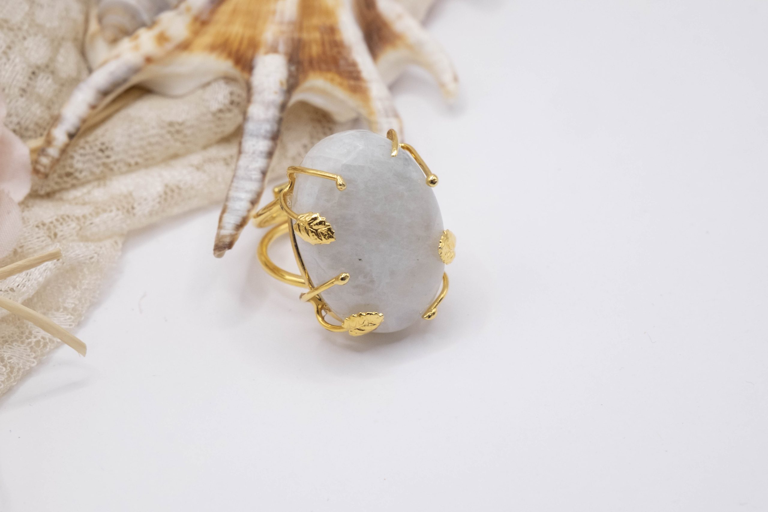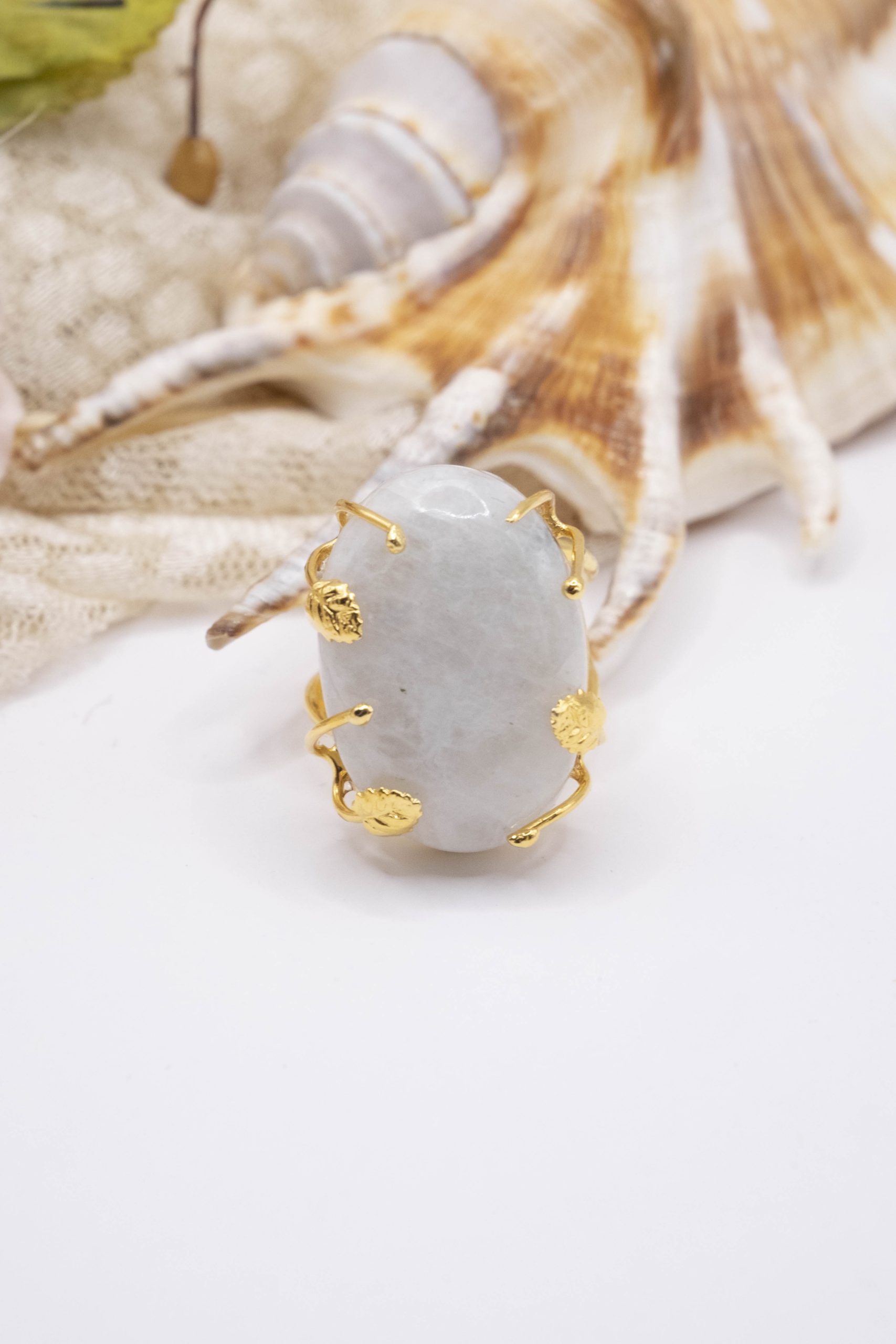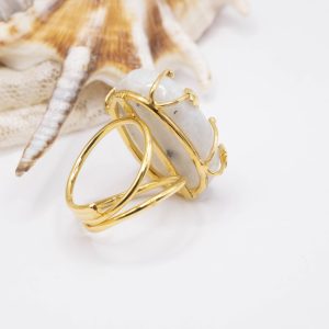 Ring with Natural Milky Quartz 925 Silver Gold Plated