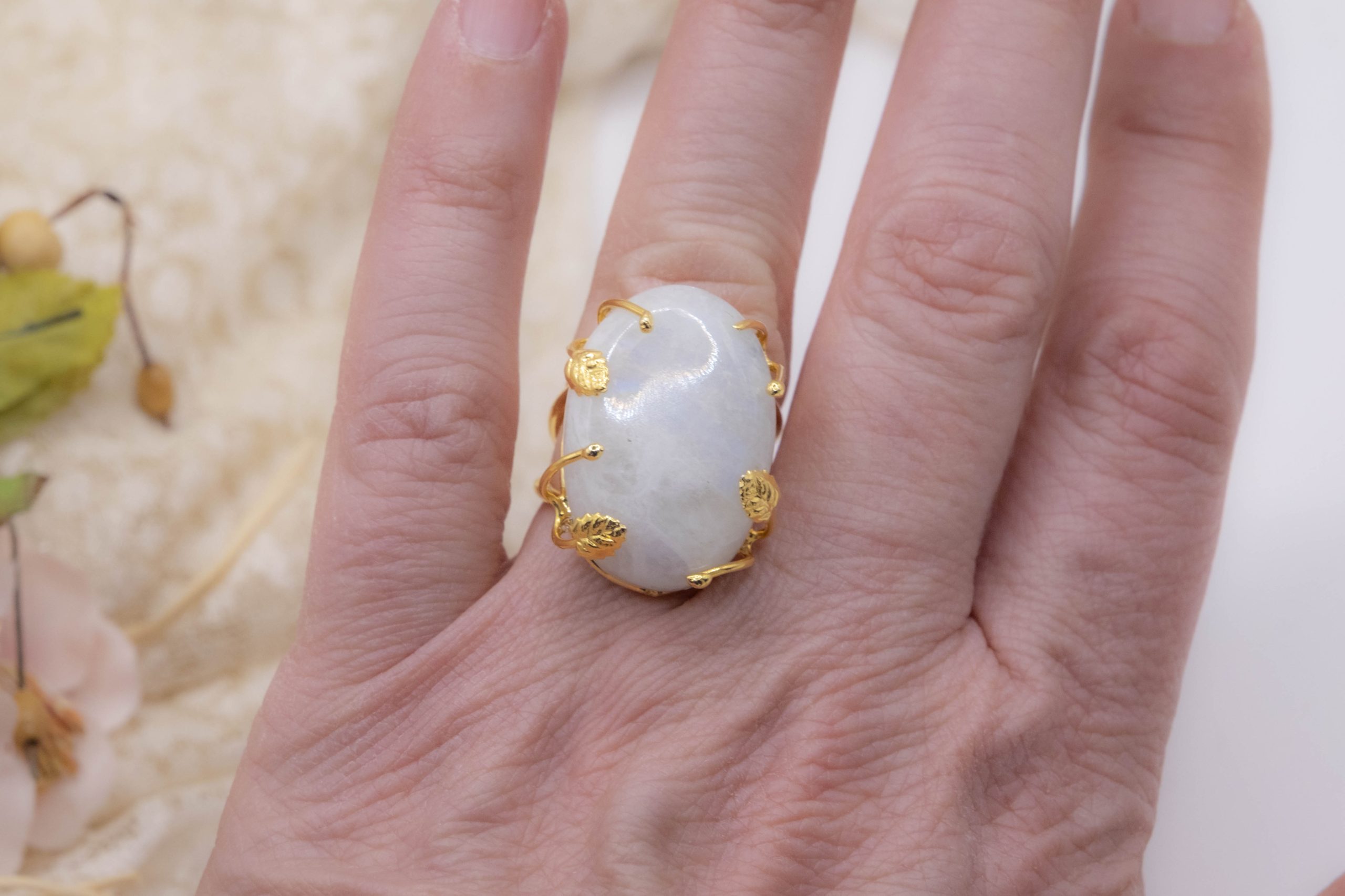 Large handcrafted ring with beautiful natural Milky Quartz oval