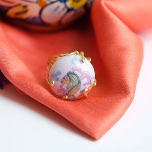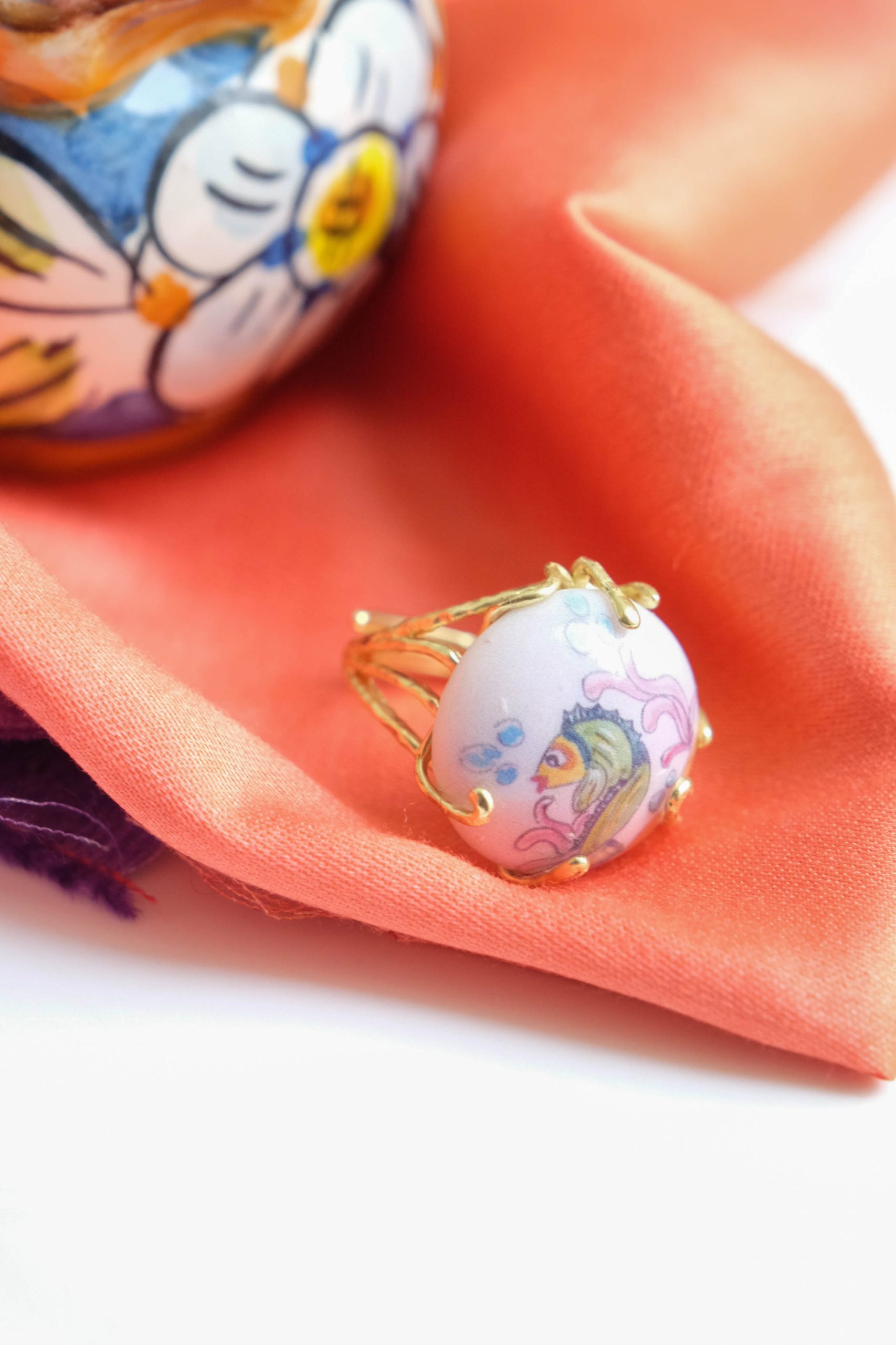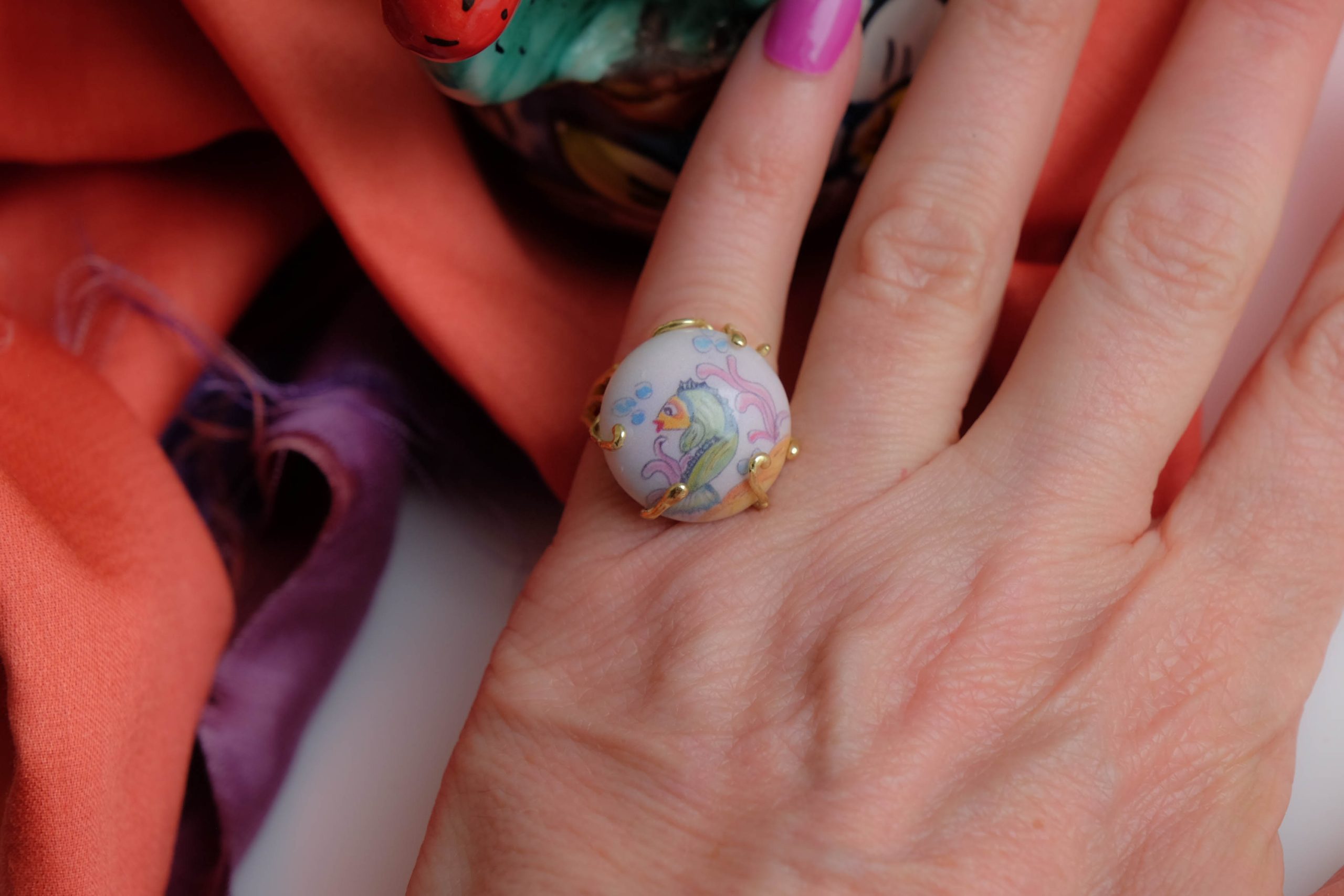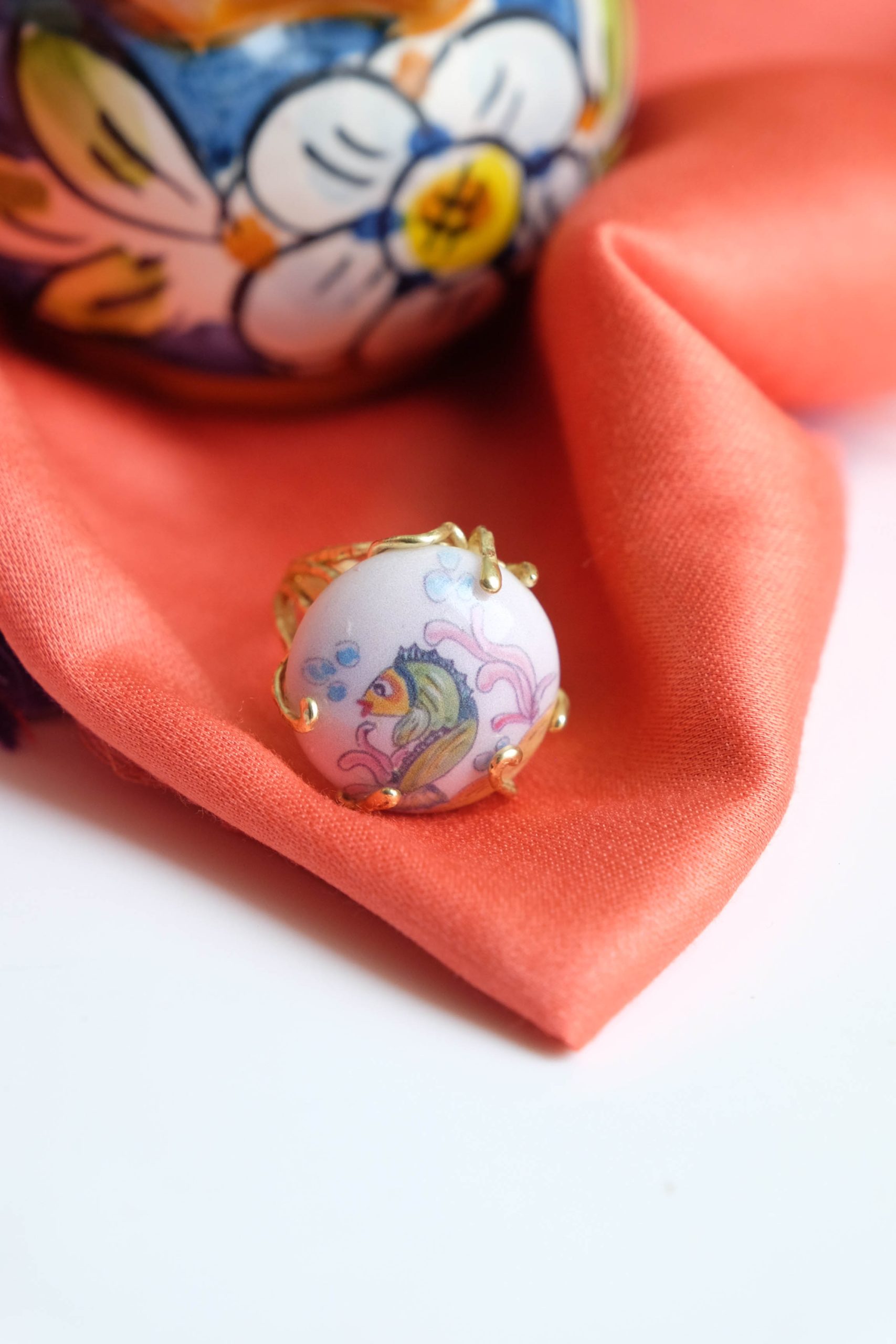 Caltagirone ceramic ring curved with fish