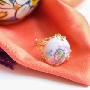 Round domed tile ring, made and decorated by hand in Caltagirone ceramic on a brass frame, manually adjustable, therefore perfect for all sizes.