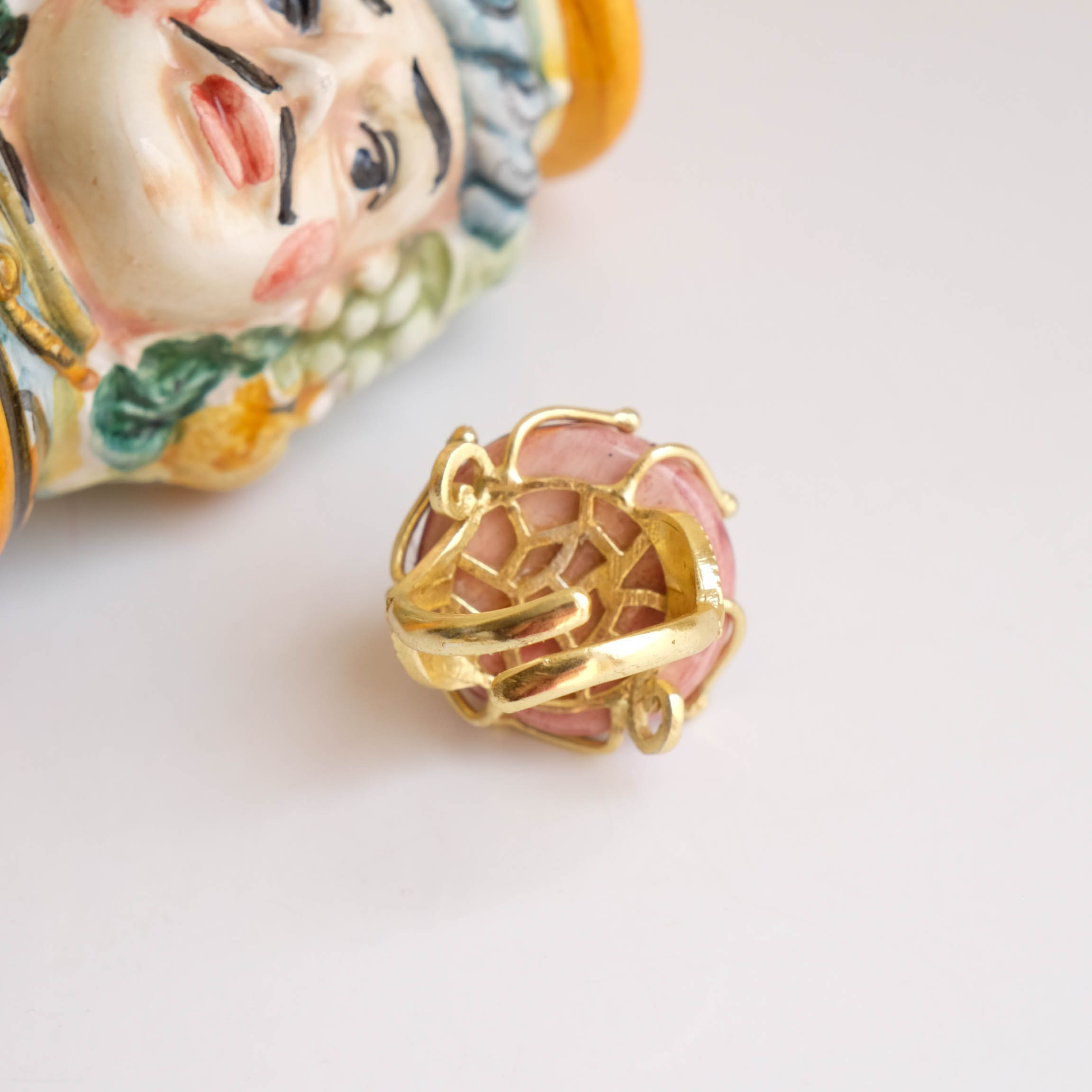 Caltagirone Ceramic Ring Domed Pink Flower 2