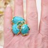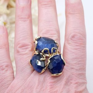 Anello Maxi 3 Pietre Occhio di Gatto Blu Ottone