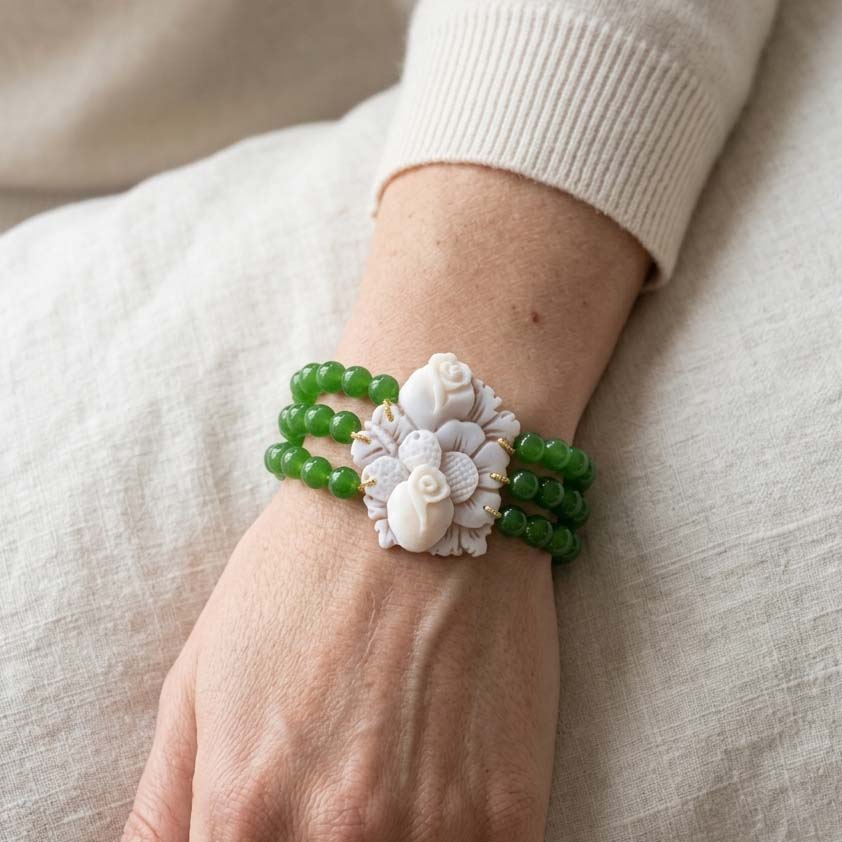 Bracelet with Green Jade and Cameo from Torre del Greco