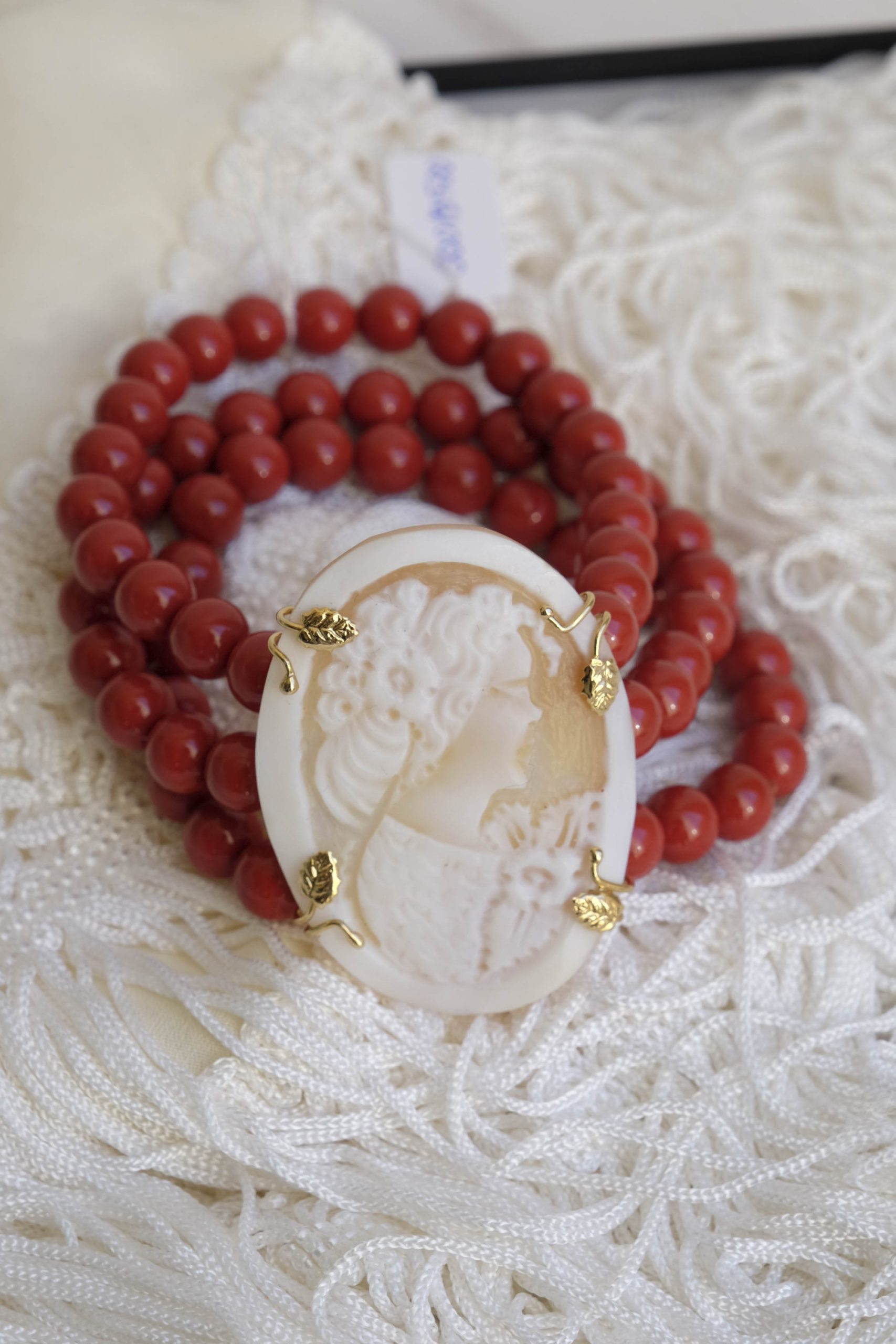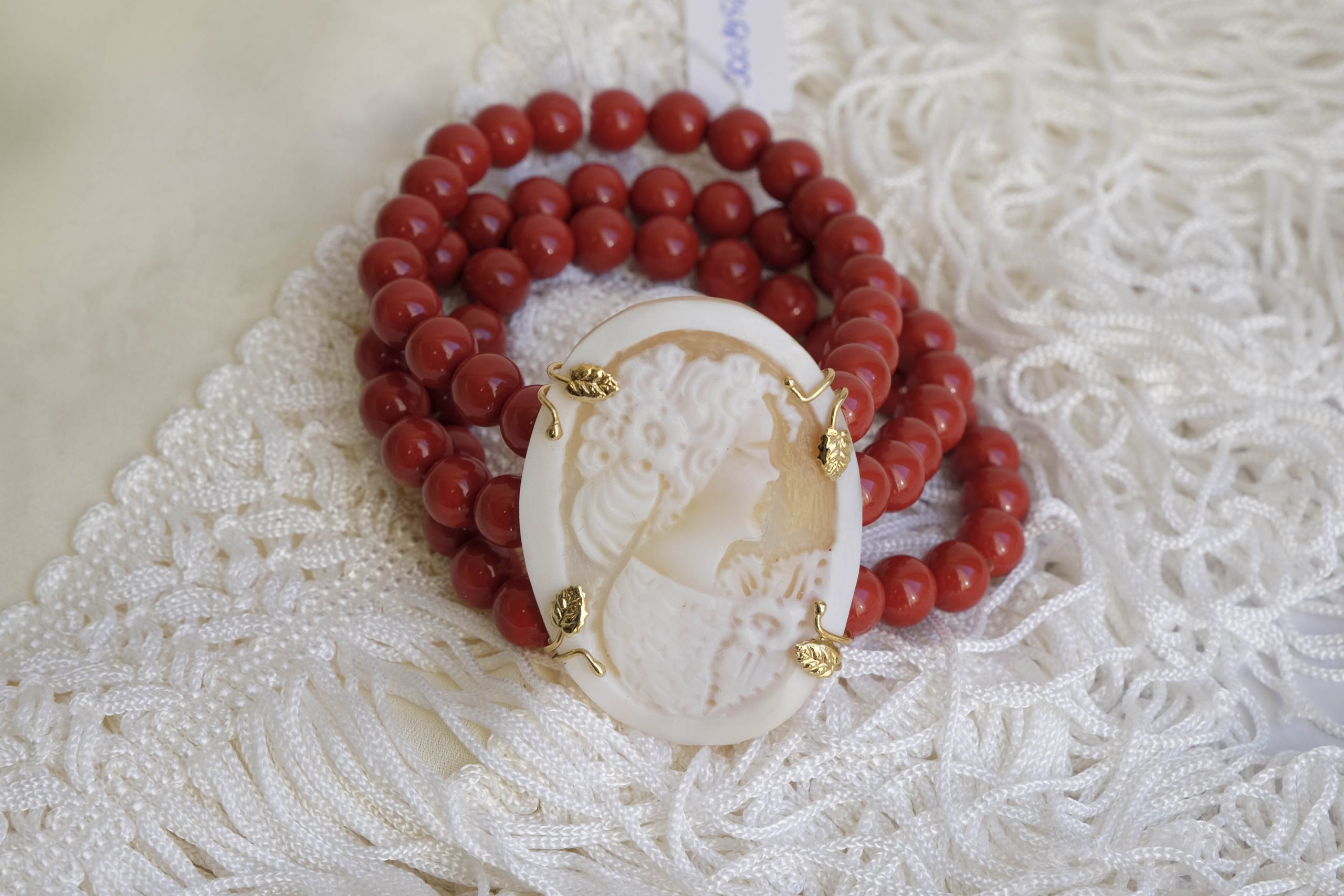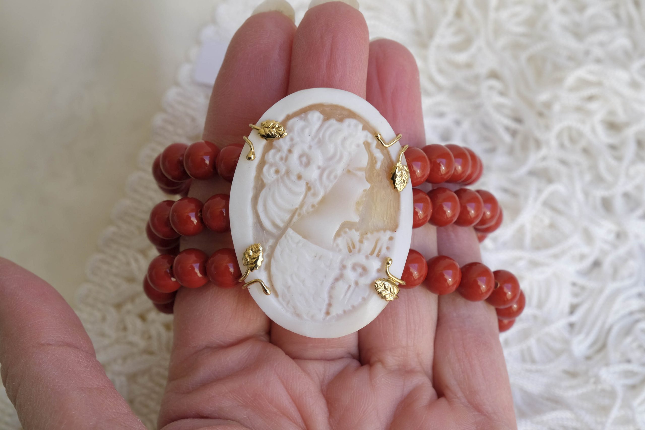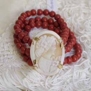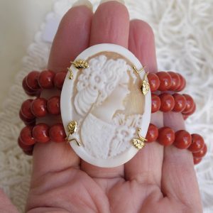 Bracelet with red coral paste and cameo from Torre del Greco