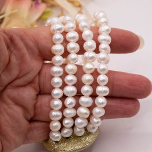 Stretch Bracelet 4 Strands Natural White Pearls Coral Bamboo 18 cm