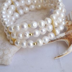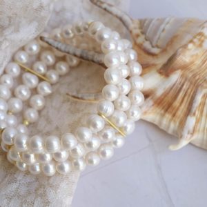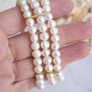 ✨ 3 Strand Stretch Bracelet – Natural White Pearls & Gold Plated Silver ✨