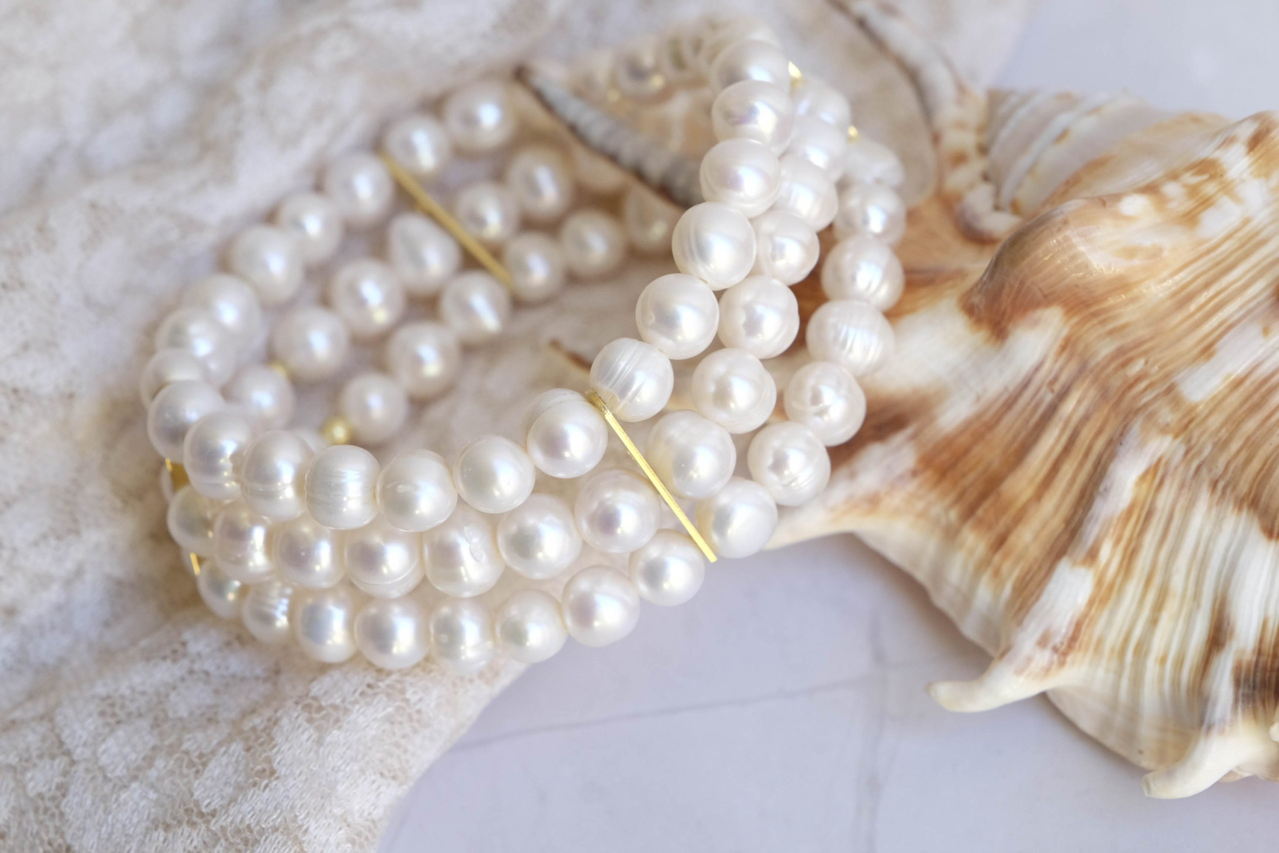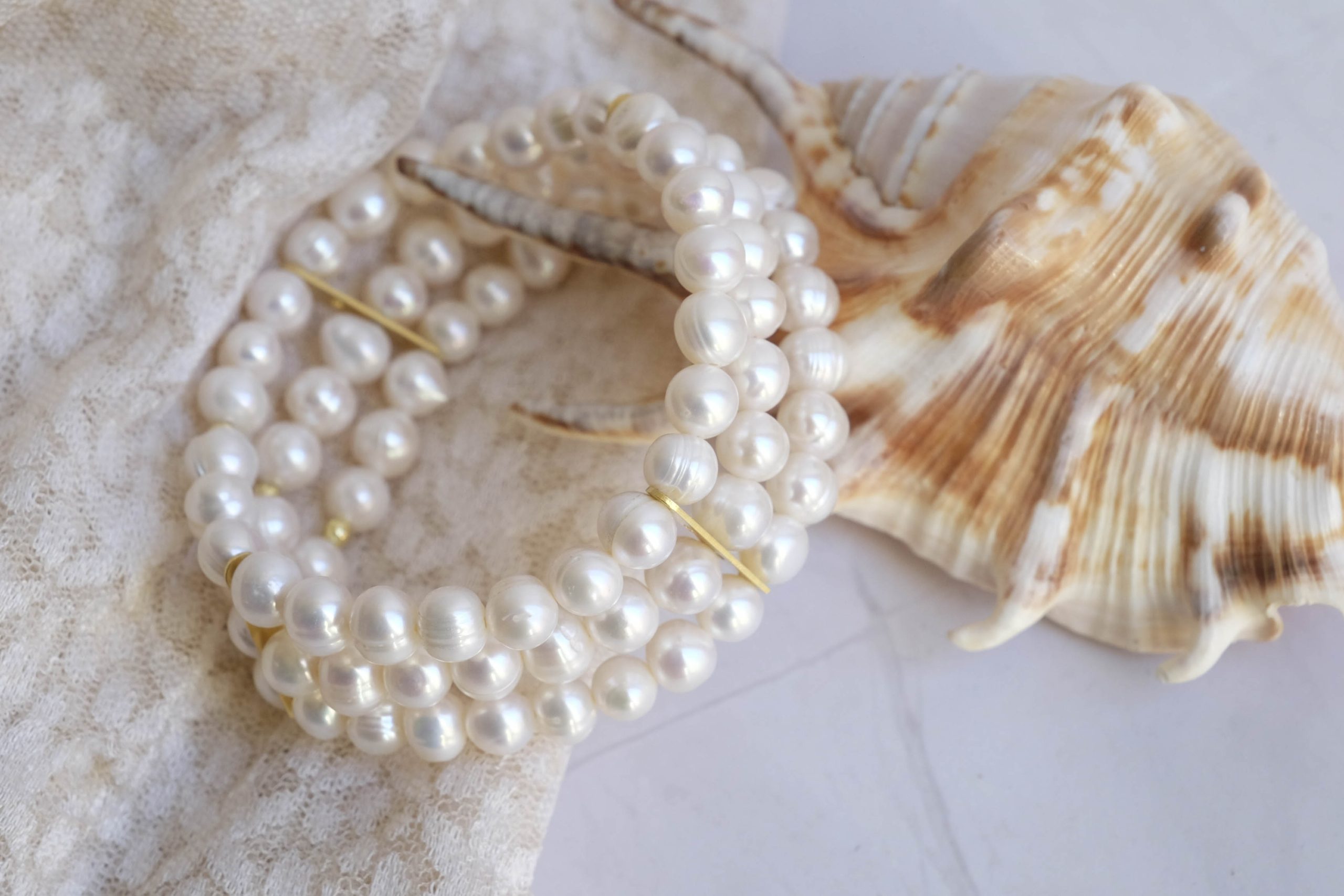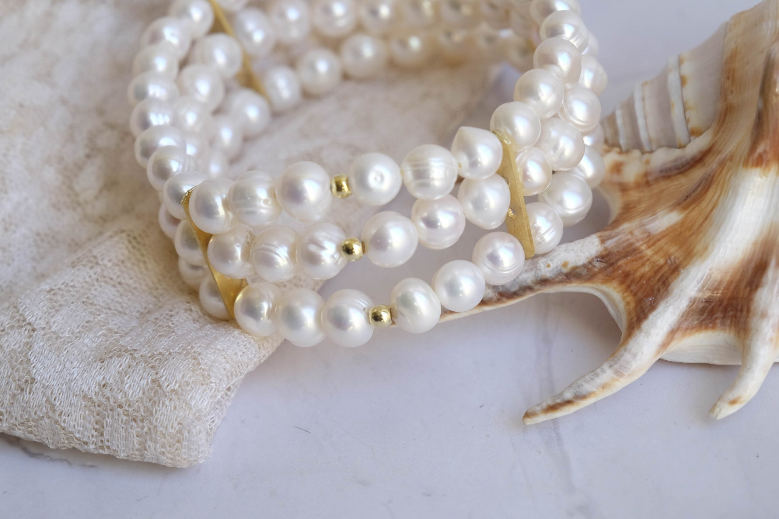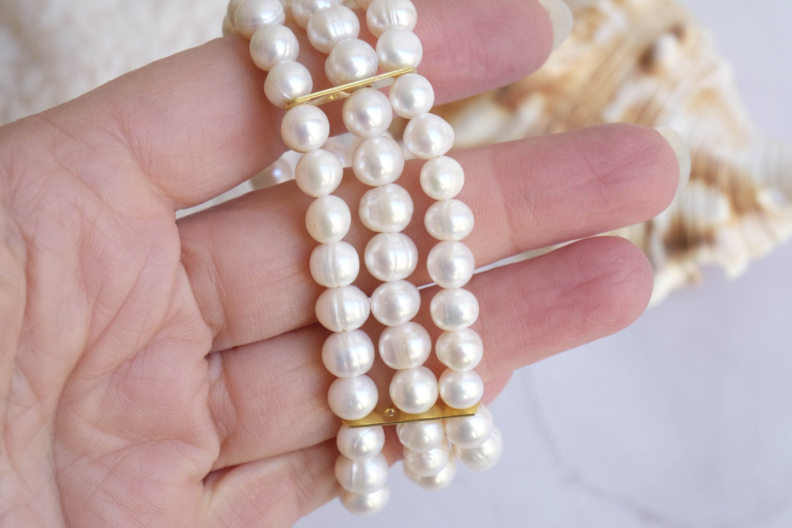 Timeless elegance to brighten up your style! 💖 This refined 3-strand bracelet combines the beauty of white natural pearls from the magnificent orient with details in 925 silver gold plated, for a touch of class and refinement.
