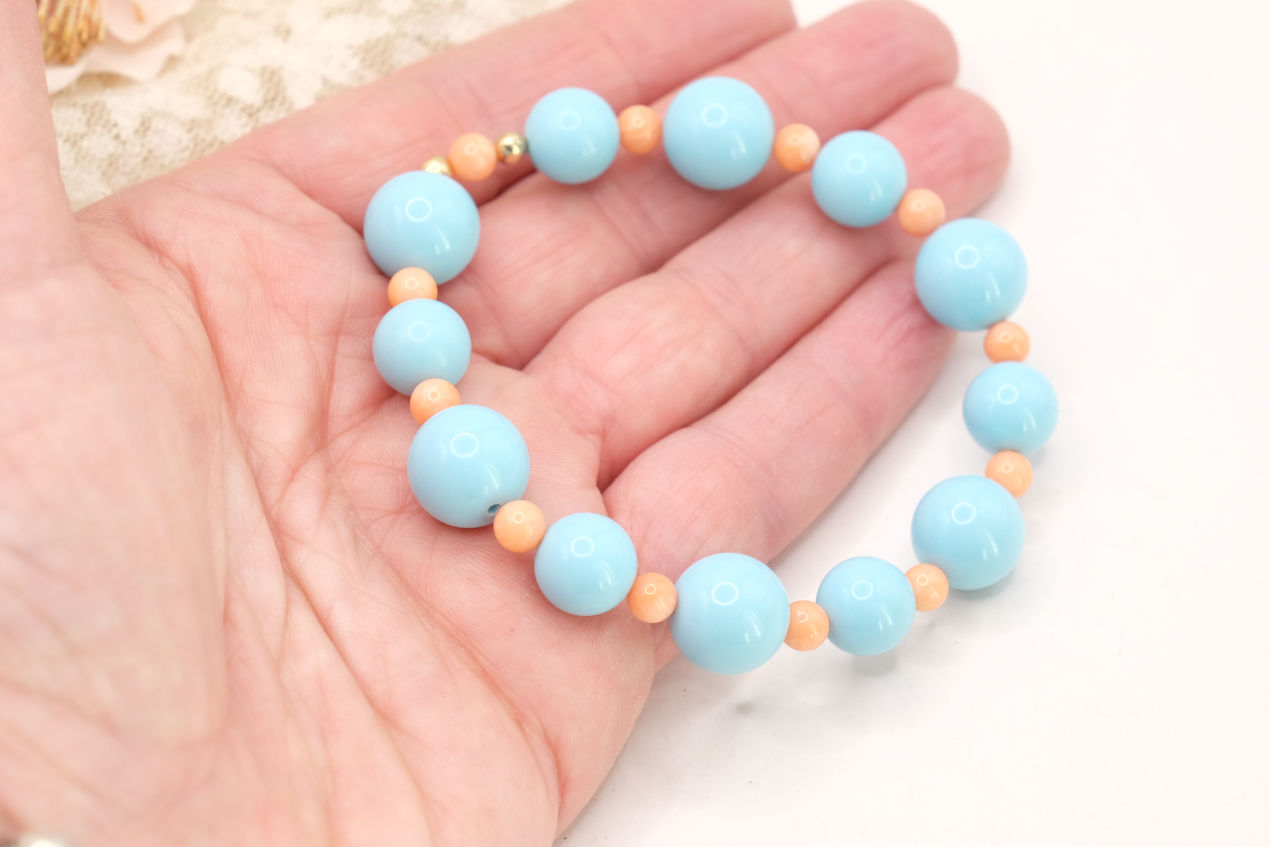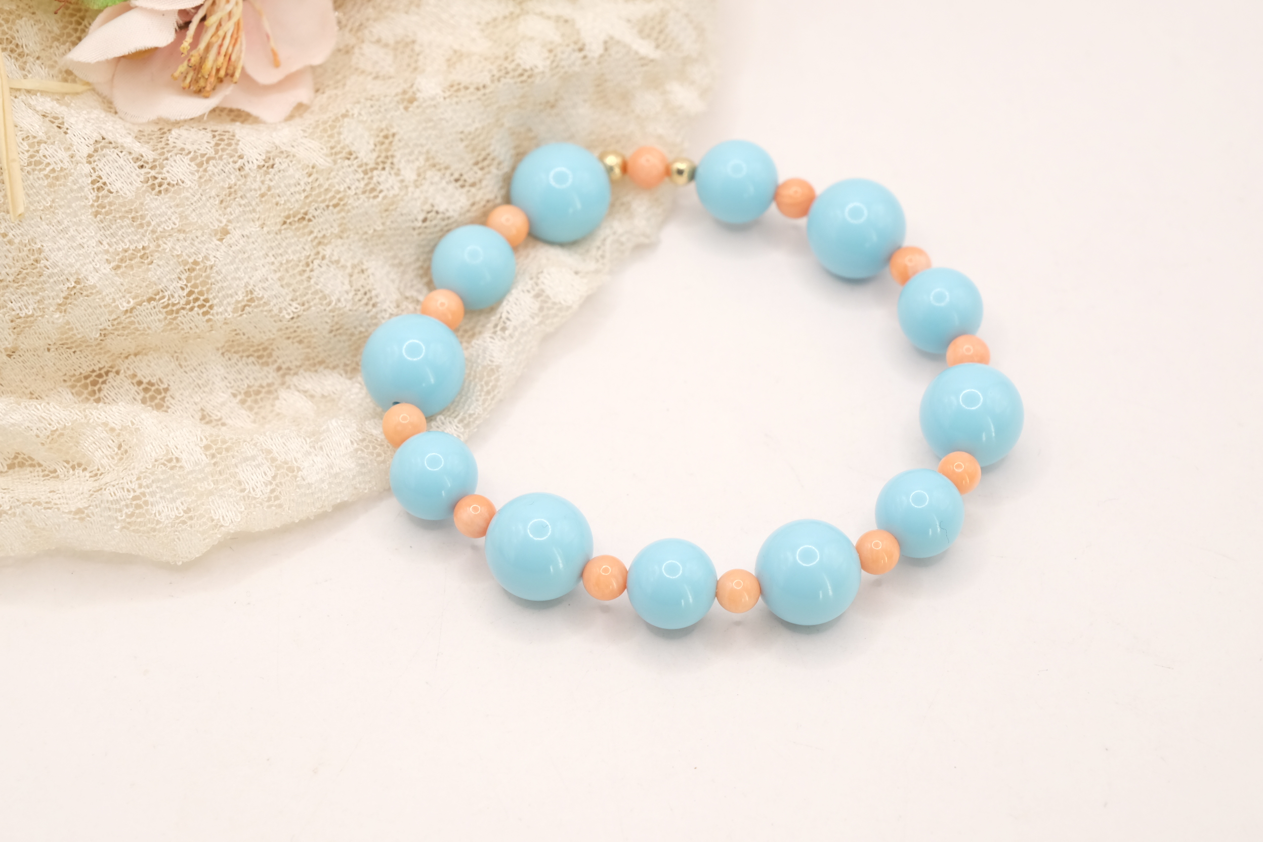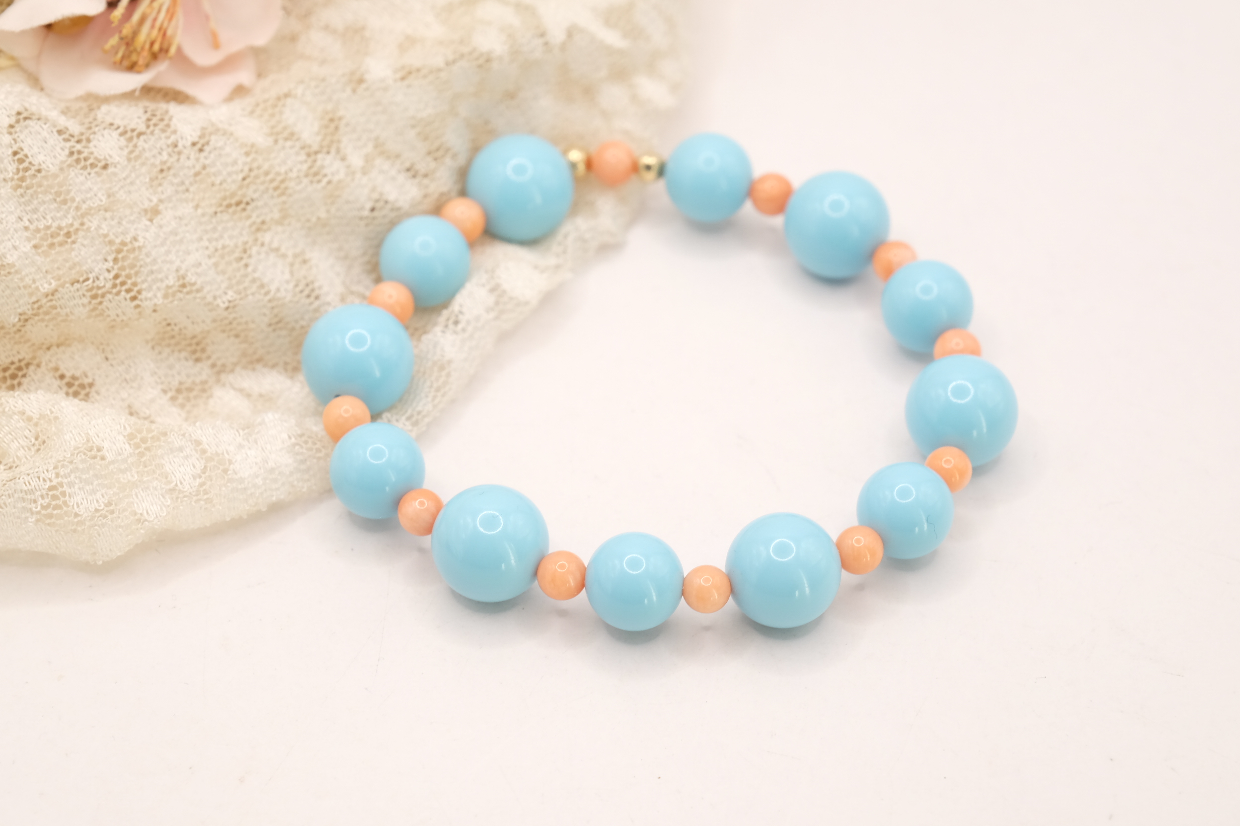 Un bracciale fresco e luminoso che unisce il fascino della pasta di turchese alla delicatezza del corallo bamboo rosa 💙🌸