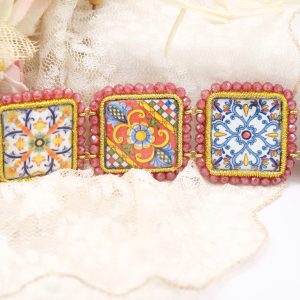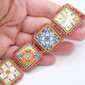 Caltagirone Ceramic Tile Bracelet with Pink Zircons