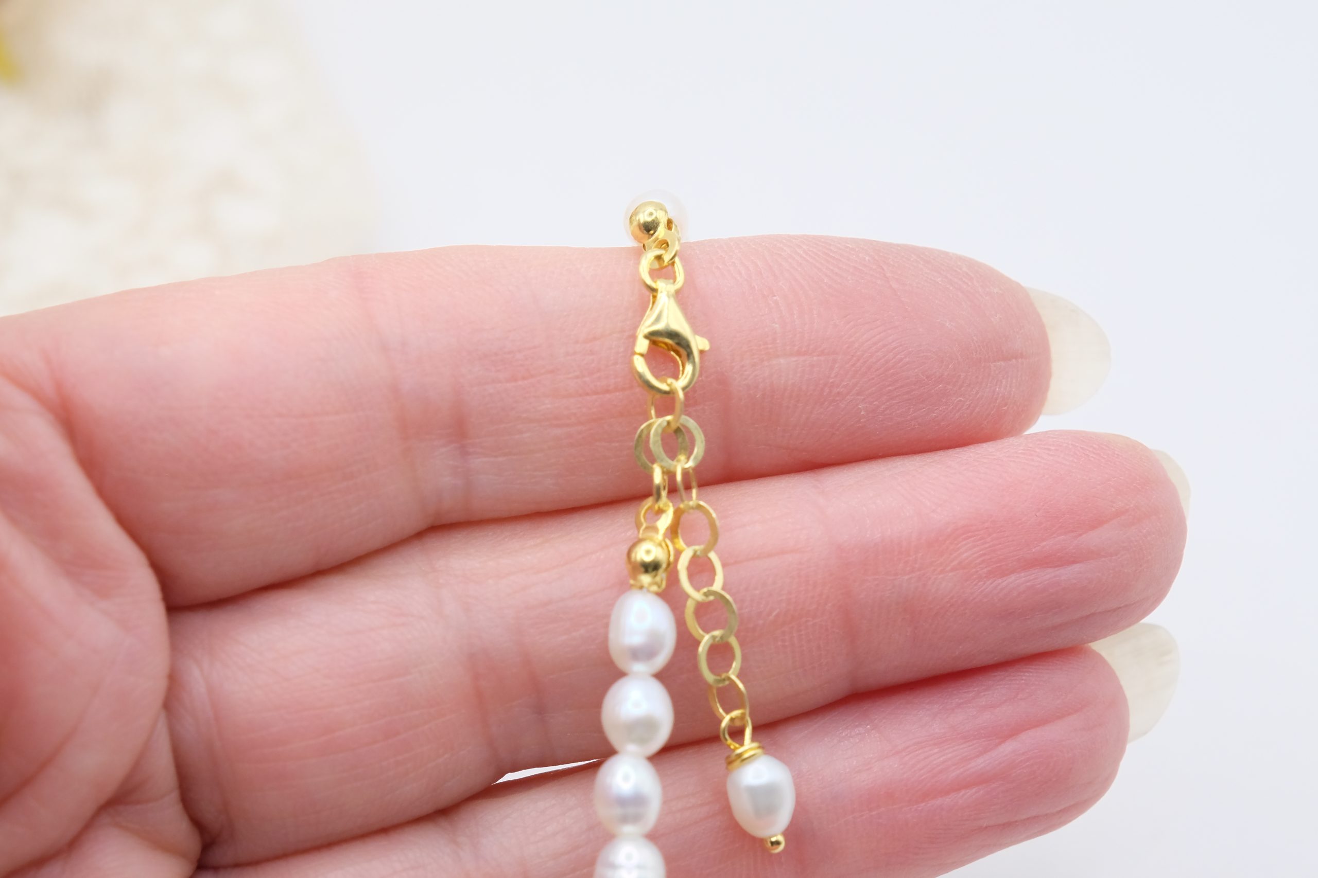 ✨ Small Natural White Pearl Bracelet in Gold-Plated 925 Silver ✨