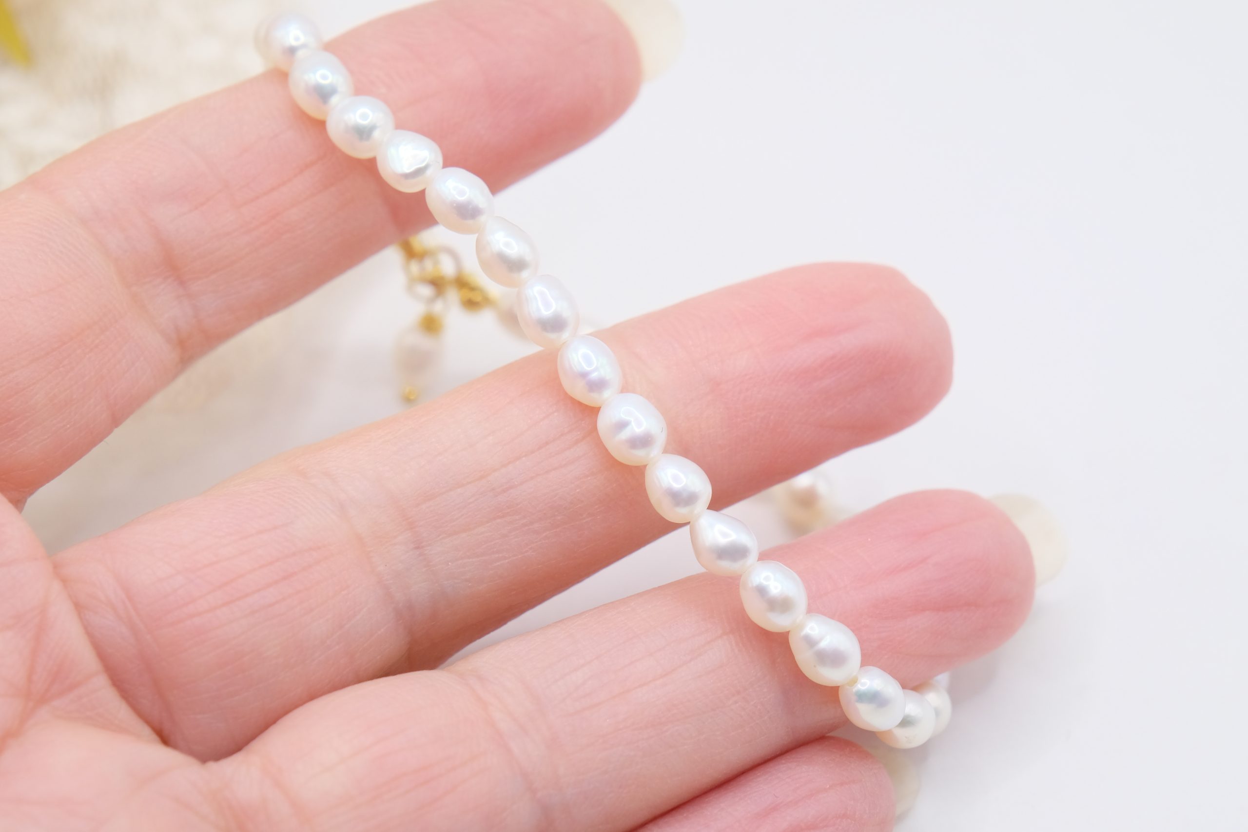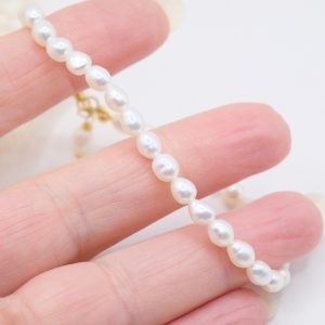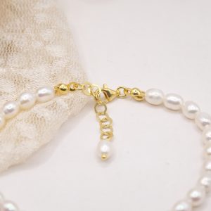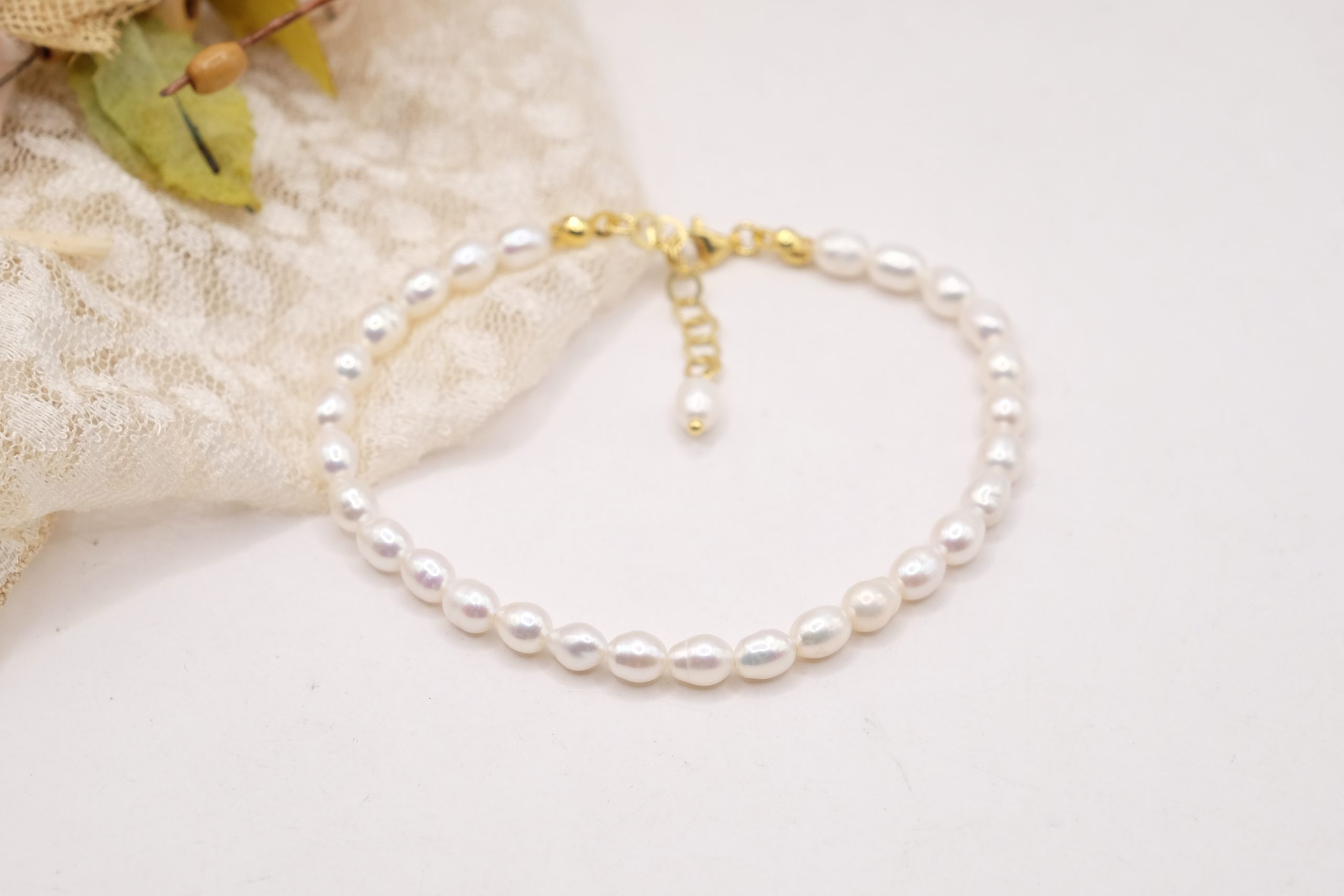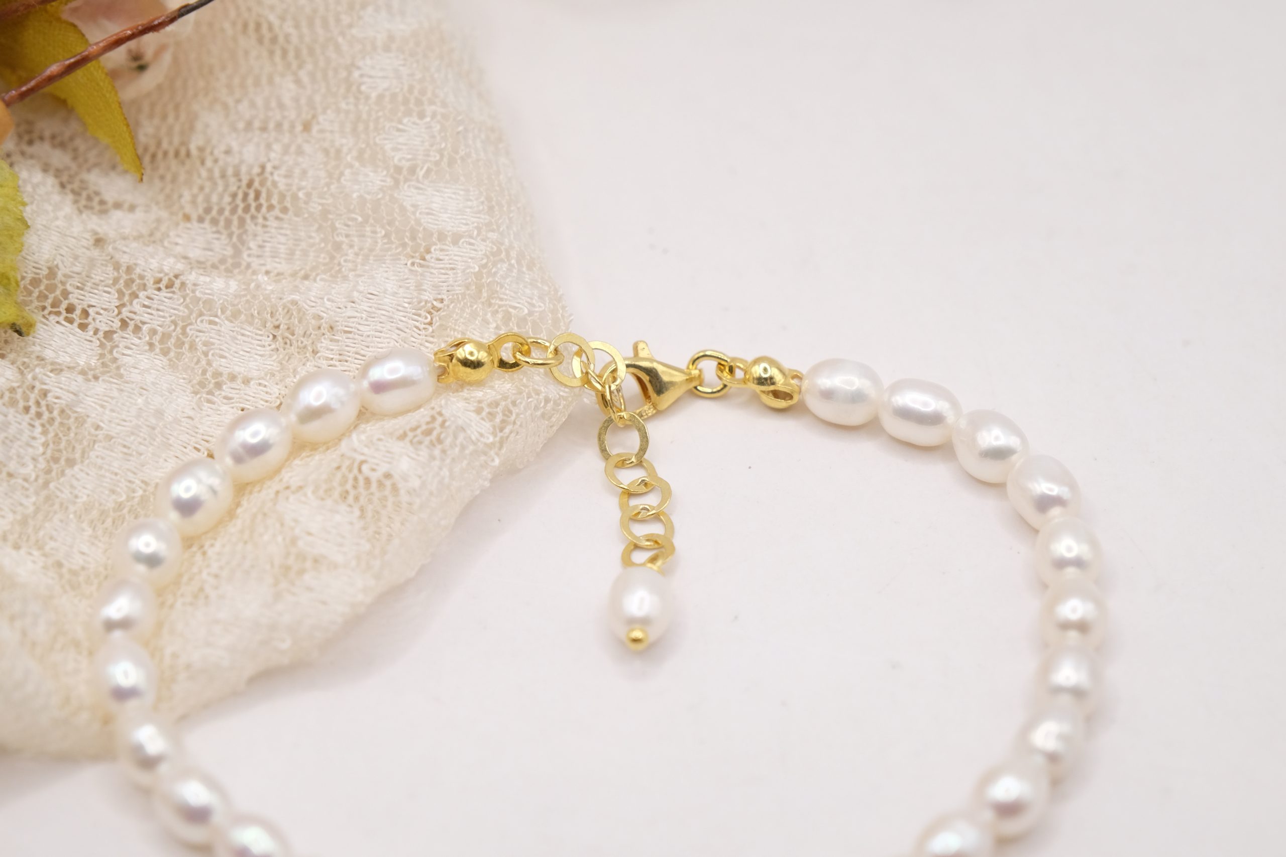 Natural White Pearl Rice Grain Bracelet in Gold-Plated 925 Silver