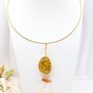 La lavorazione soutache avvolge la pietra con raffinatezza, mentre il moschettone tondo in argento dorato ti permette di abbinarlo facilmente ai tuoi gioielli preferiti ✨