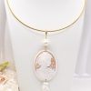 Genuine Torre del Greco Amber Cameo Pendant in Silver