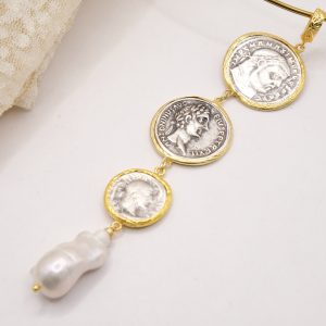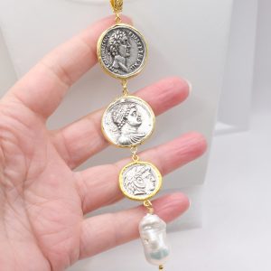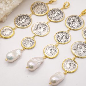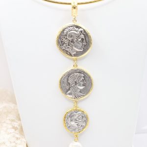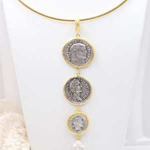 Handmade Pendant 3 Antique Coins TQ Natural Pearl