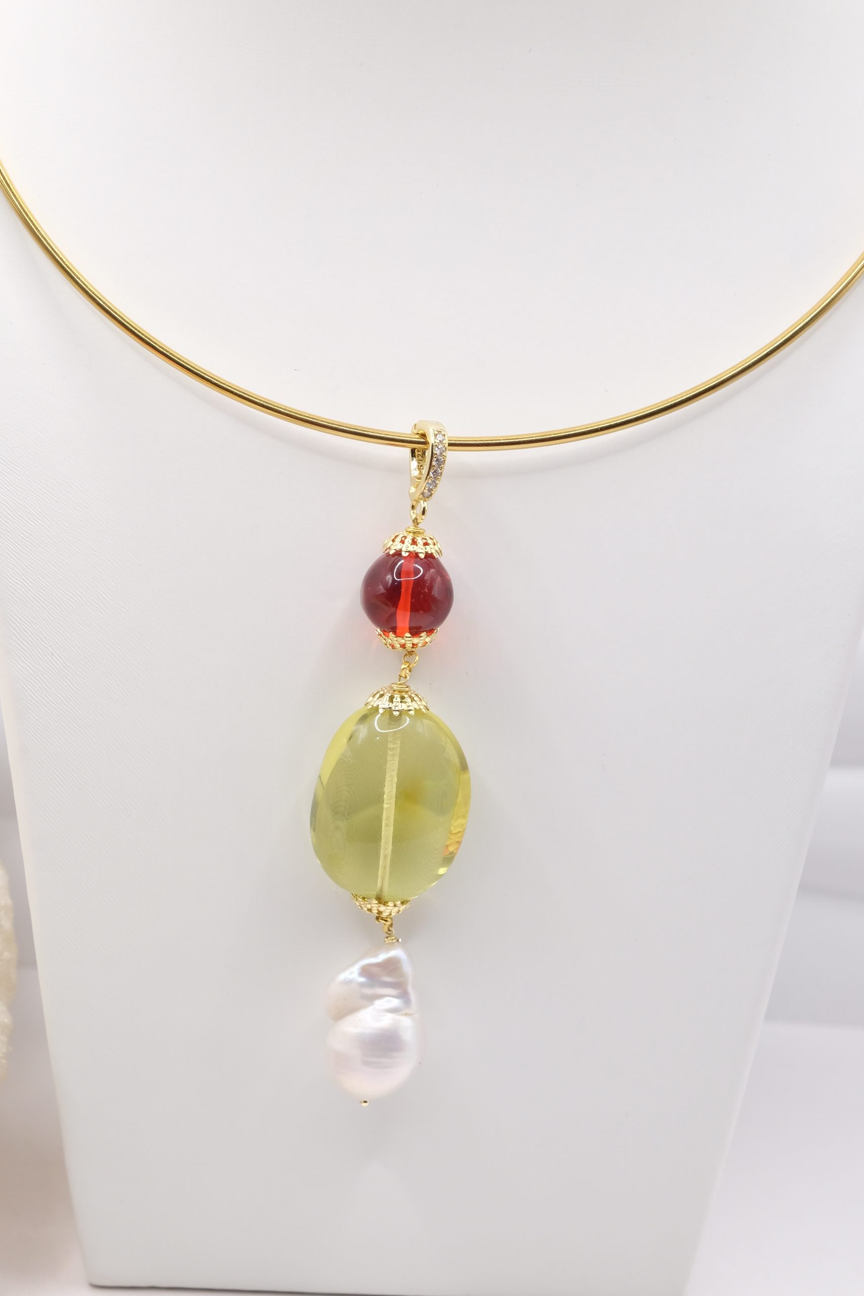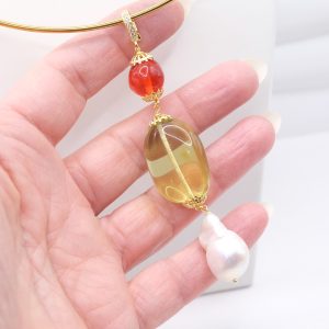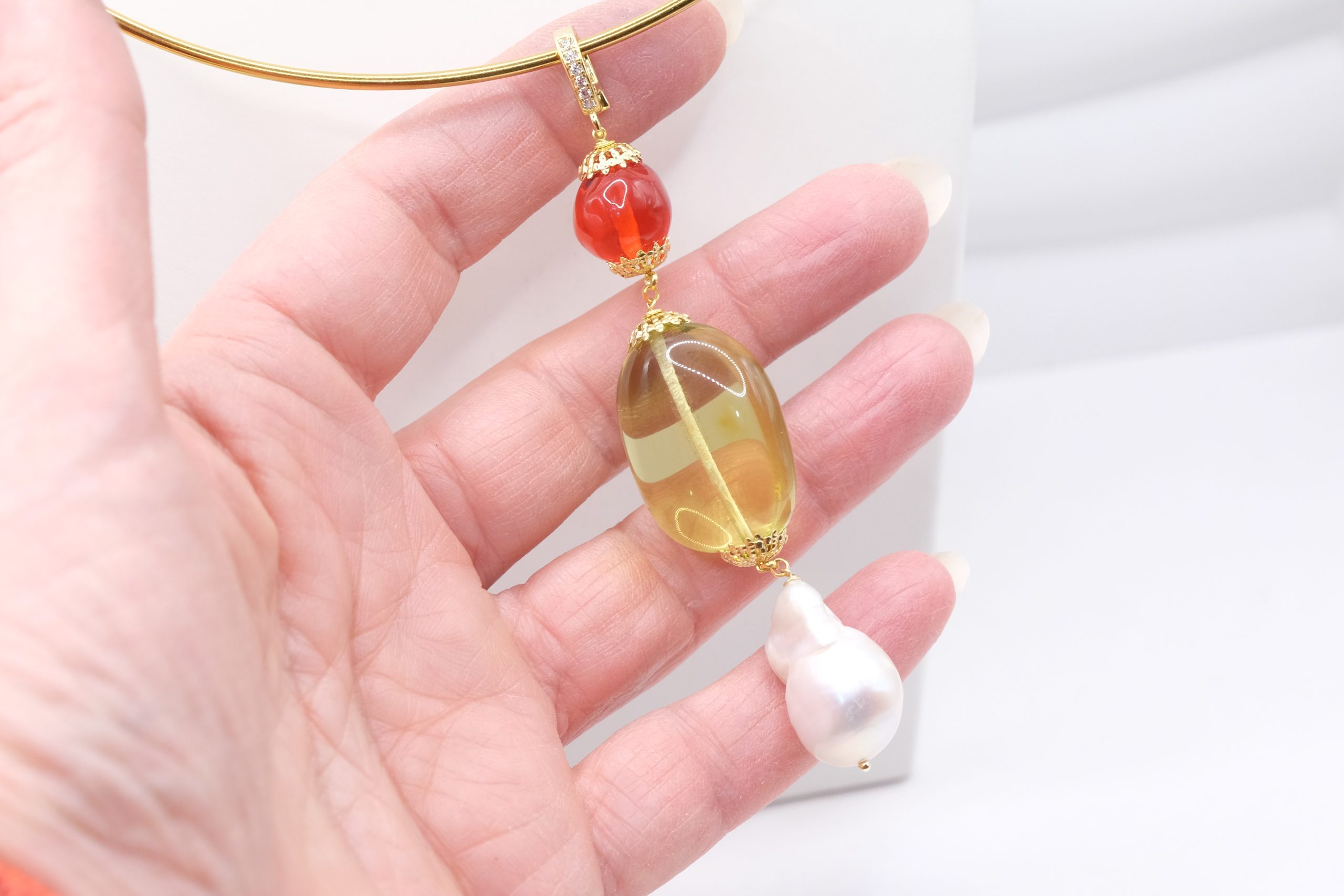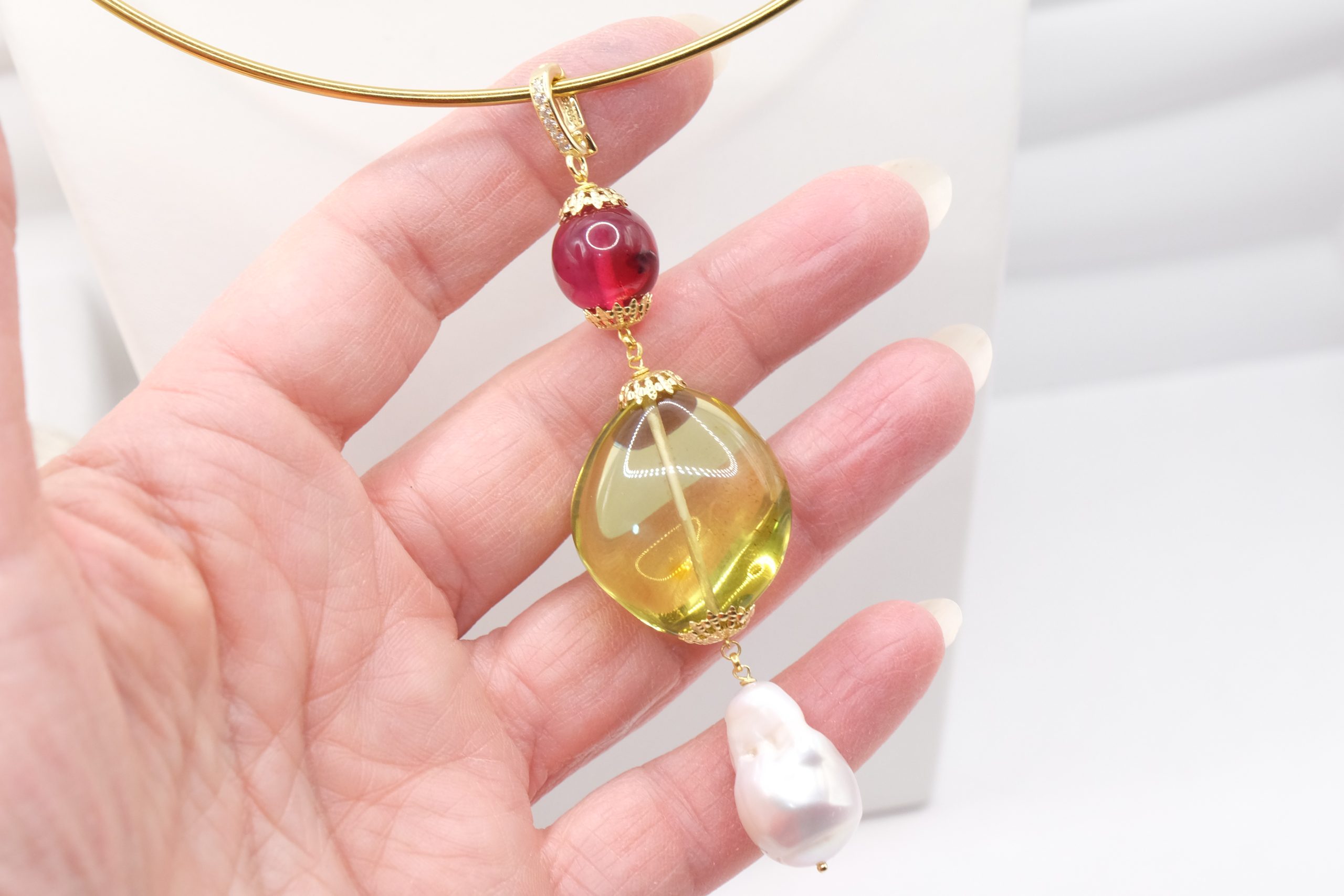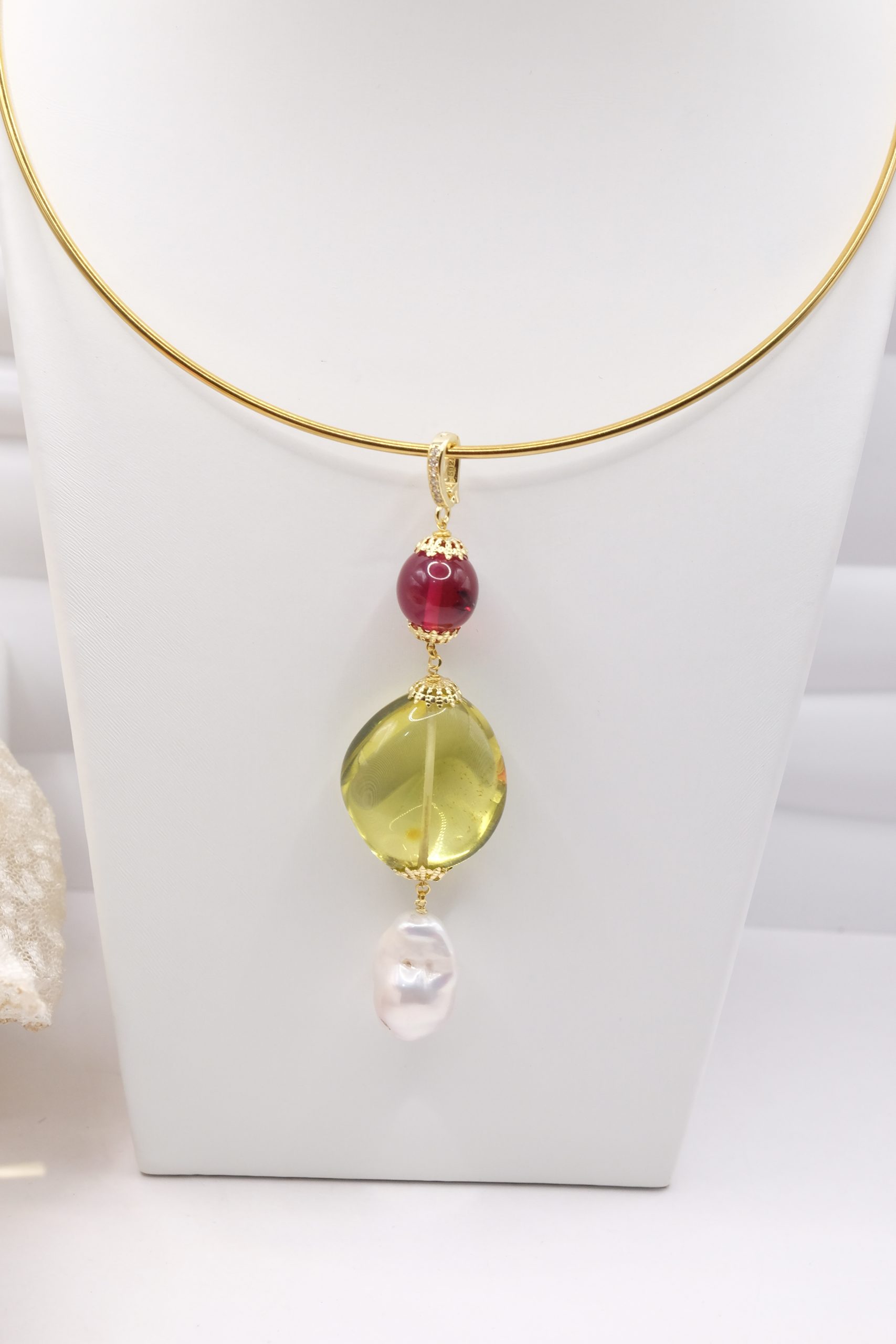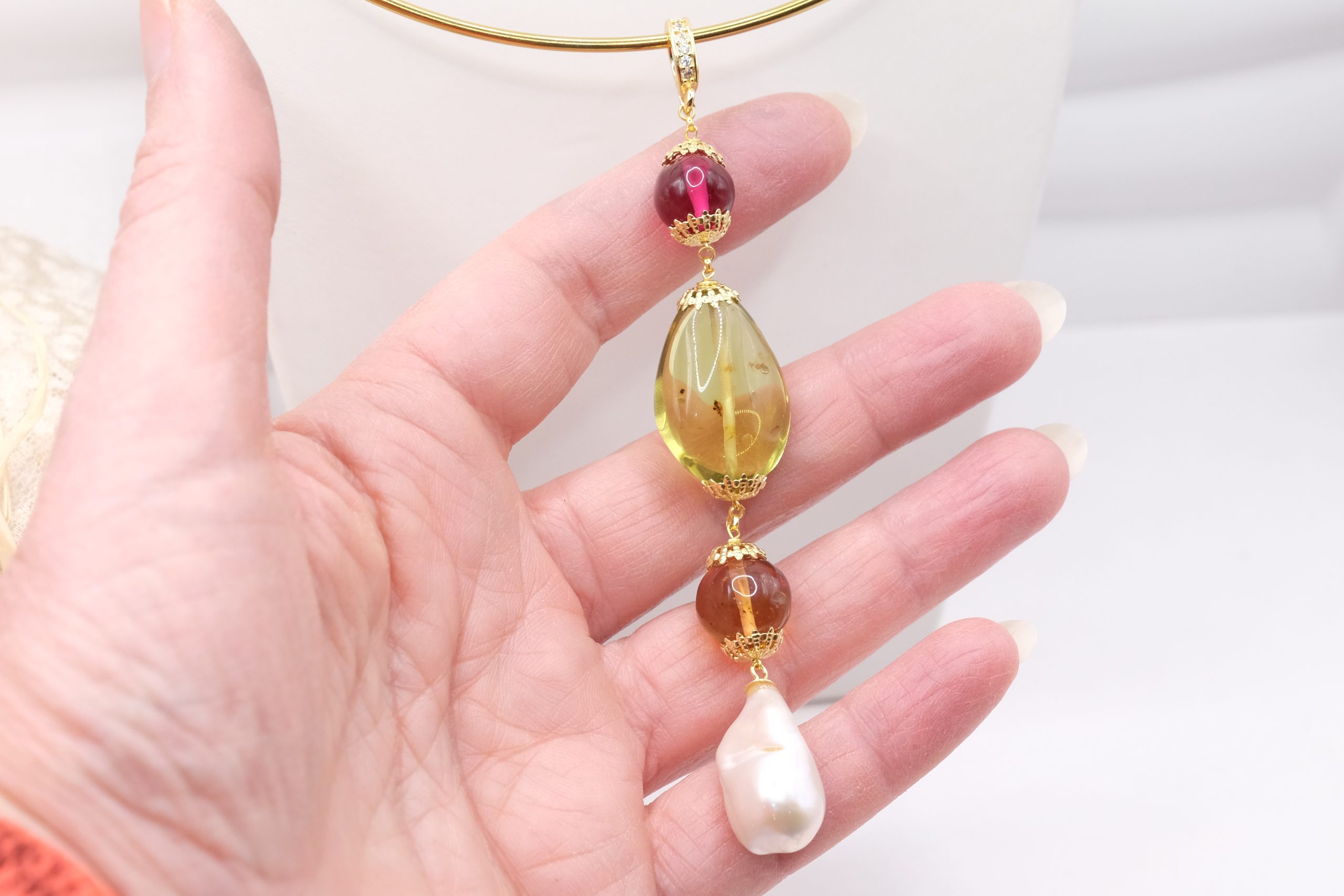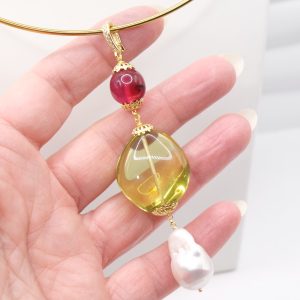 Green Cognac Amber Pendant 925 Silver 3 Variants