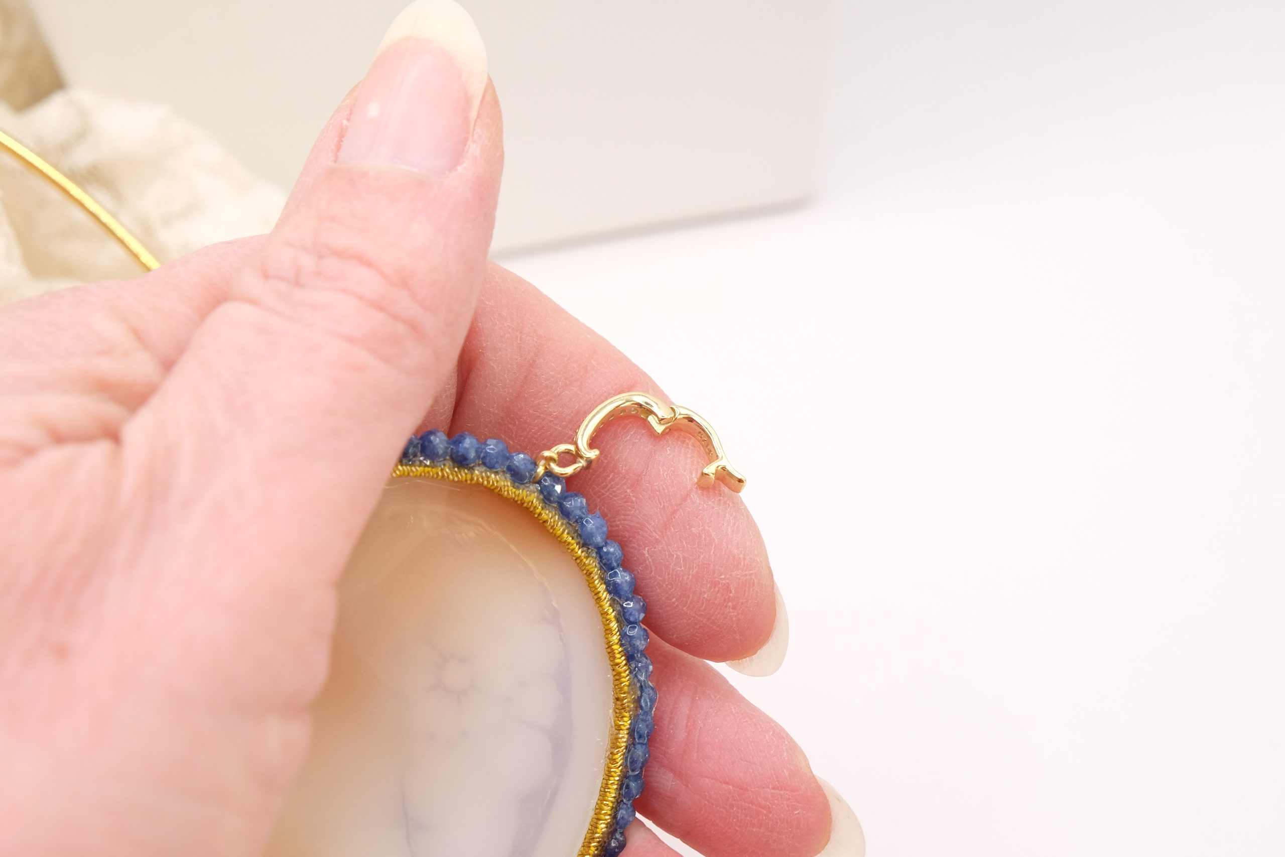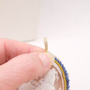 The opening hook, zirconia on the front, will allow you to apply it on necklaces or chains.