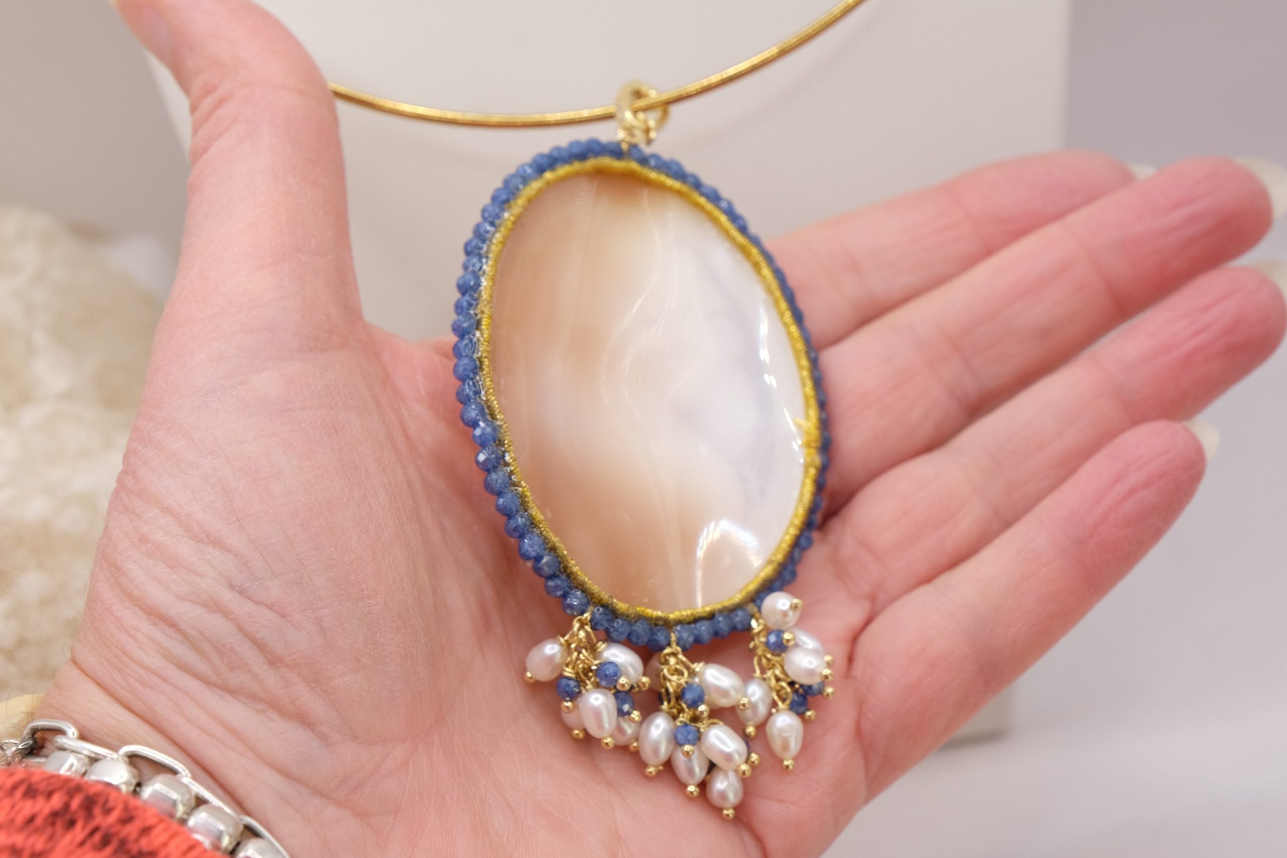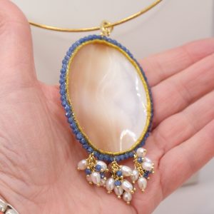 Genuine Blue Zircon Pearl Cameo Pendant