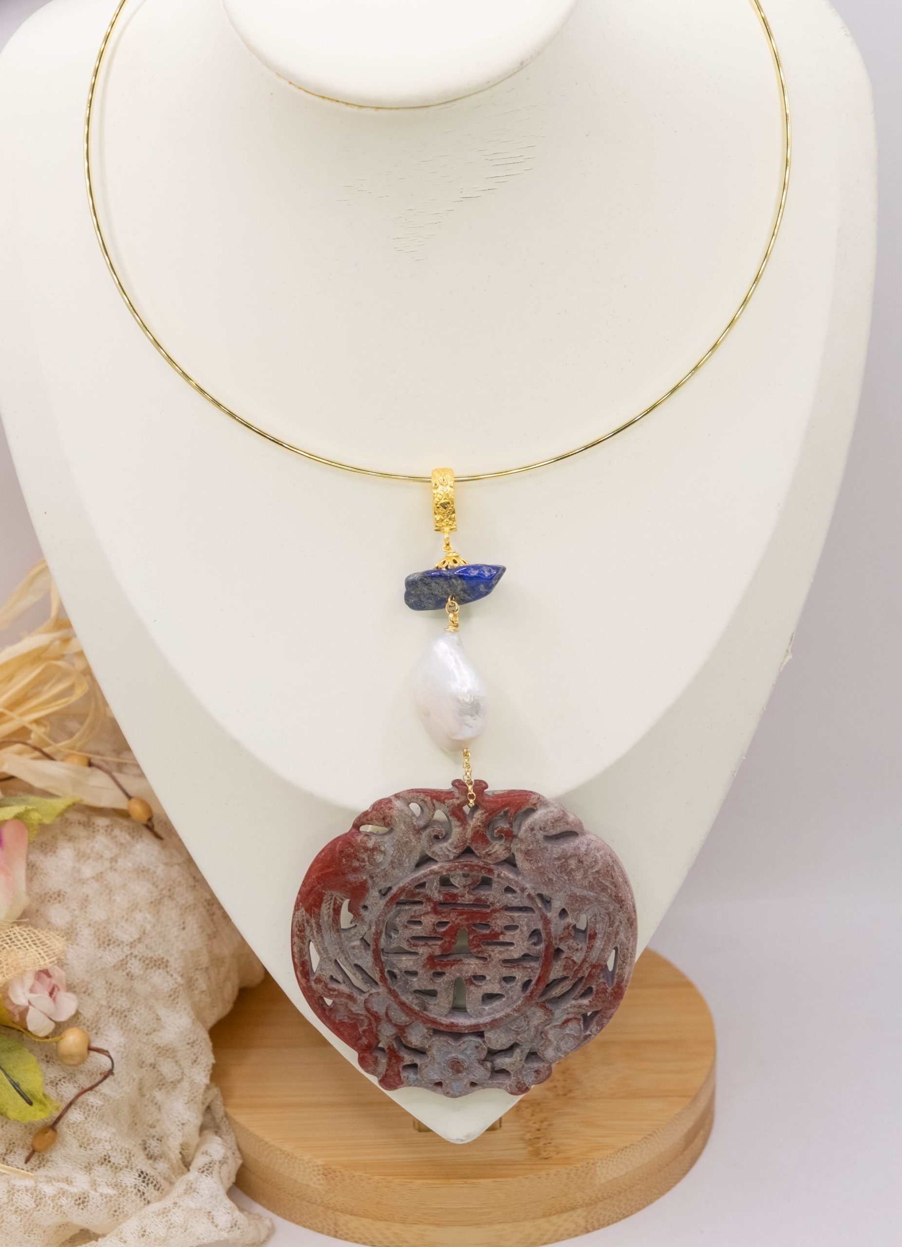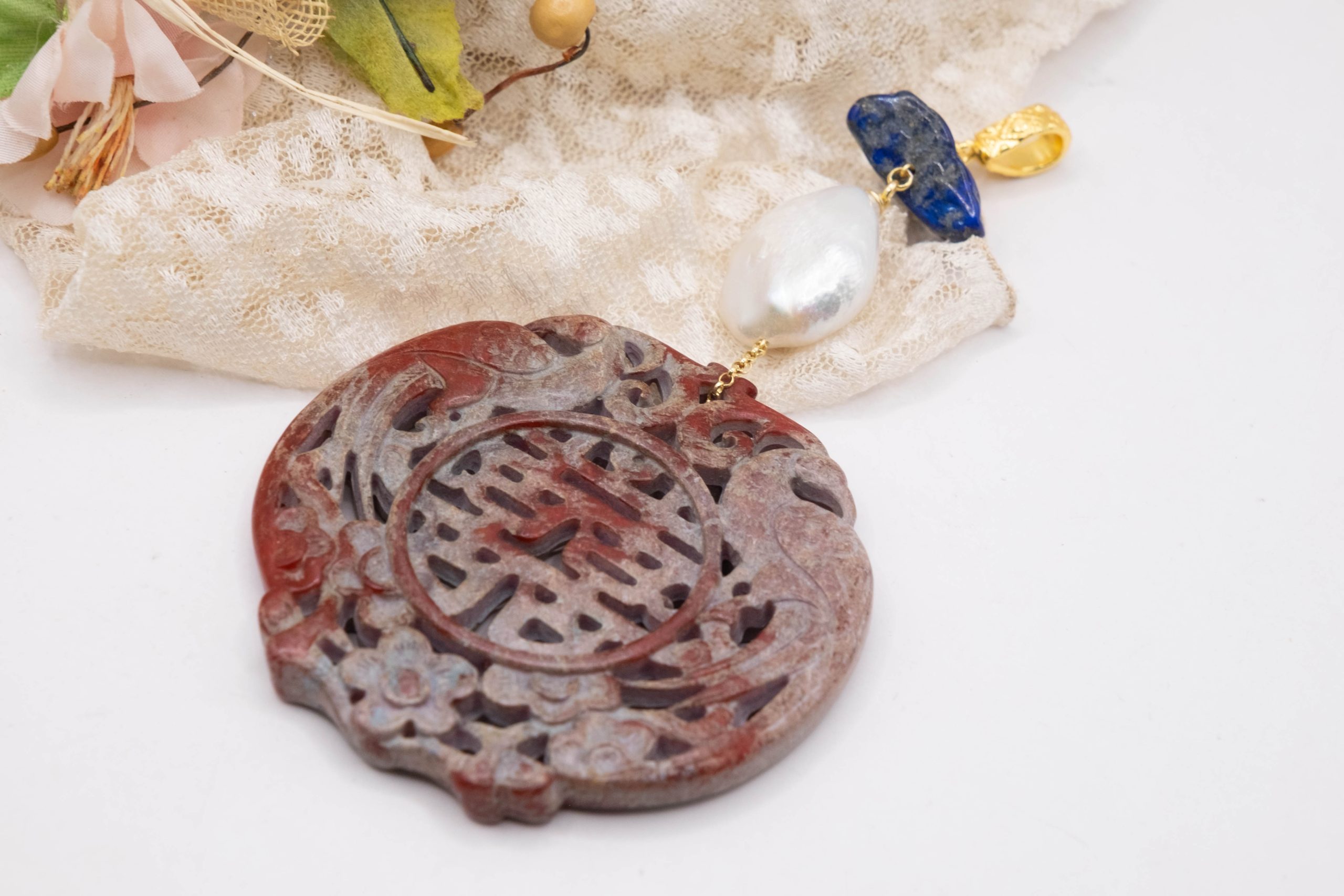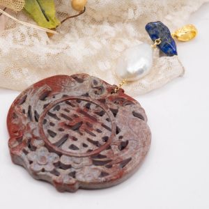 Discover the unique elegance of a handmade jewel, where the real inlaid jade merges with natural hard stones in shades of mottled gray and red ❤️. Each pendant tells a story of style, harmony, and refinement.