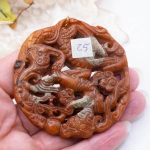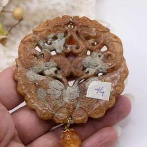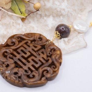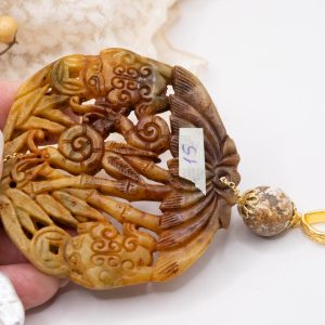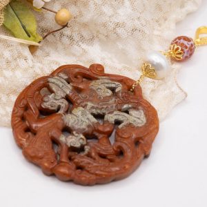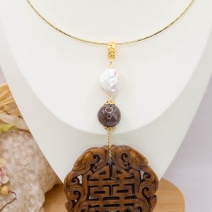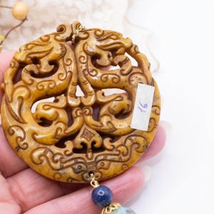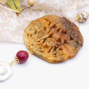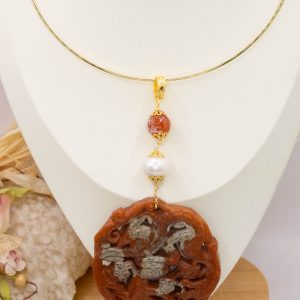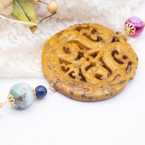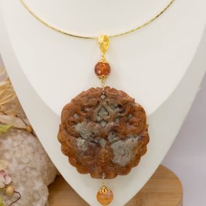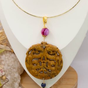 Pendant with genuine hand-inlaid jade and natural hard stones in earth tones in 5 variations