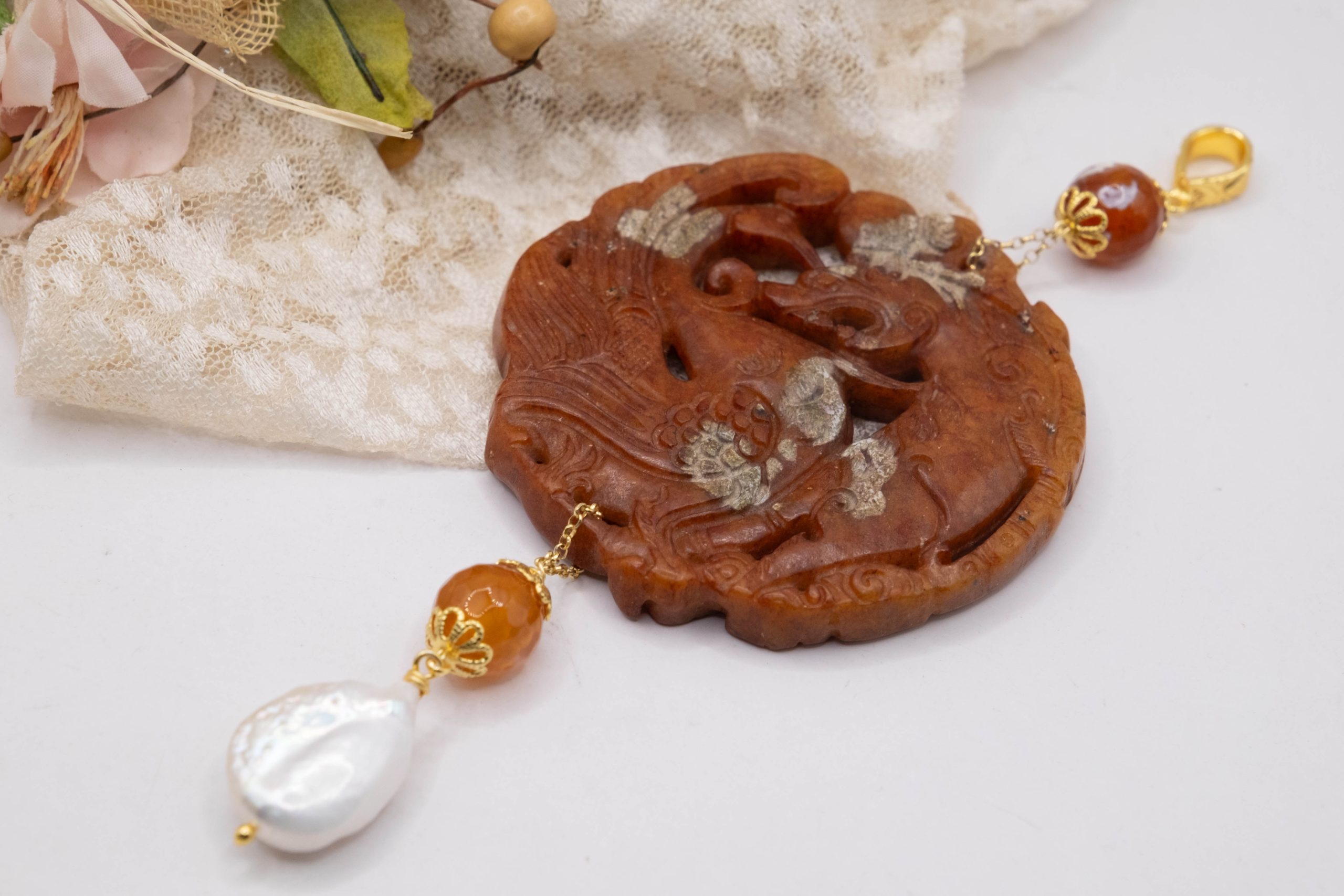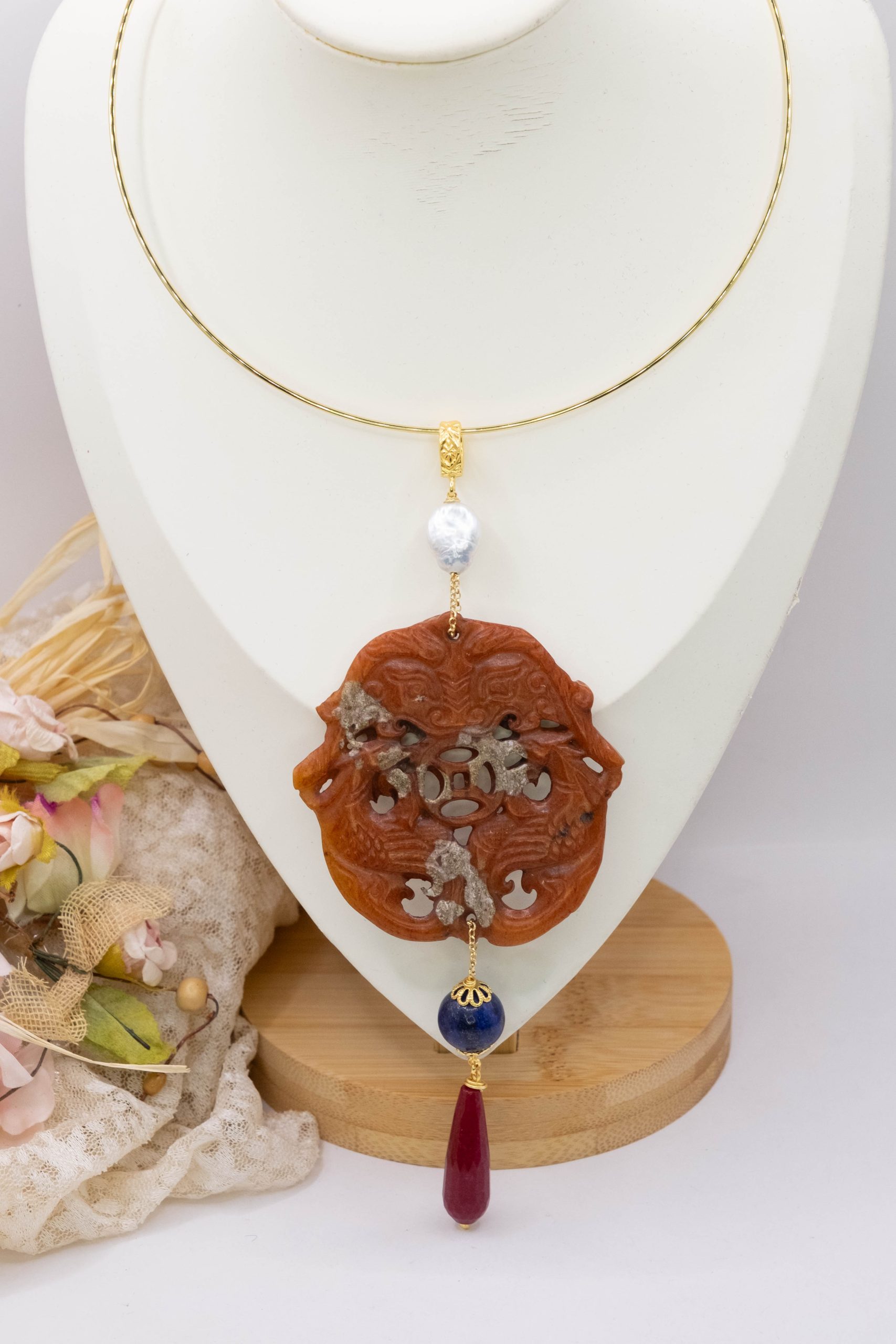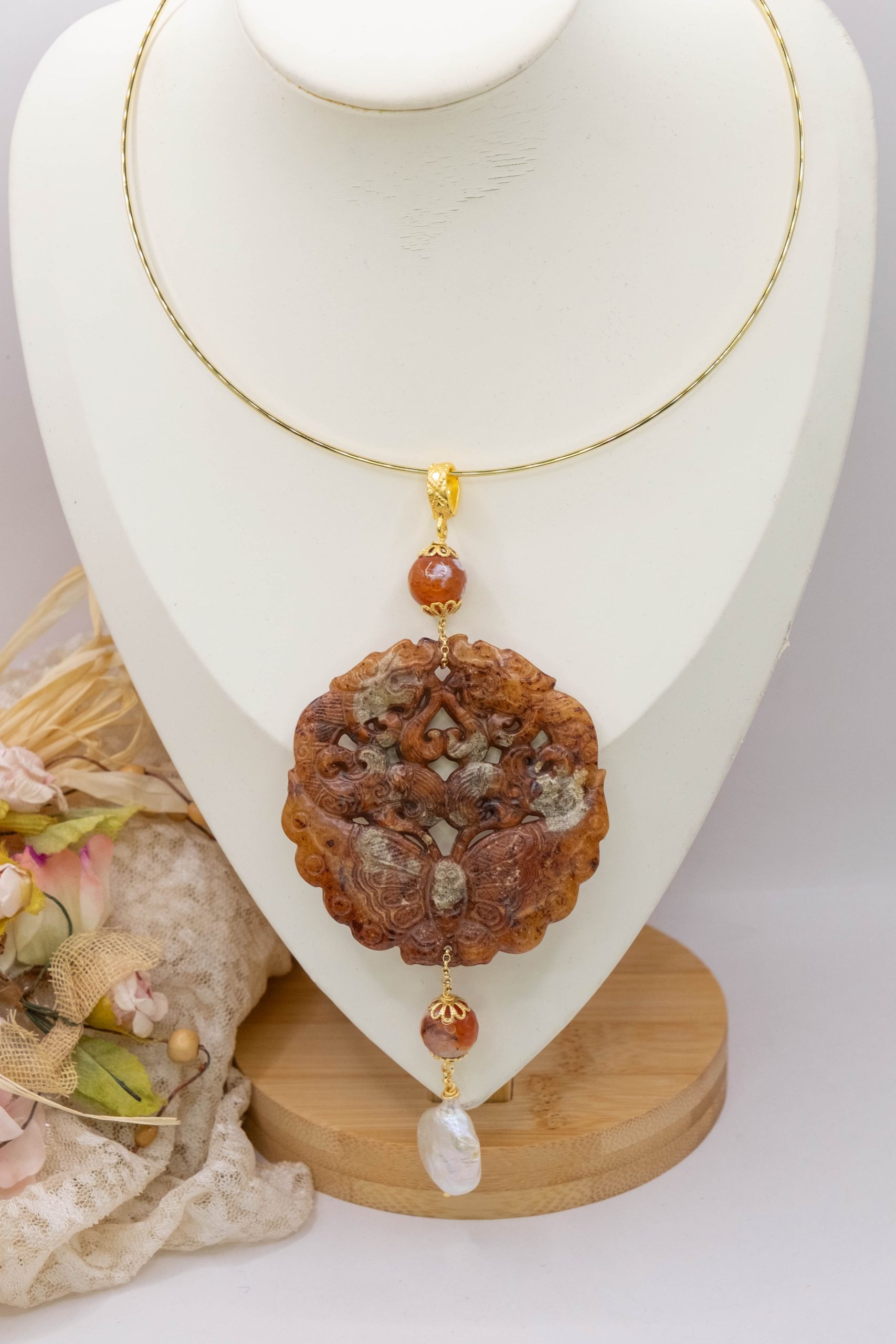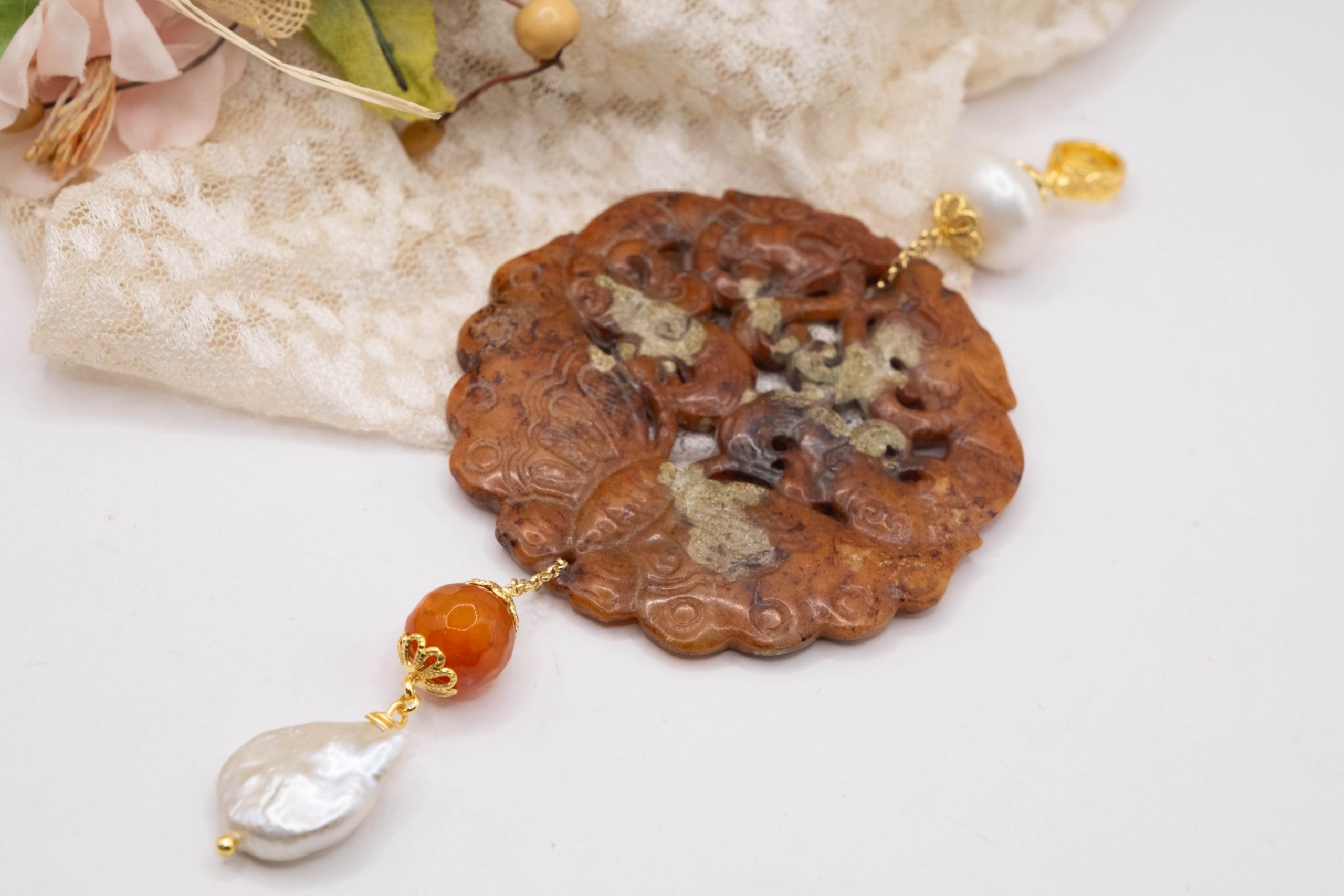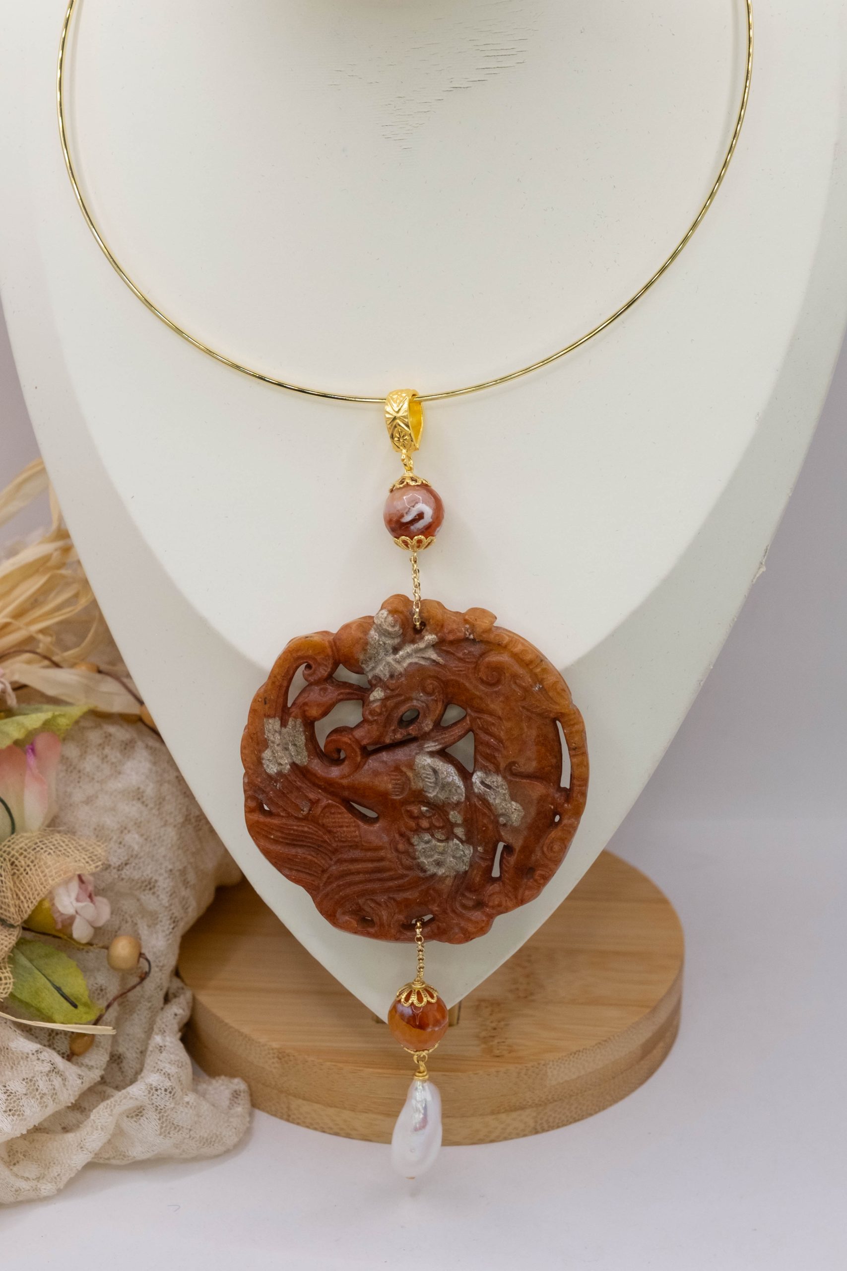 Variant 20 Carnelian and natural pearl 13 x 6.5 cm