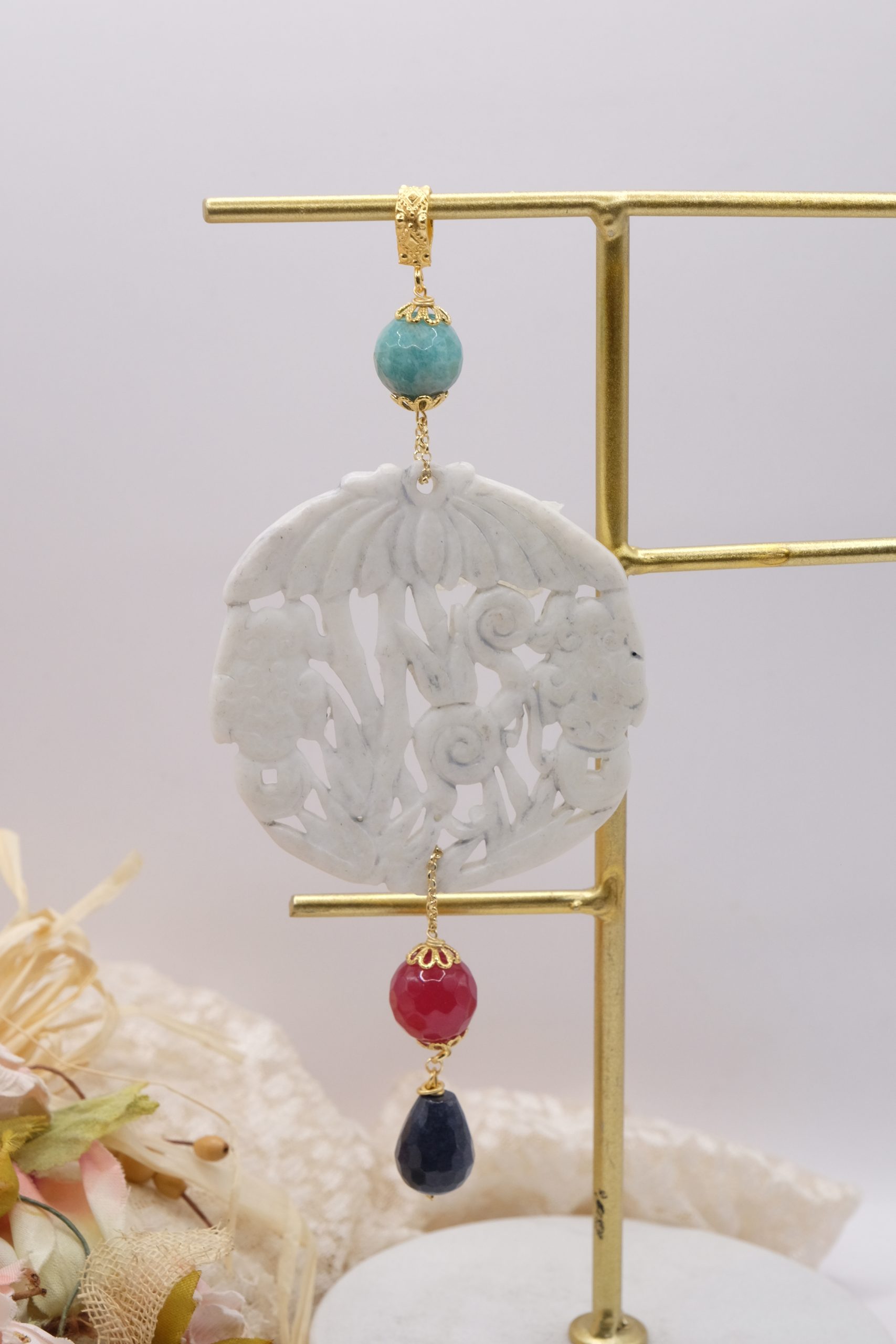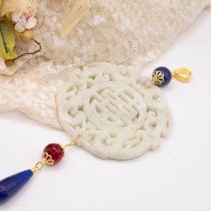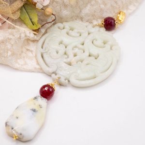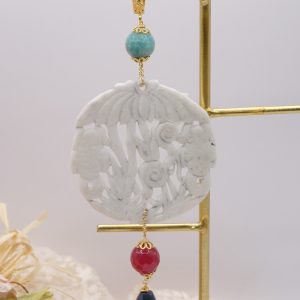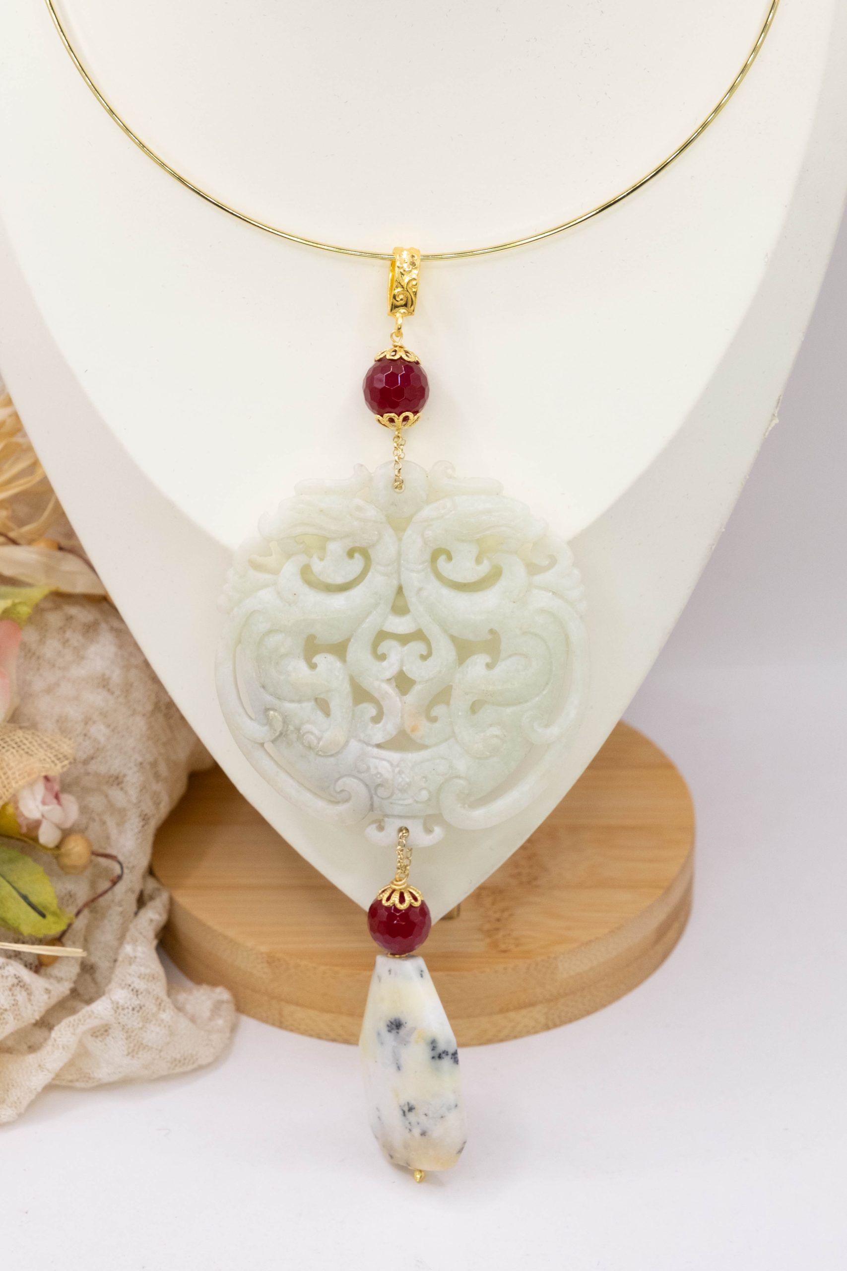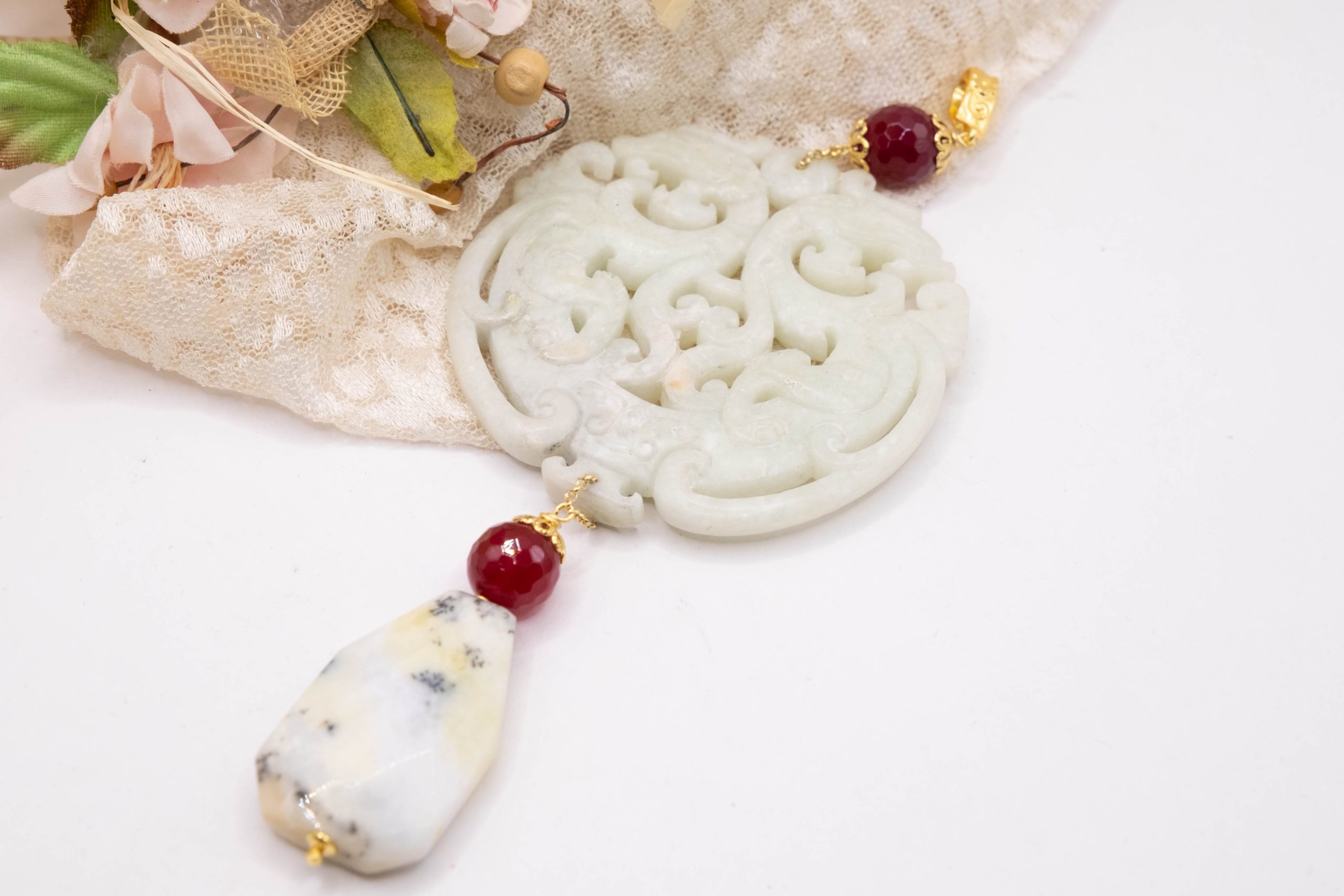 Pendant with genuine hand-inlaid jade and natural hard stones in shades of white in 5 variations