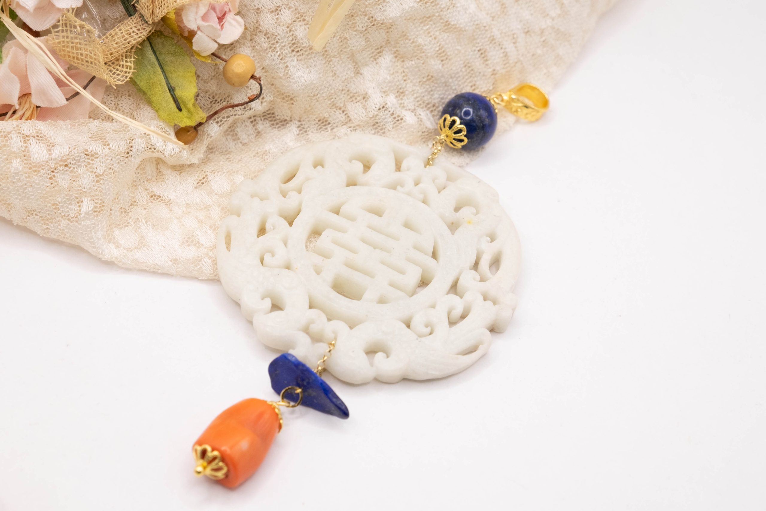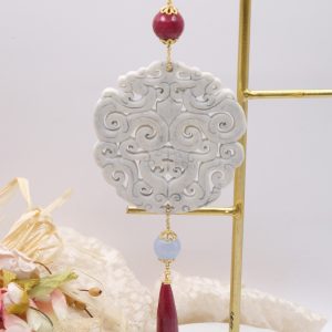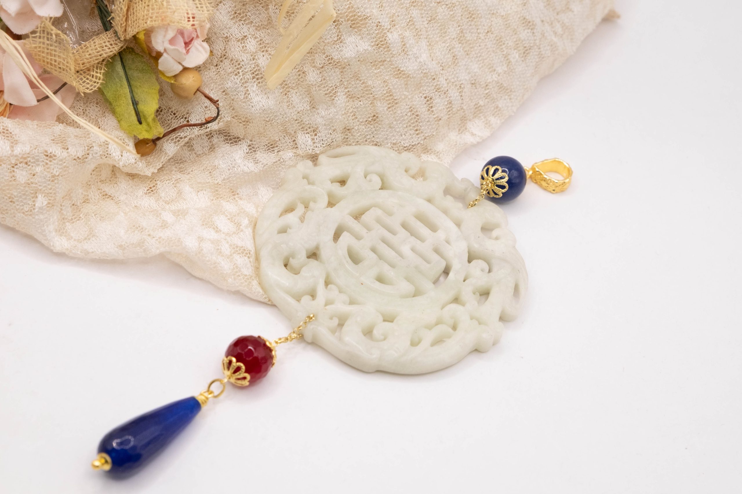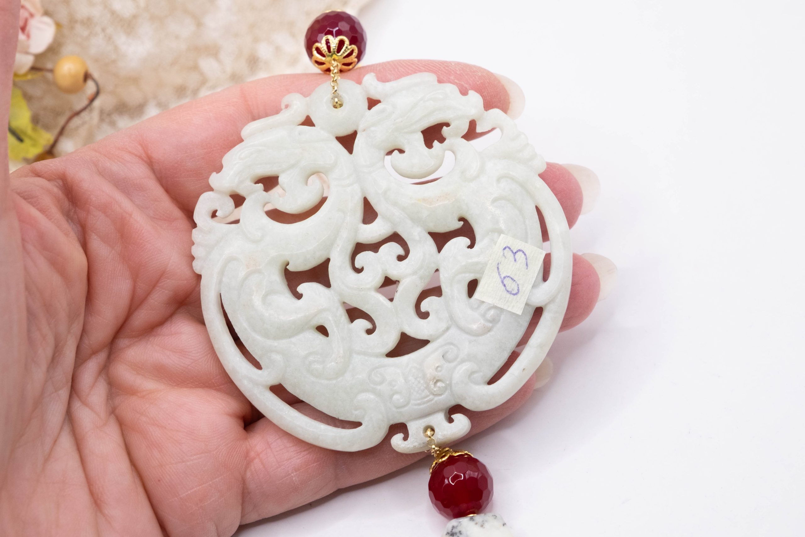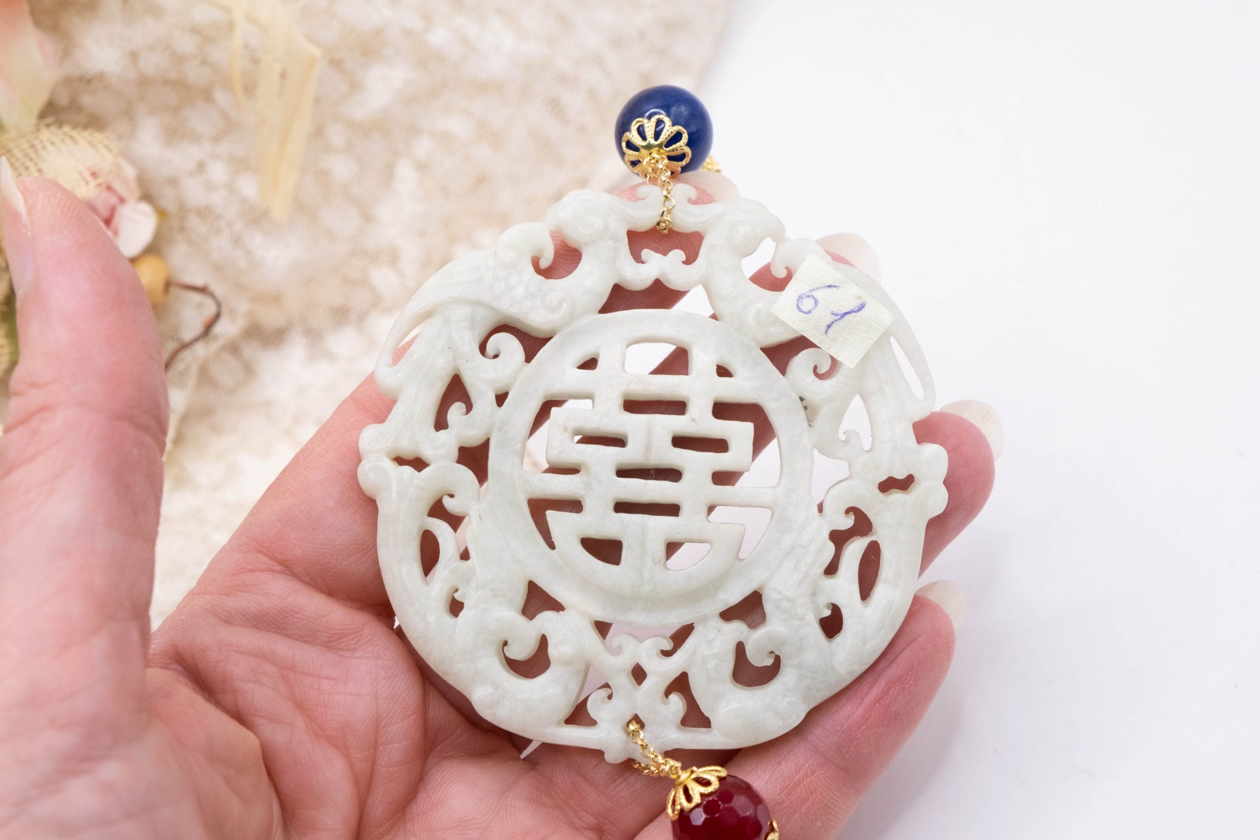 Pendant with genuine hand-inlaid jade and natural hard stones in shades of white in 5 variations