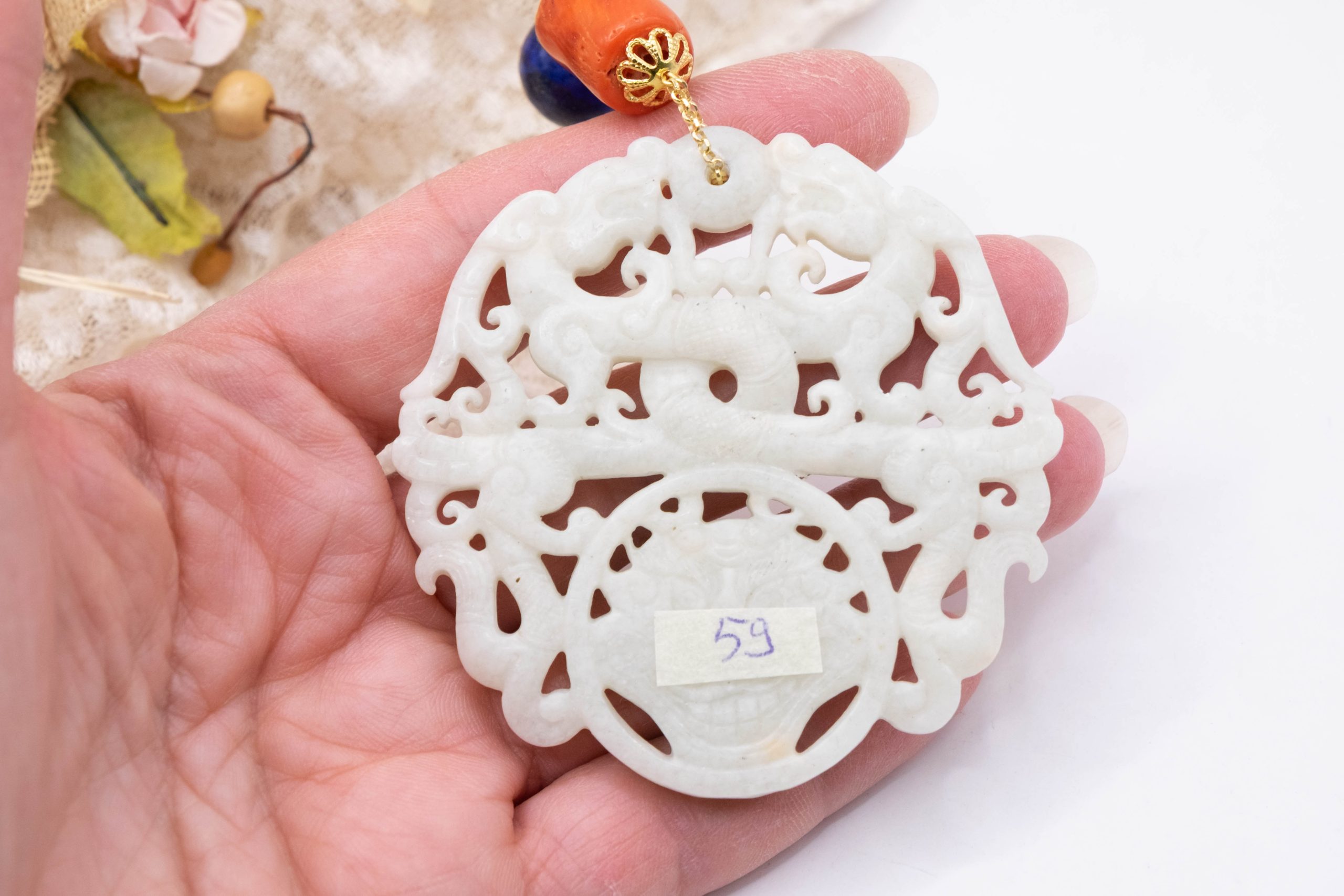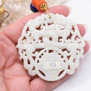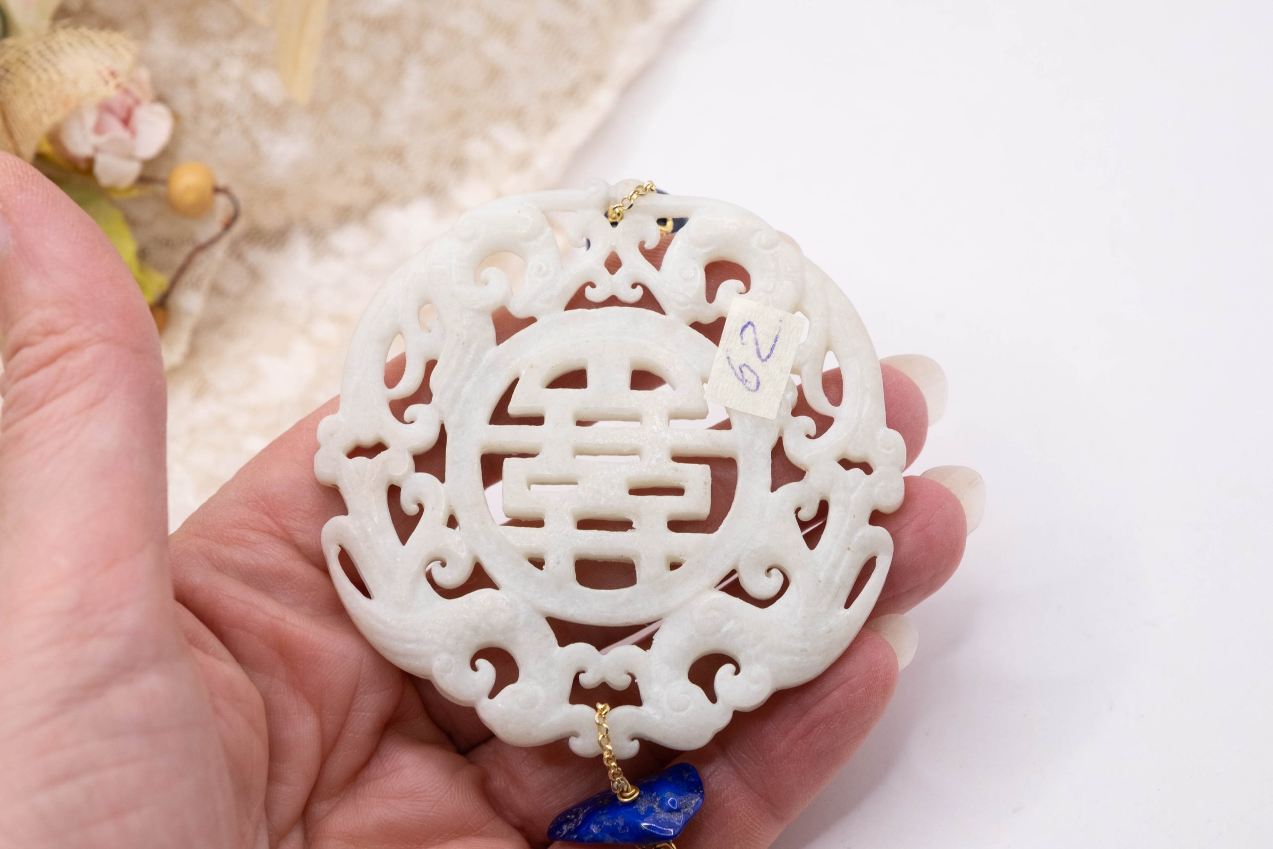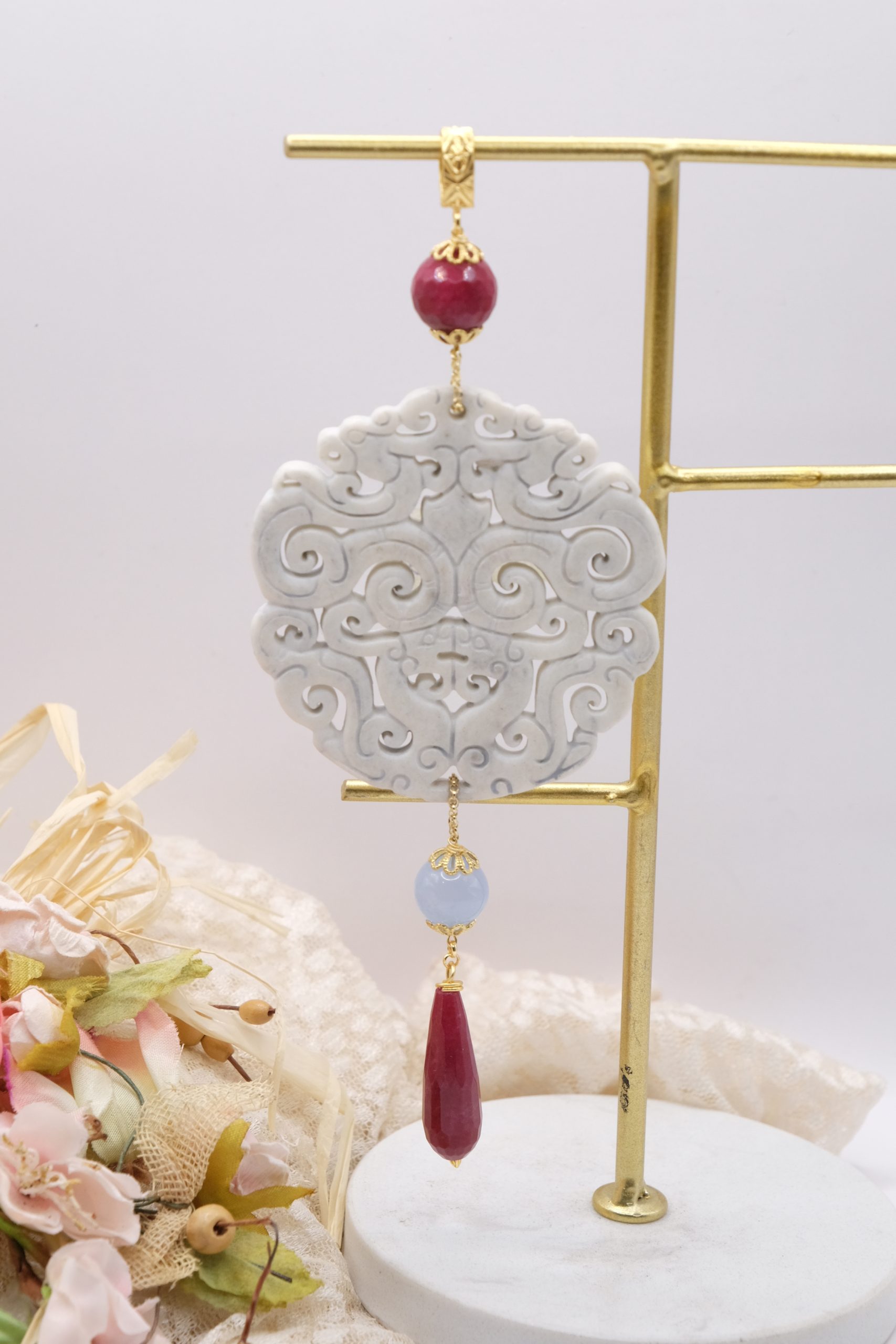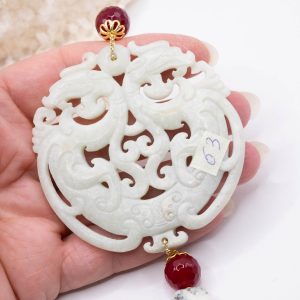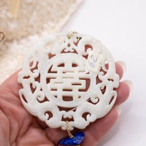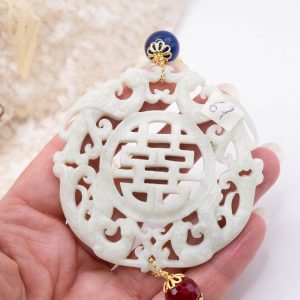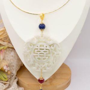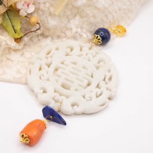Pendant with genuine hand-inlaid jade and natural hard stones in shades of white in 5 variations