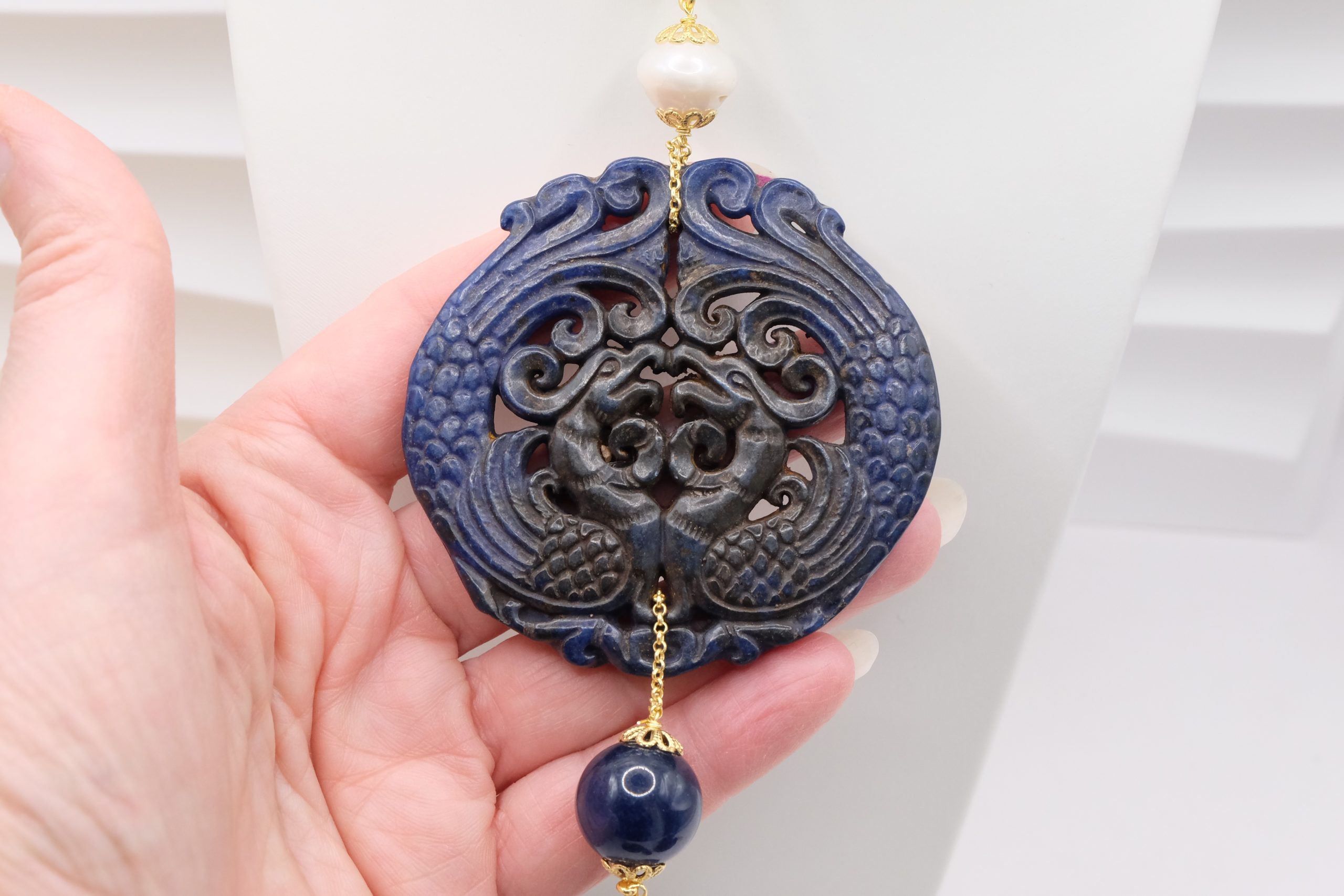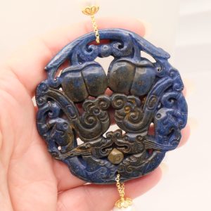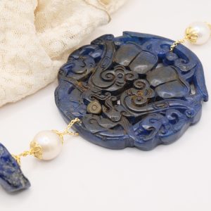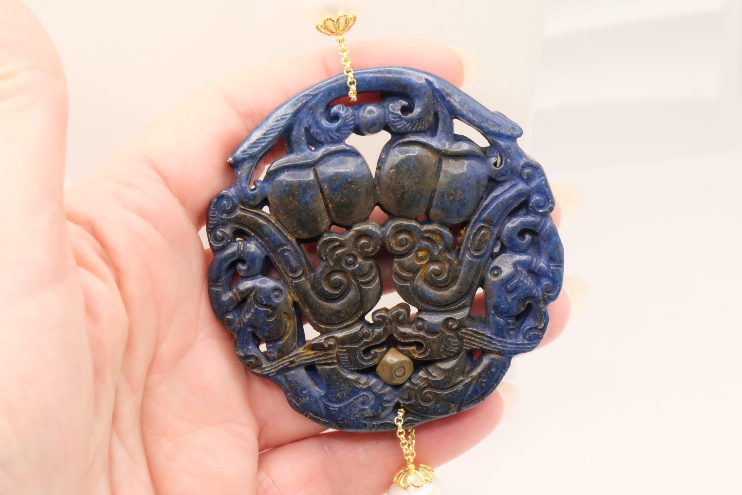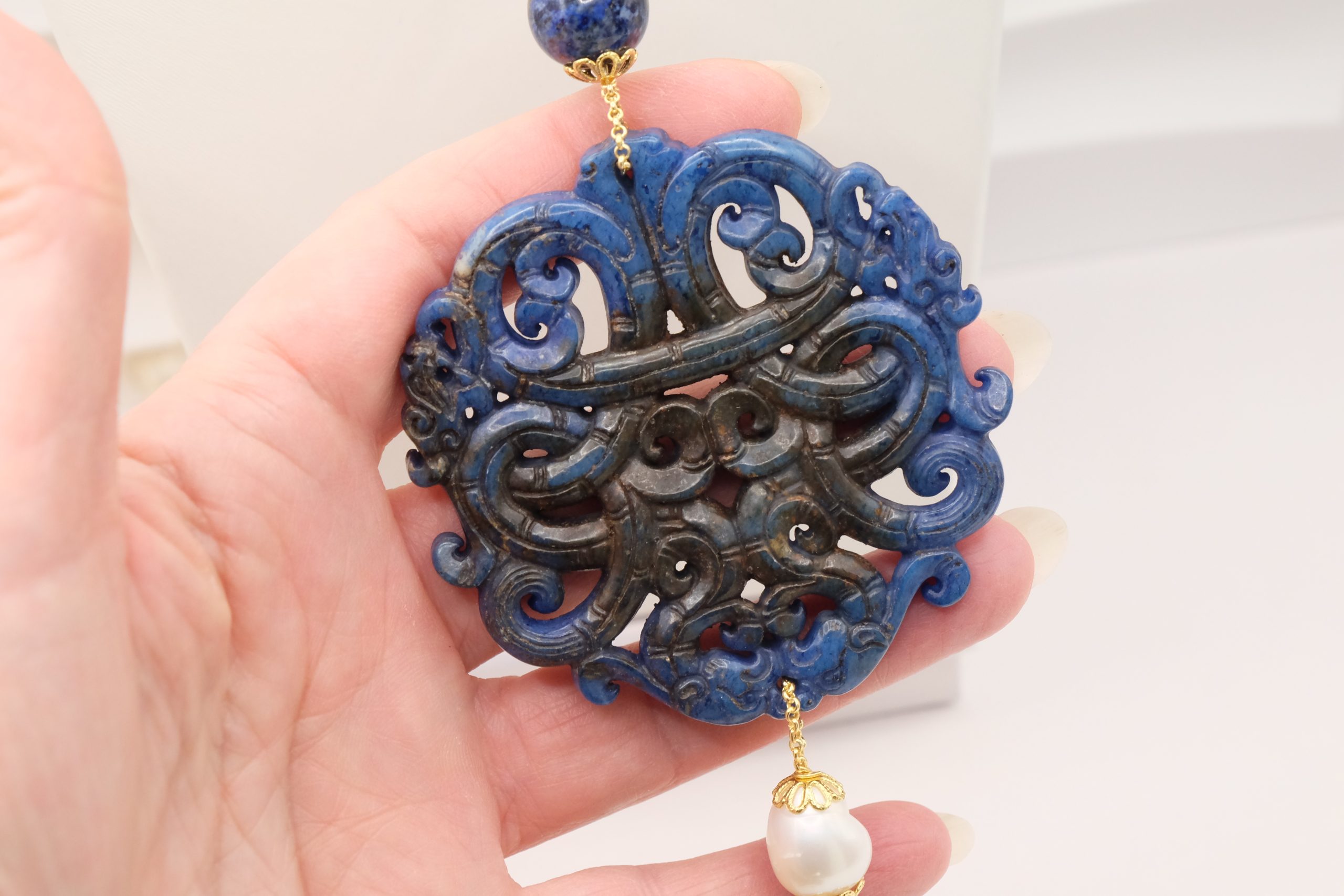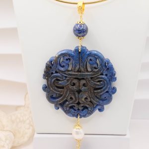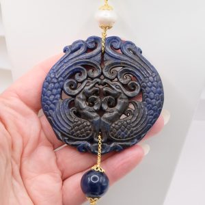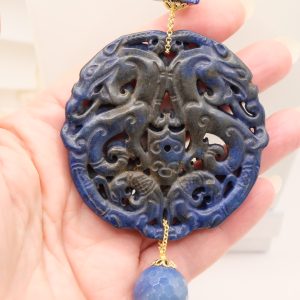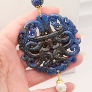 Pendant featuring a Good Luck Mandala in refined and rare shades of black and blue, crafted from genuine, high-quality hand-inlaid jade and carefully selected natural stones. Each variant combines lapis lazuli, pearls, and other gemstones to create a piece rich in personality and meaning, perfect for enhancing everyday looks or special occasions.