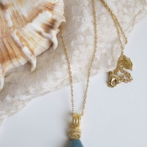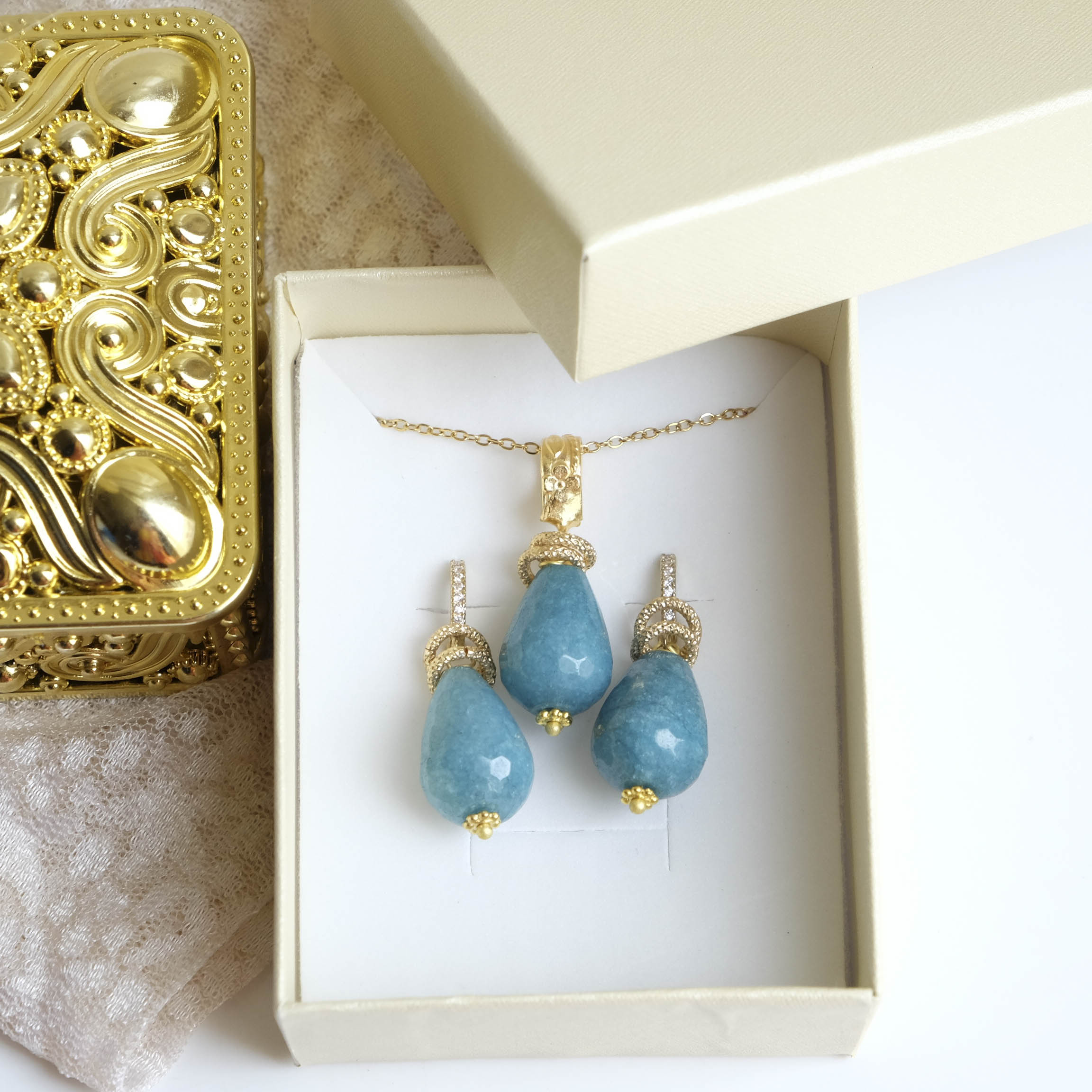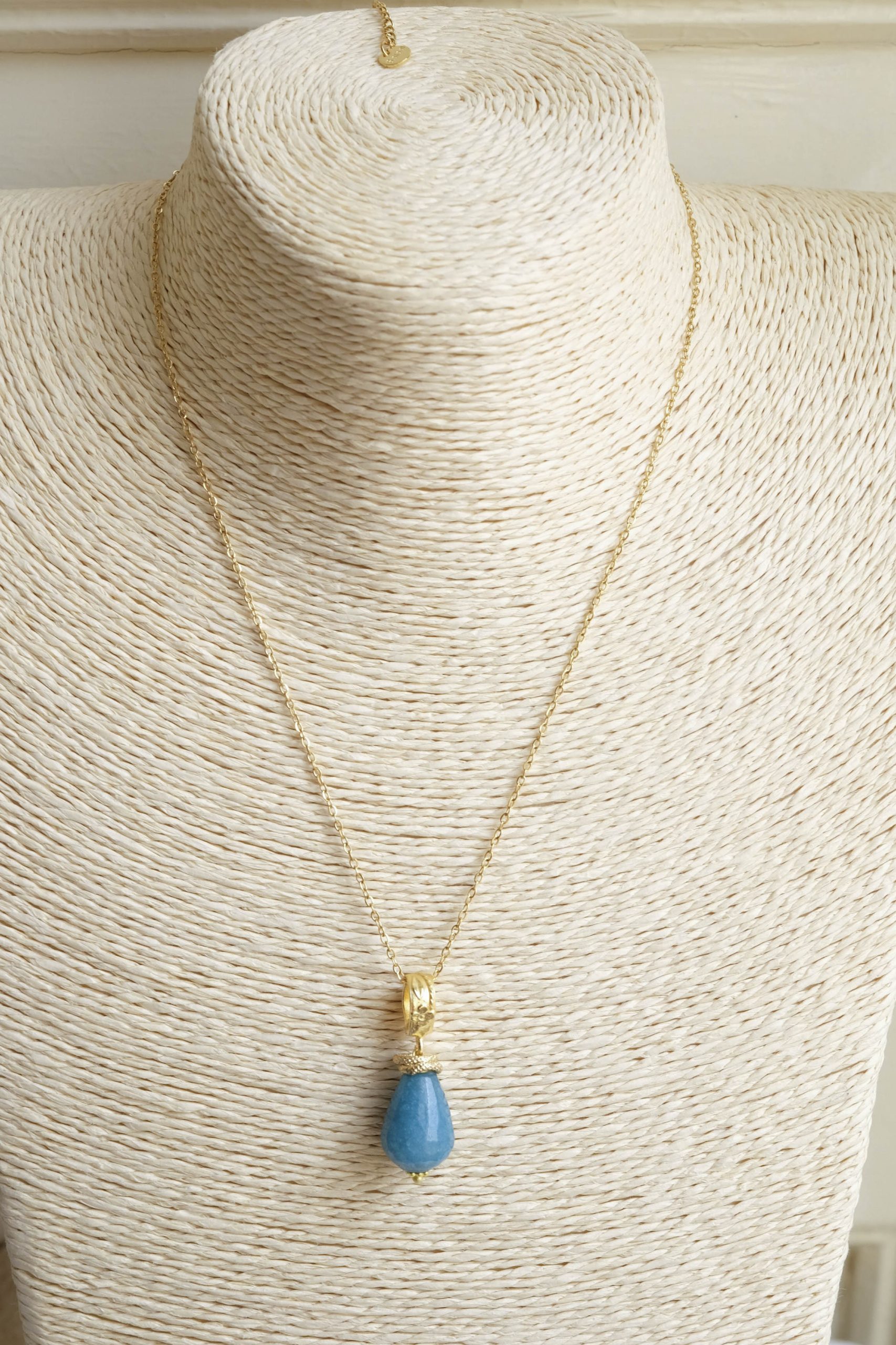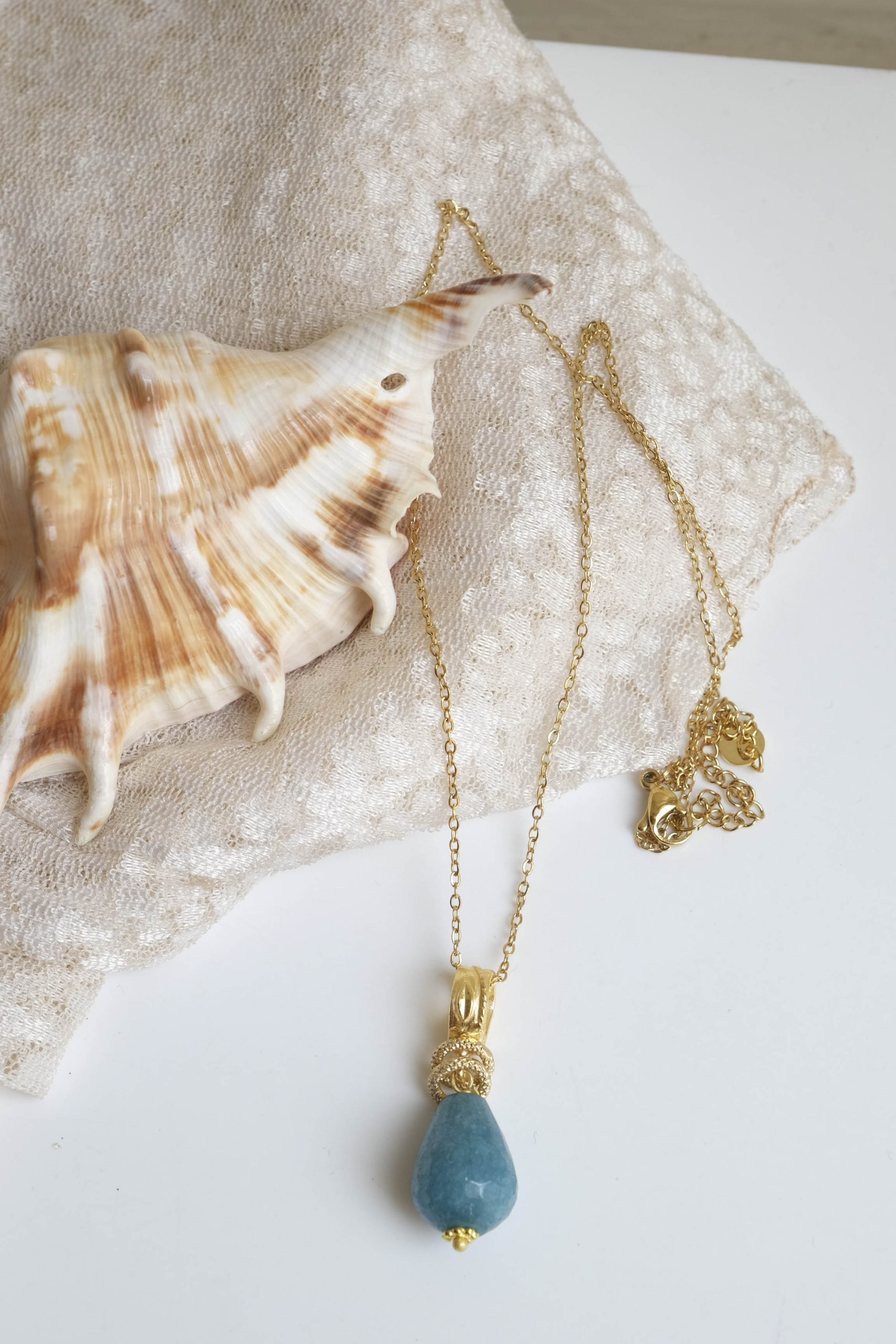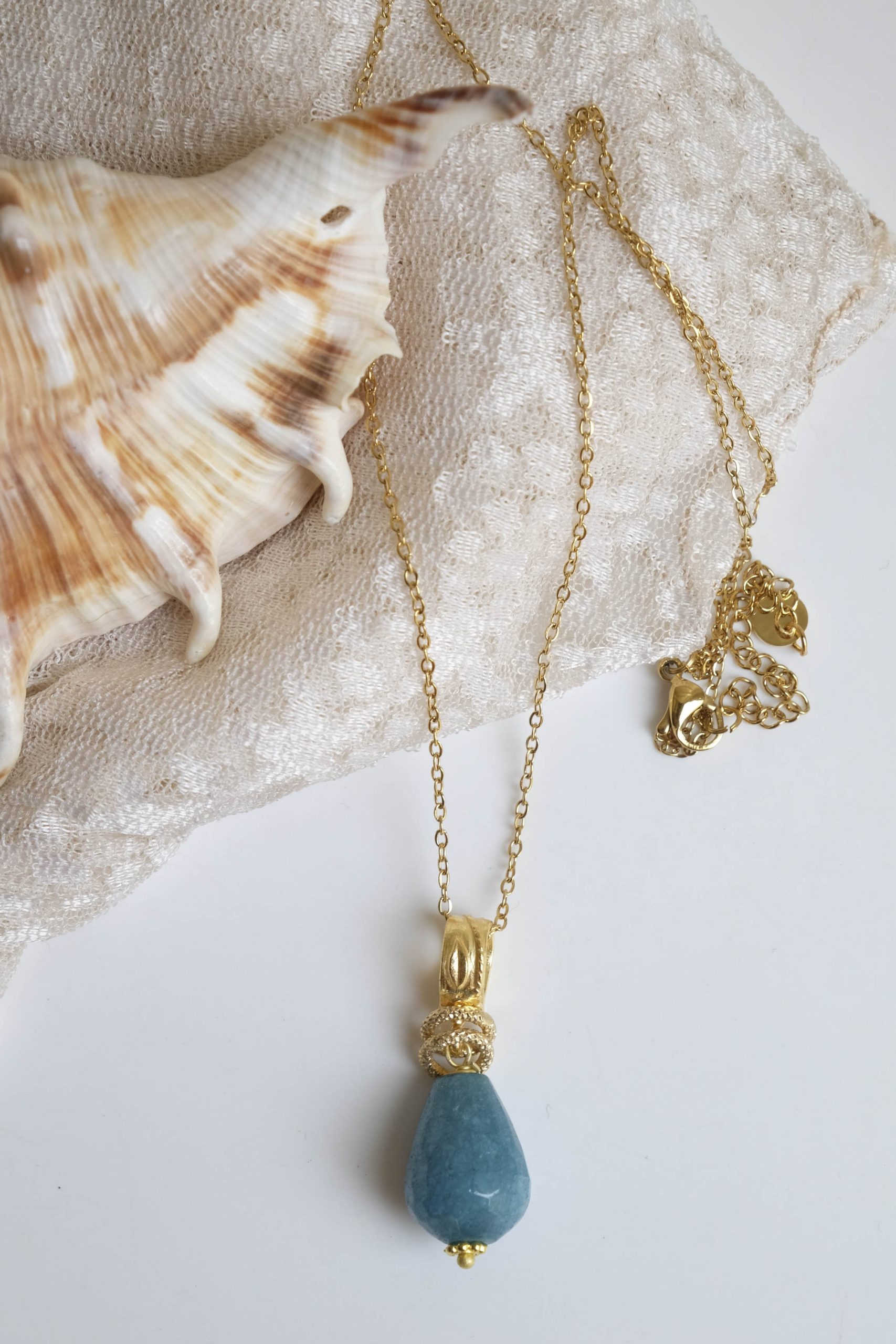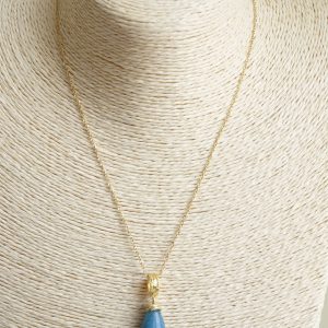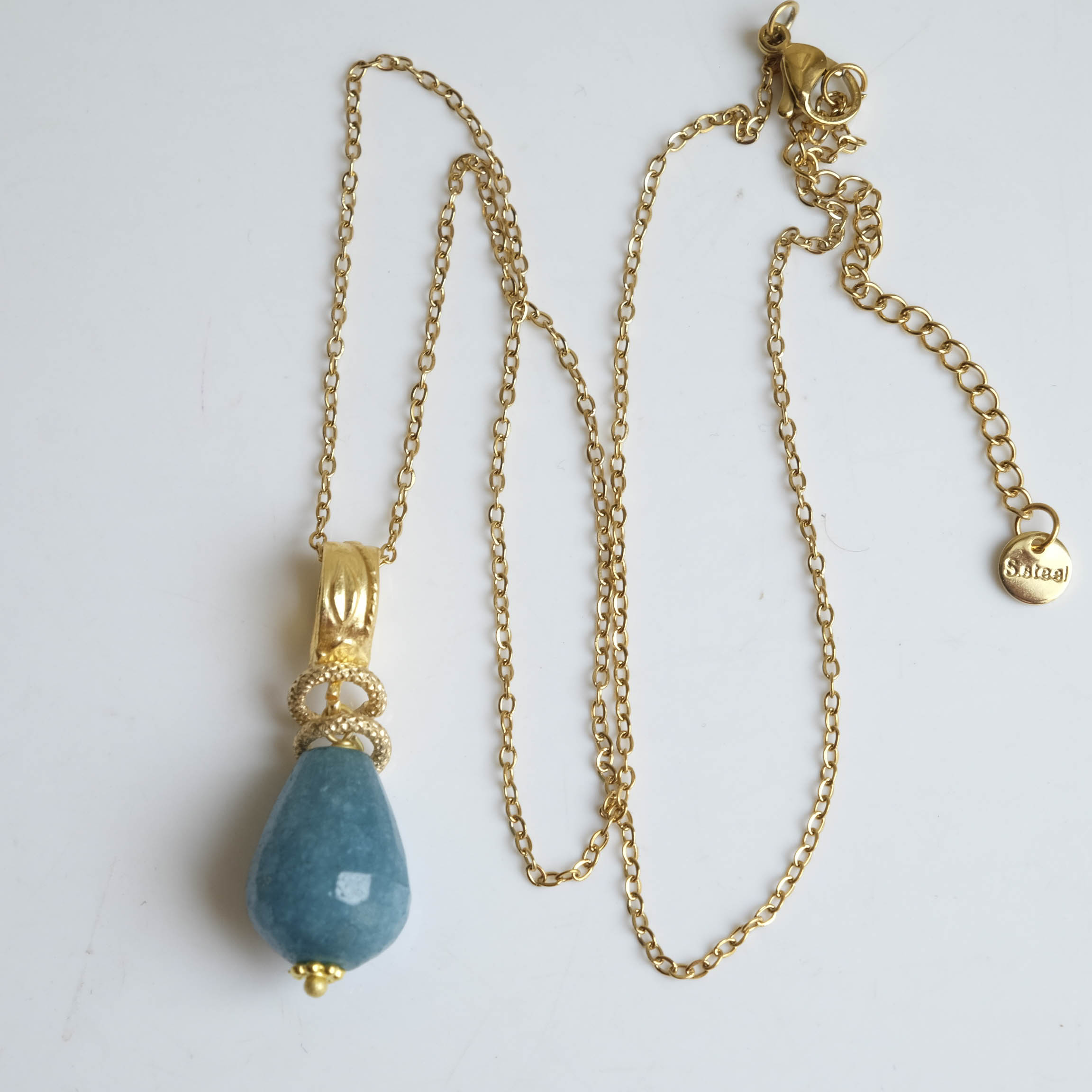 Steel necklace with 18 x 13 mm cobalt jade briolet drop pendant