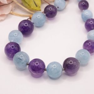 Precious Aquamarine and Amethyst Necklace TQ Silver