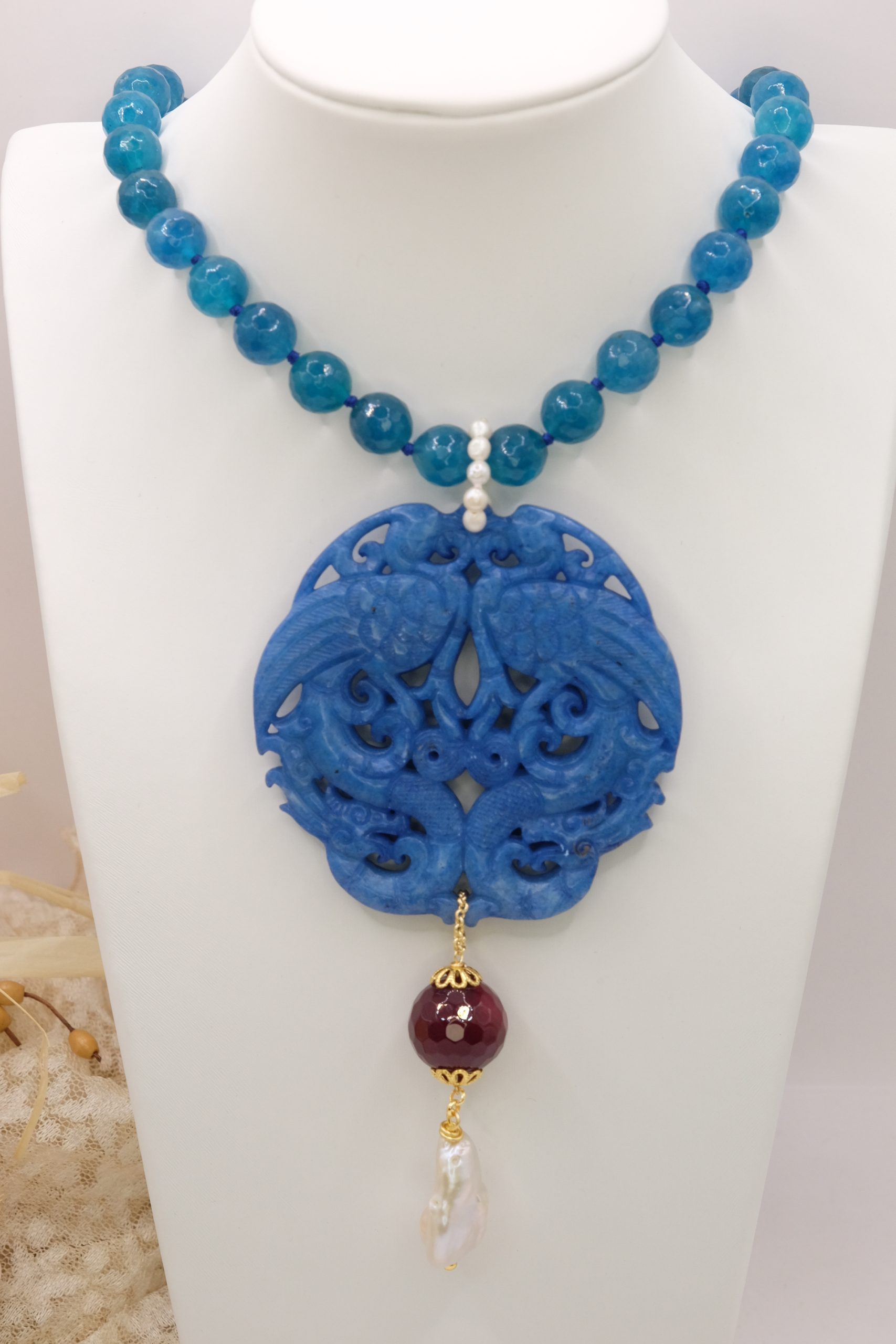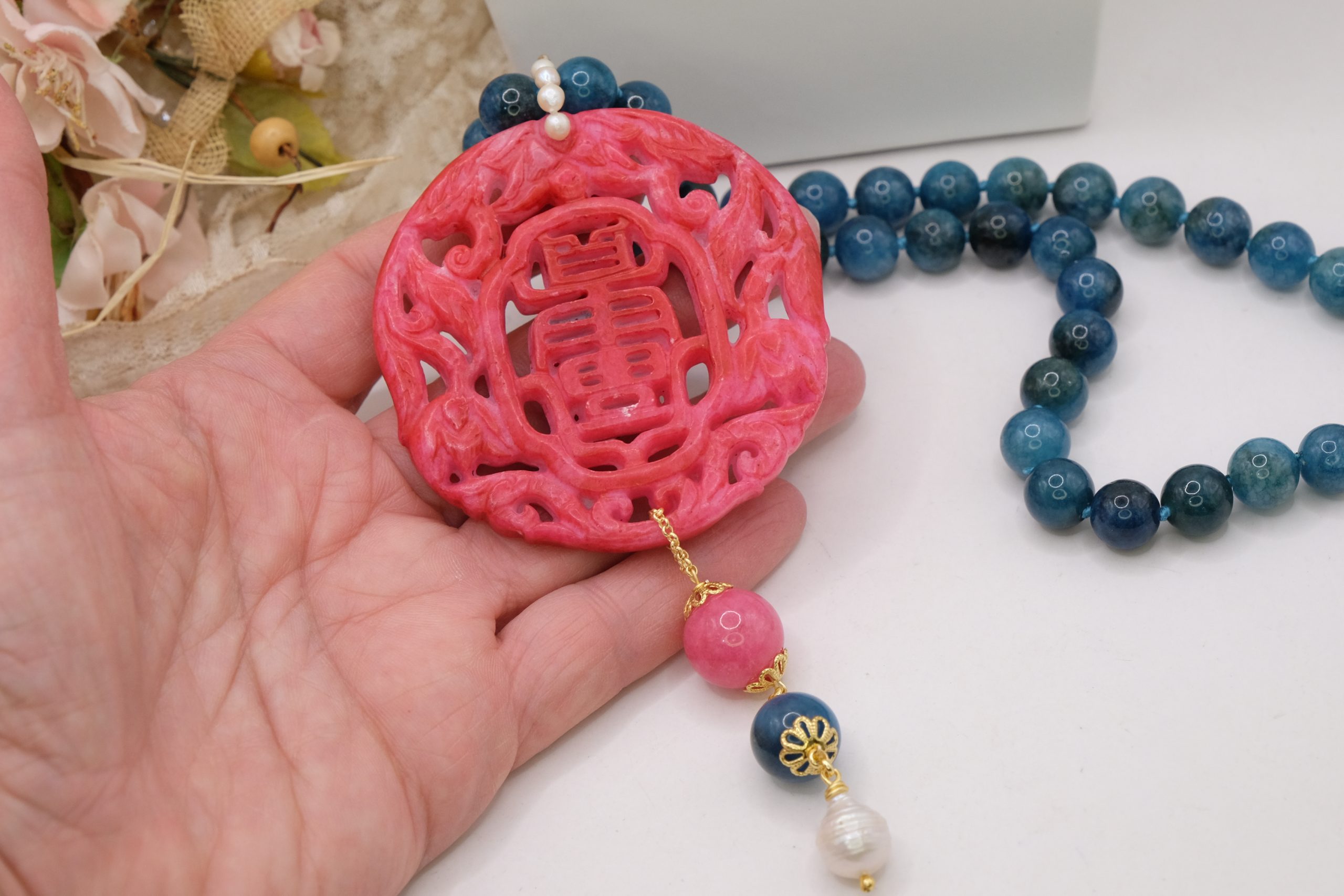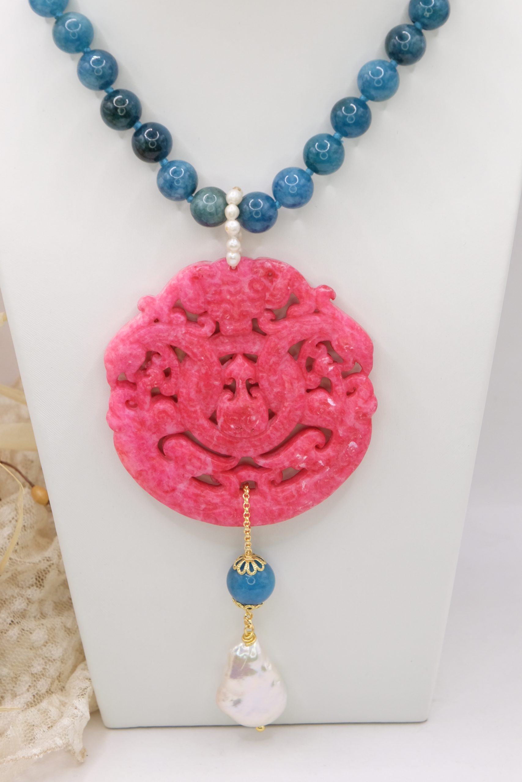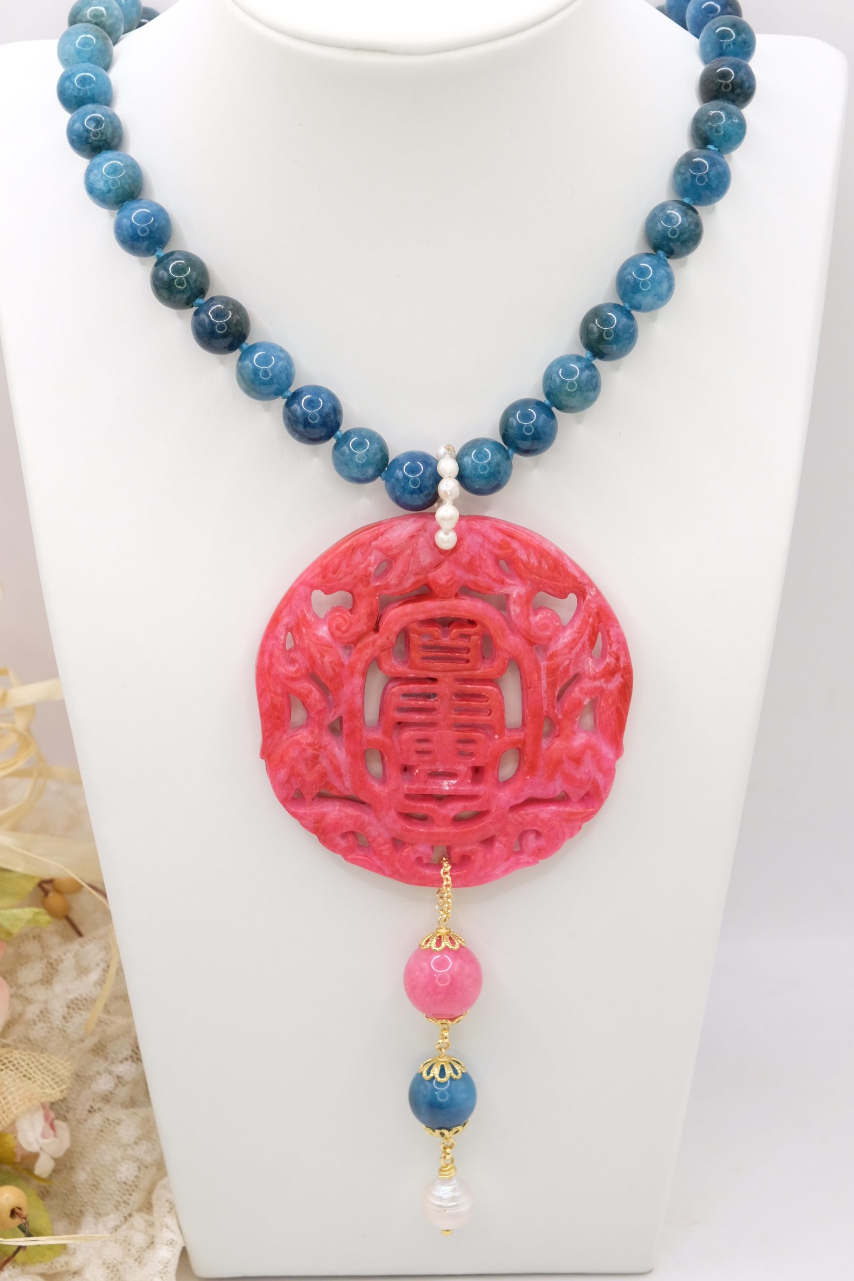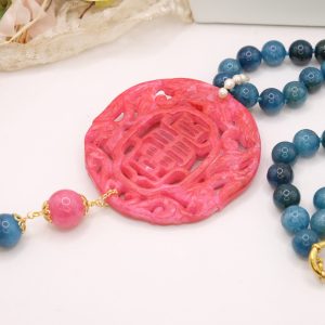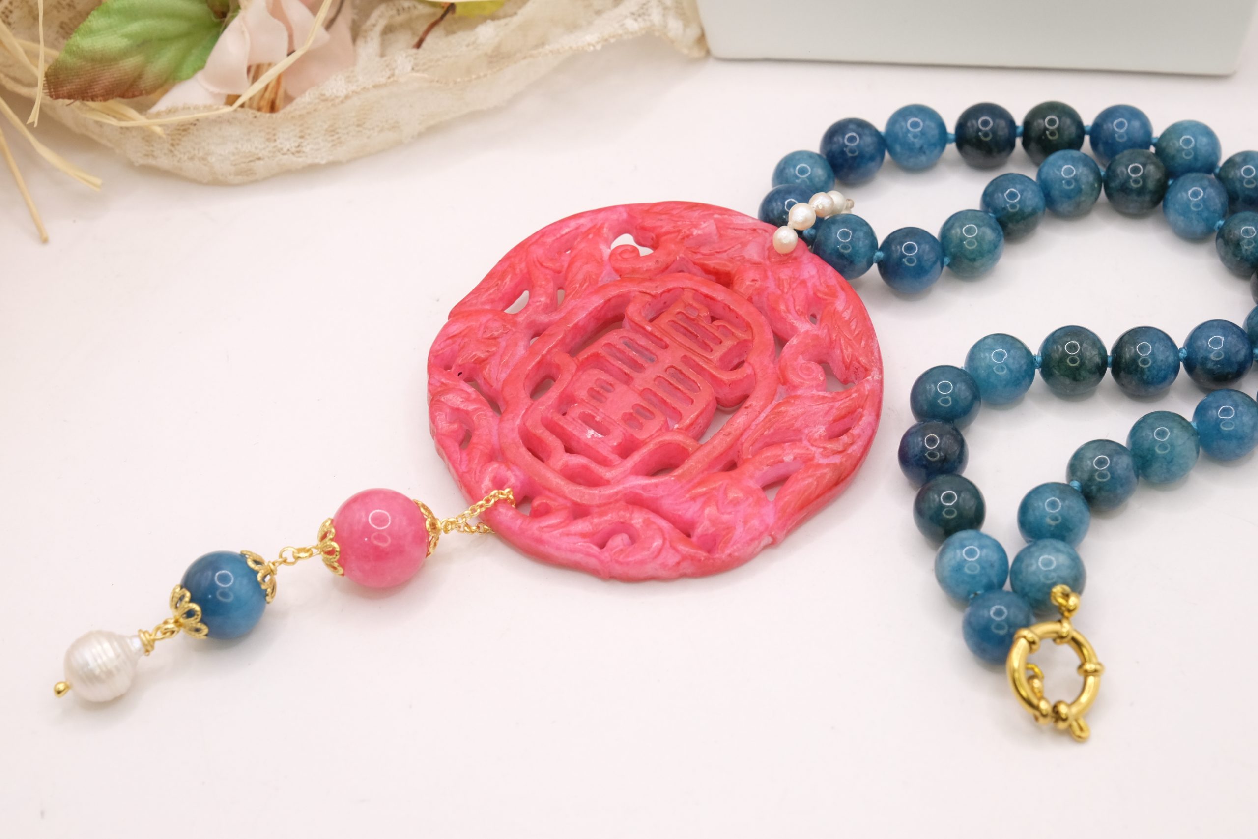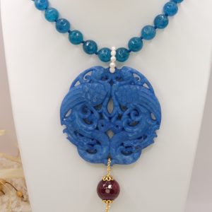 Apatite Necklace with Natural Pearls and Jade Mandala 3 Variations