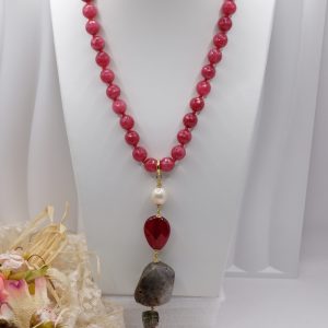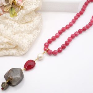 Handmade Necklace Pendant Aventurine Jade Burgundy Pearl