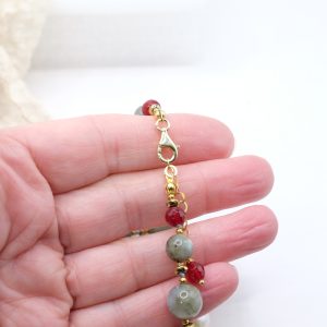 Handmade Labradorite Necklace, Burgundy Jade, Hematite Pearls, 925 Silver