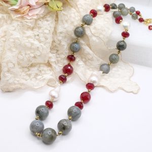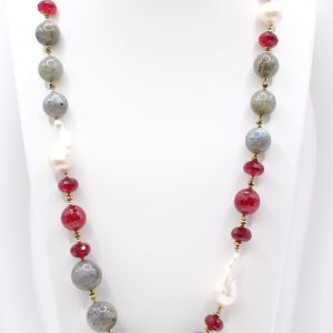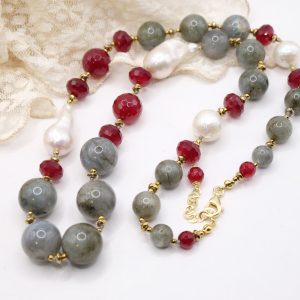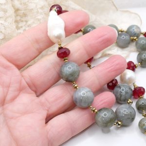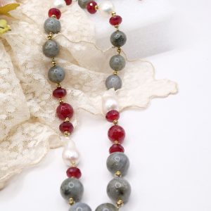 Material: labradorite, burgundy jade, baroque pearls and hematite