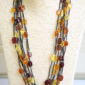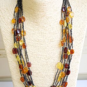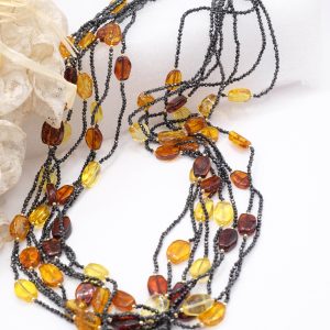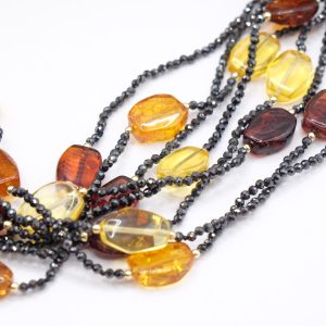 Handcrafted Multi-Strand Necklace with Black Zircons and Baltic Amber
