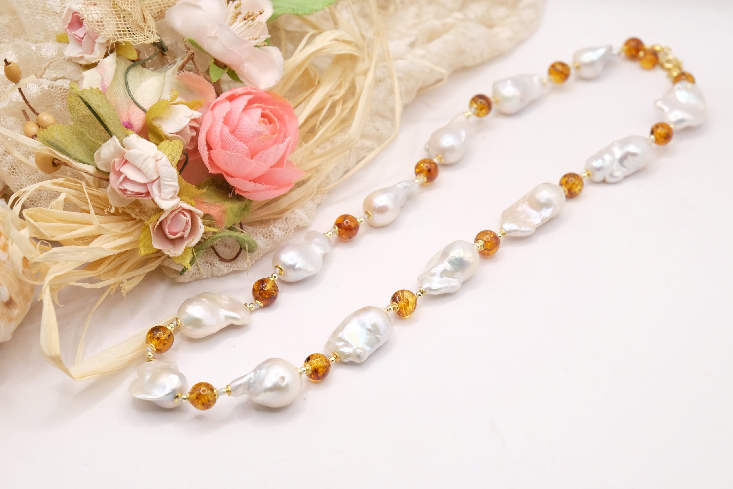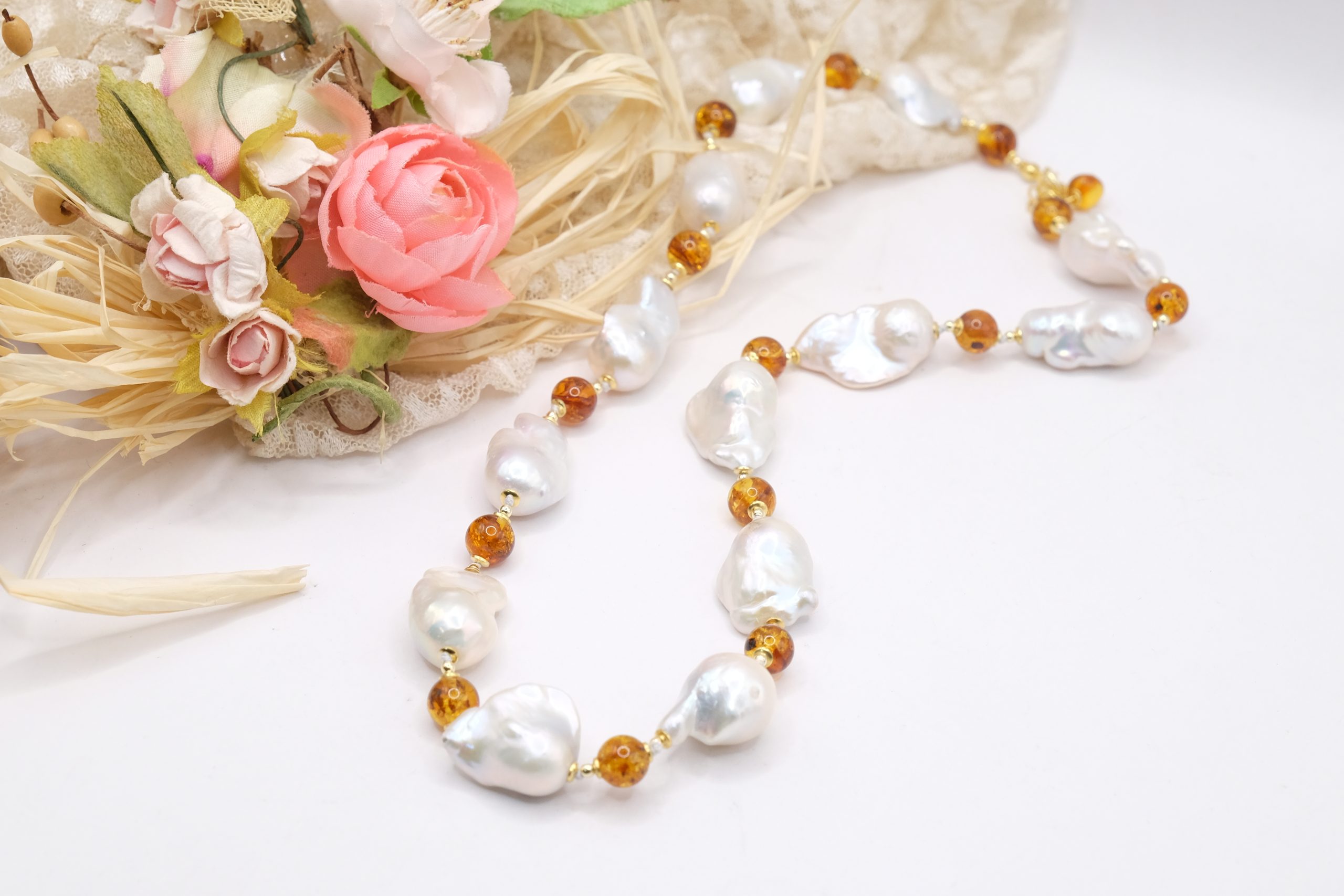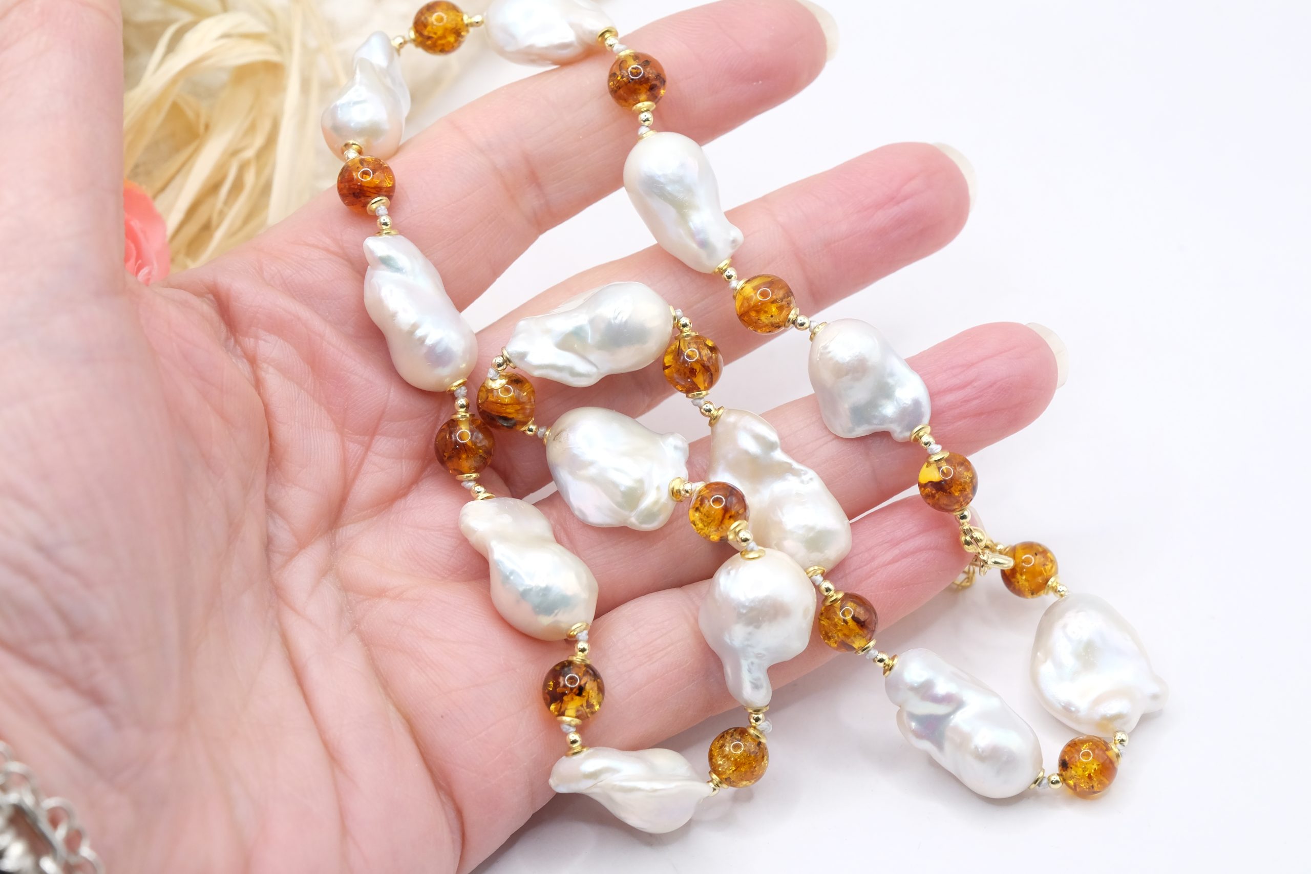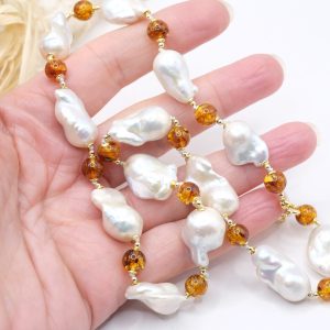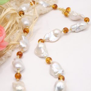 Material: Natural Pearls, Baltic Amber, 925 Silver