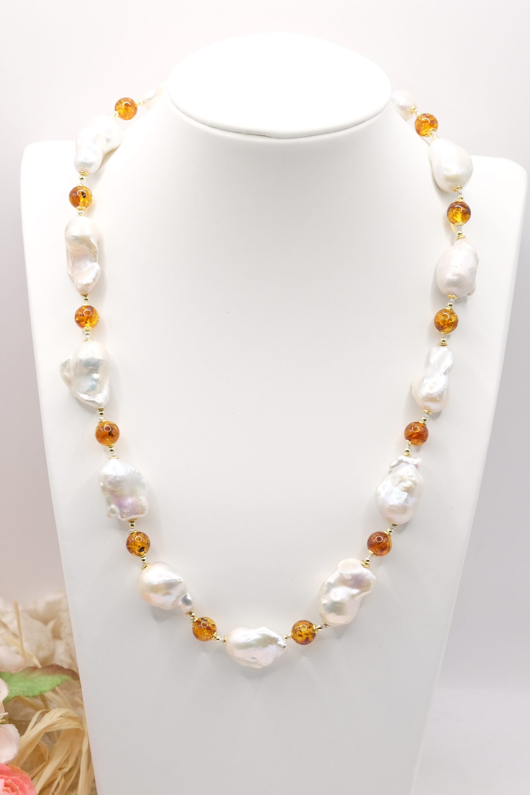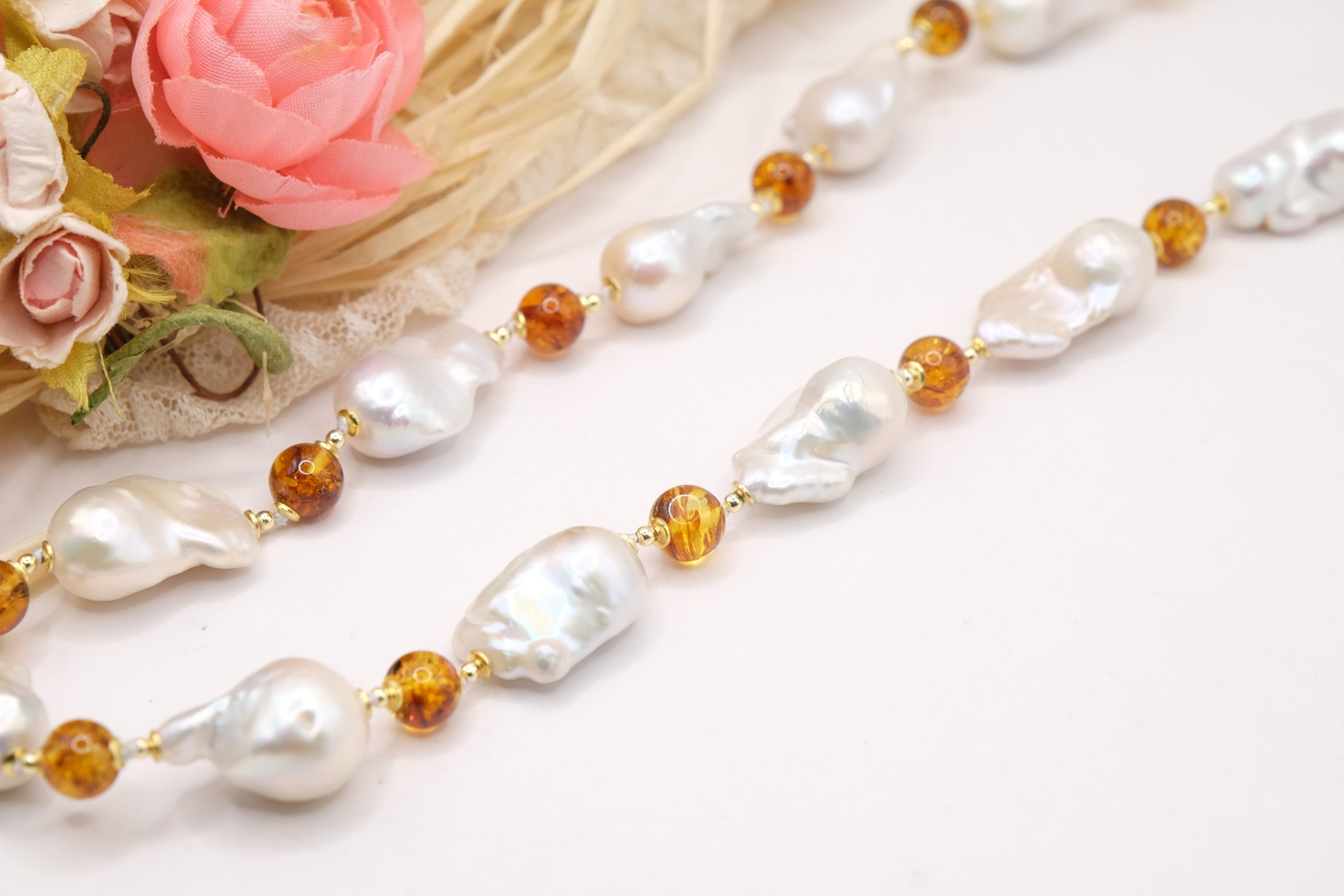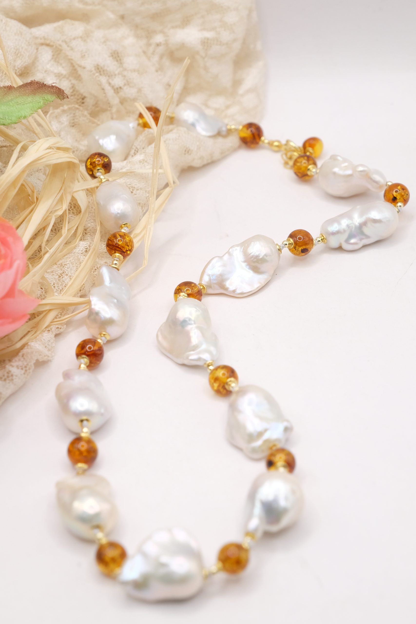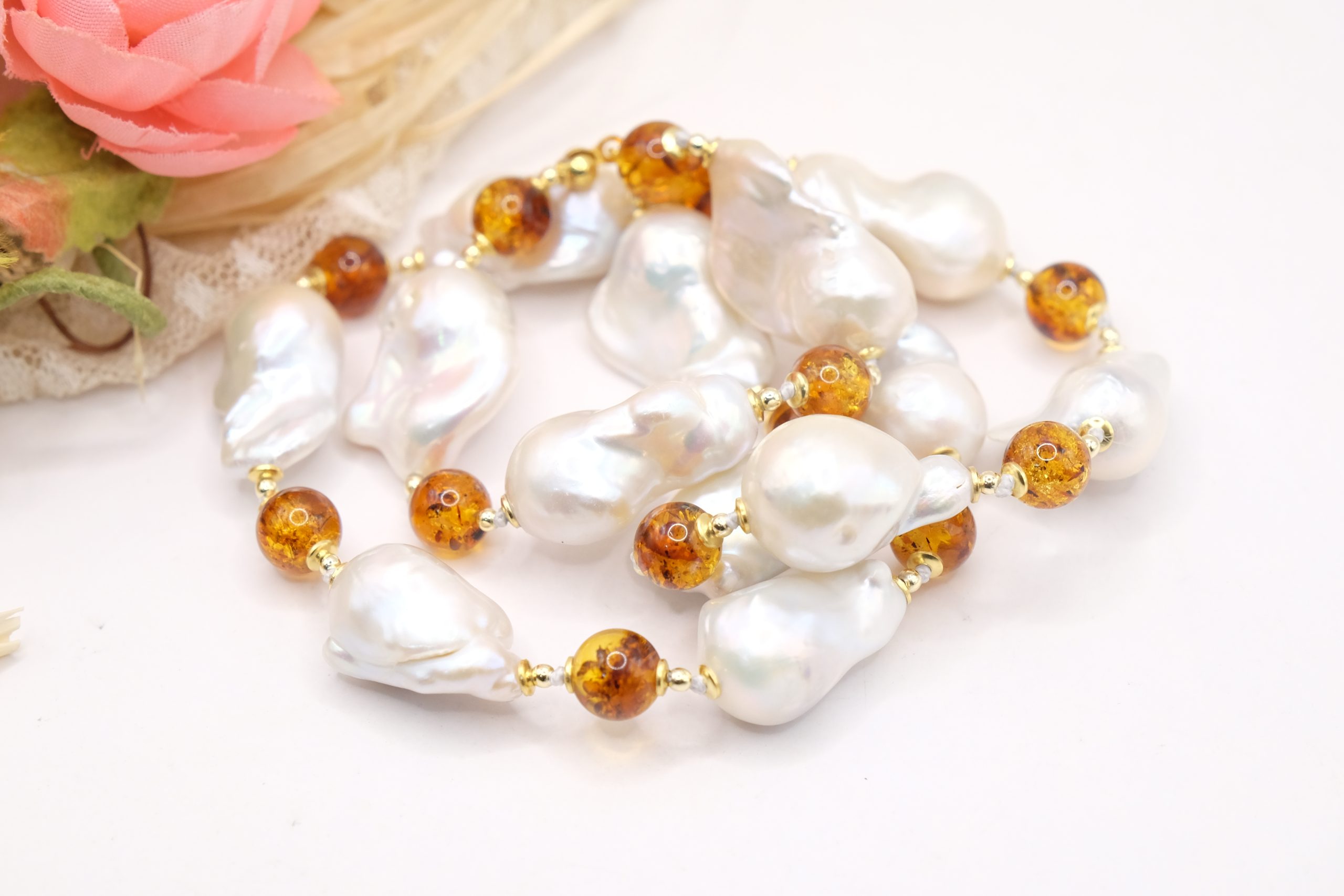 Material: Natural Pearls, Baltic Amber, 925 Silver