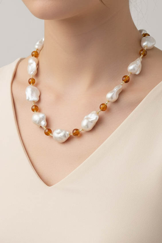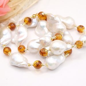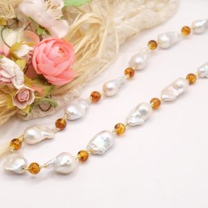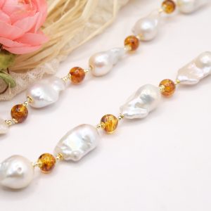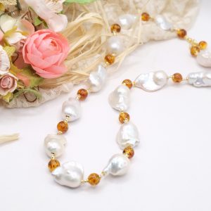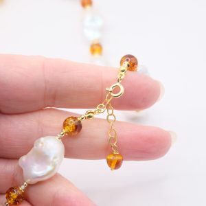 Handmade Amber Drop Pearl Necklace in 925 Silver