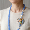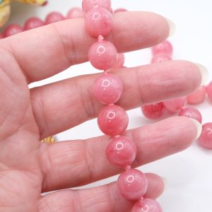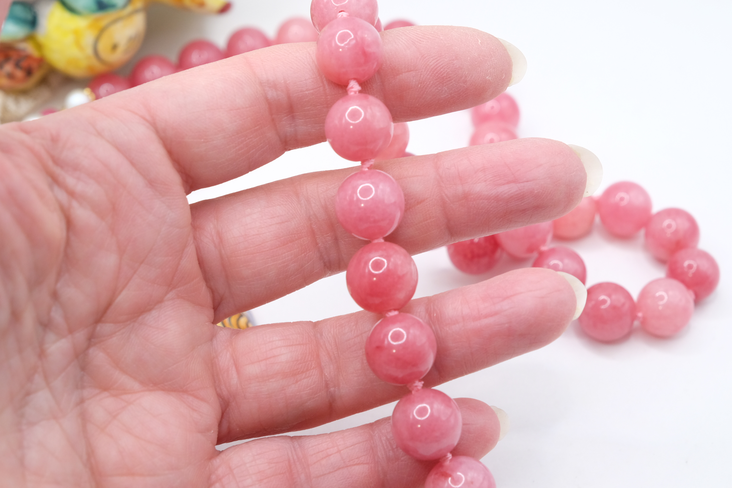 Round Plate Décolleté Necklace Pink Jade Ceramic Pearls Silver B