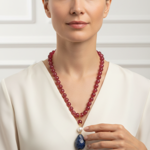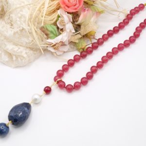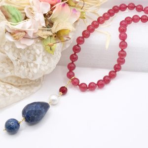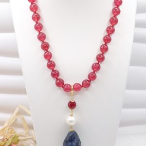 Burgundy Jade Necklace Lapis Pendant Natural Pearl Burgundy Silver