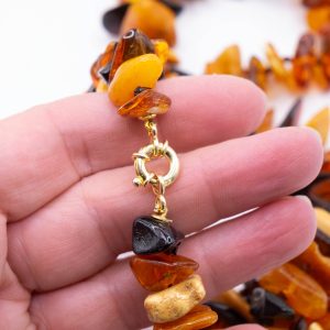 Baltic Amber Choker Necklace with TQ Cameo – Gold-Plated Silver